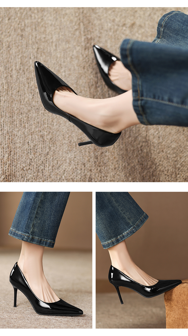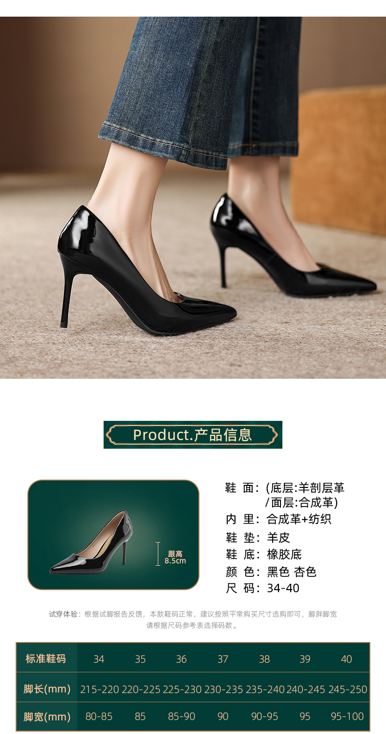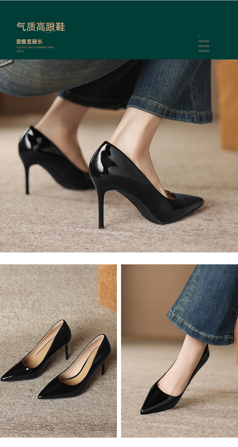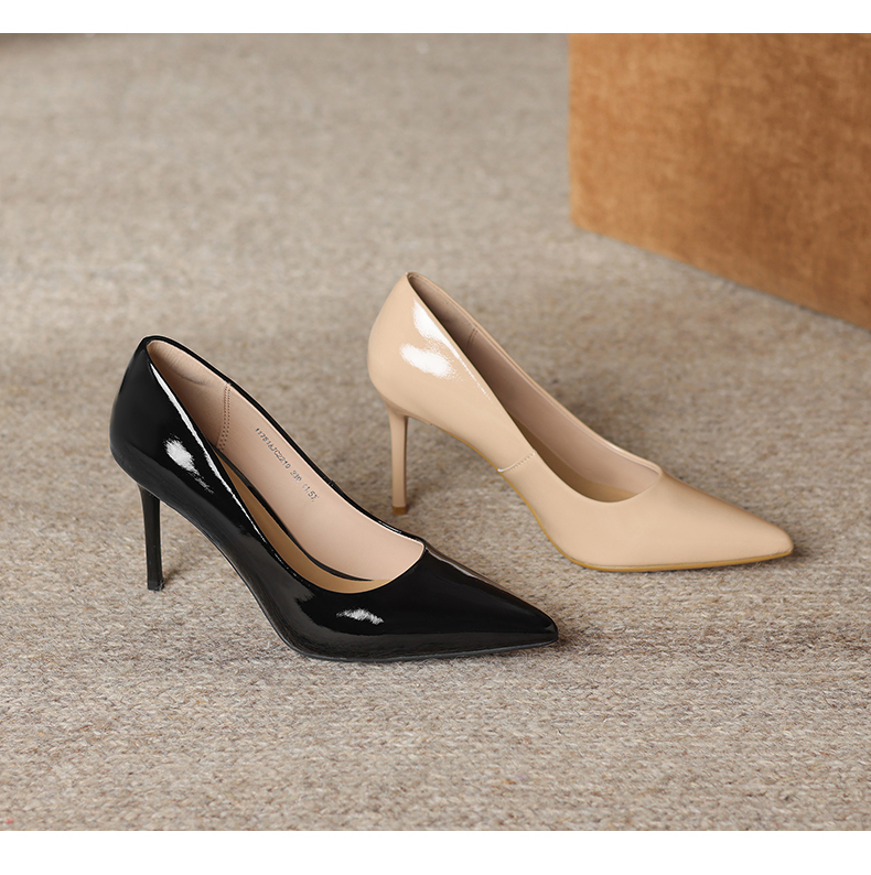 阿么手工女鞋时尚高级亮面高跟气质工作鞋女新款裸色高跟鞋8.5CM