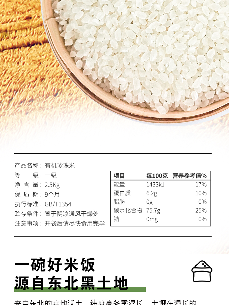 物元农场有机珍珠圆粒香米5斤当季现磨新米真空袋装农家优质粳米