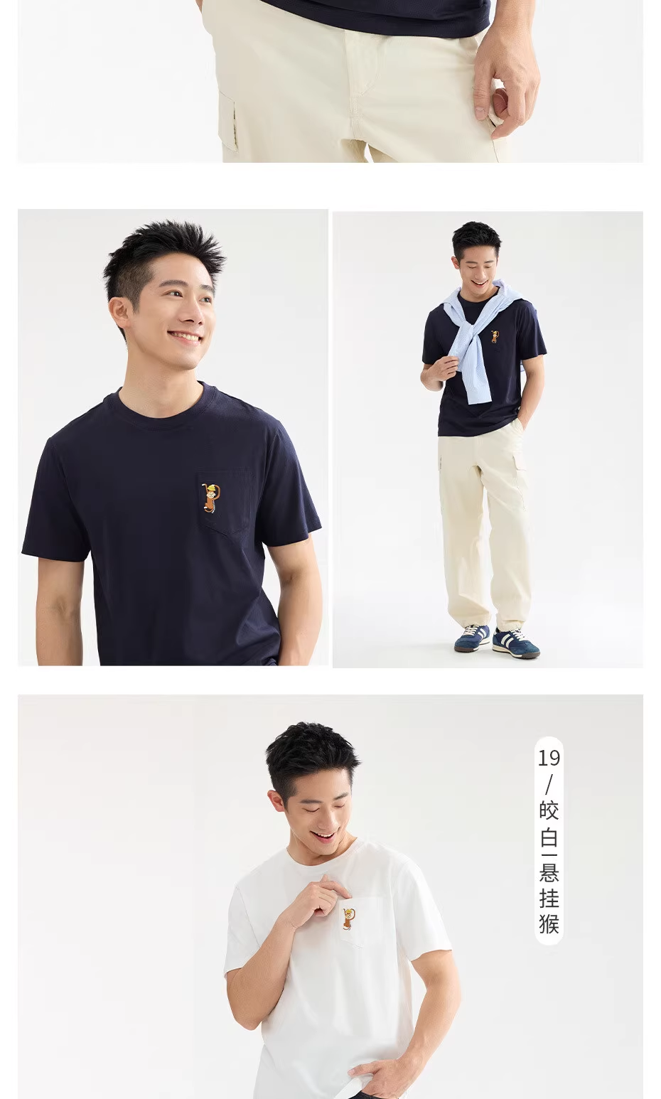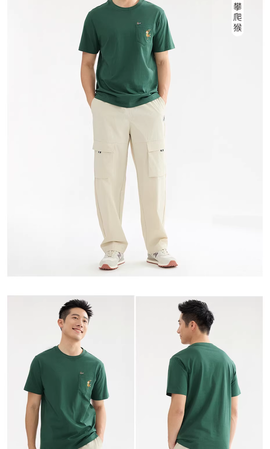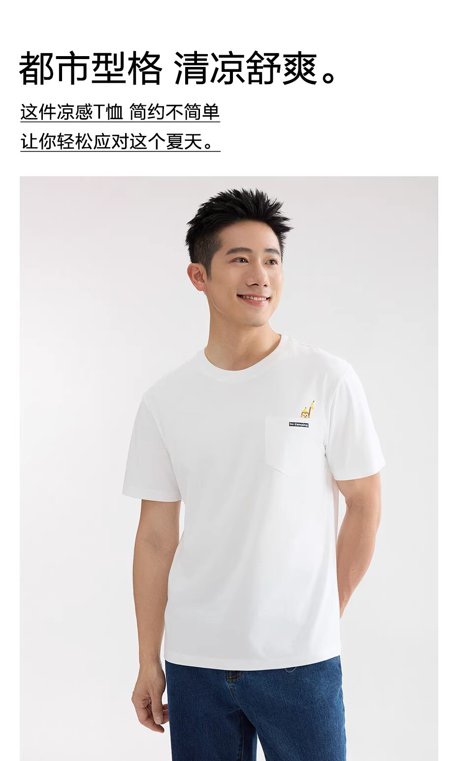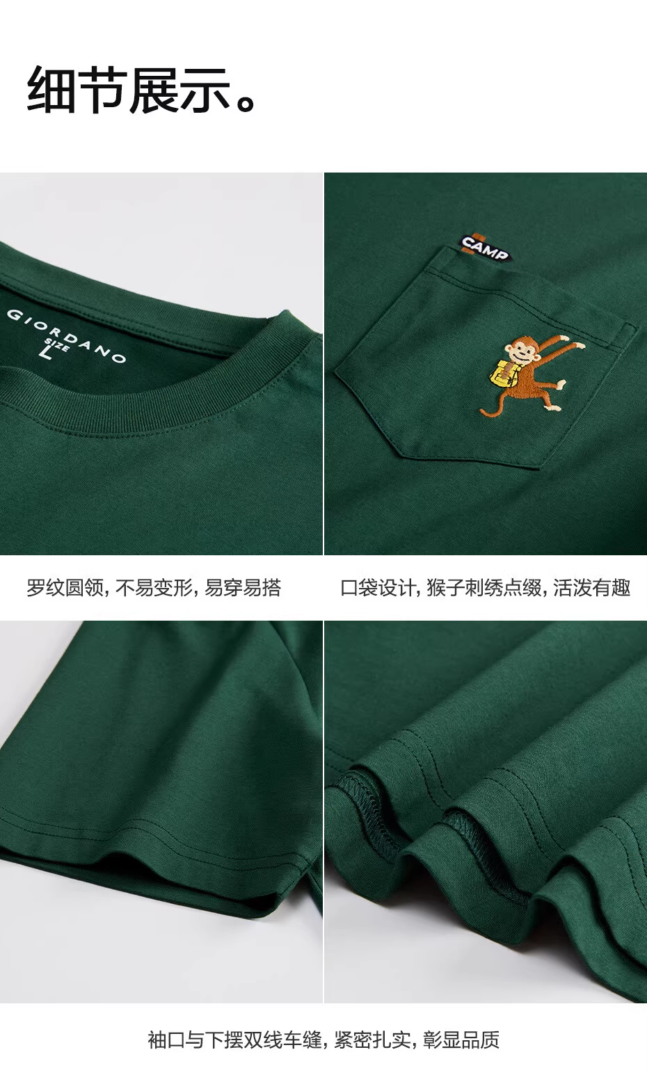 佐丹奴男装刺绣圆领t恤男夏新款黑科技凉感猴子口袋短袖T恤男13025217