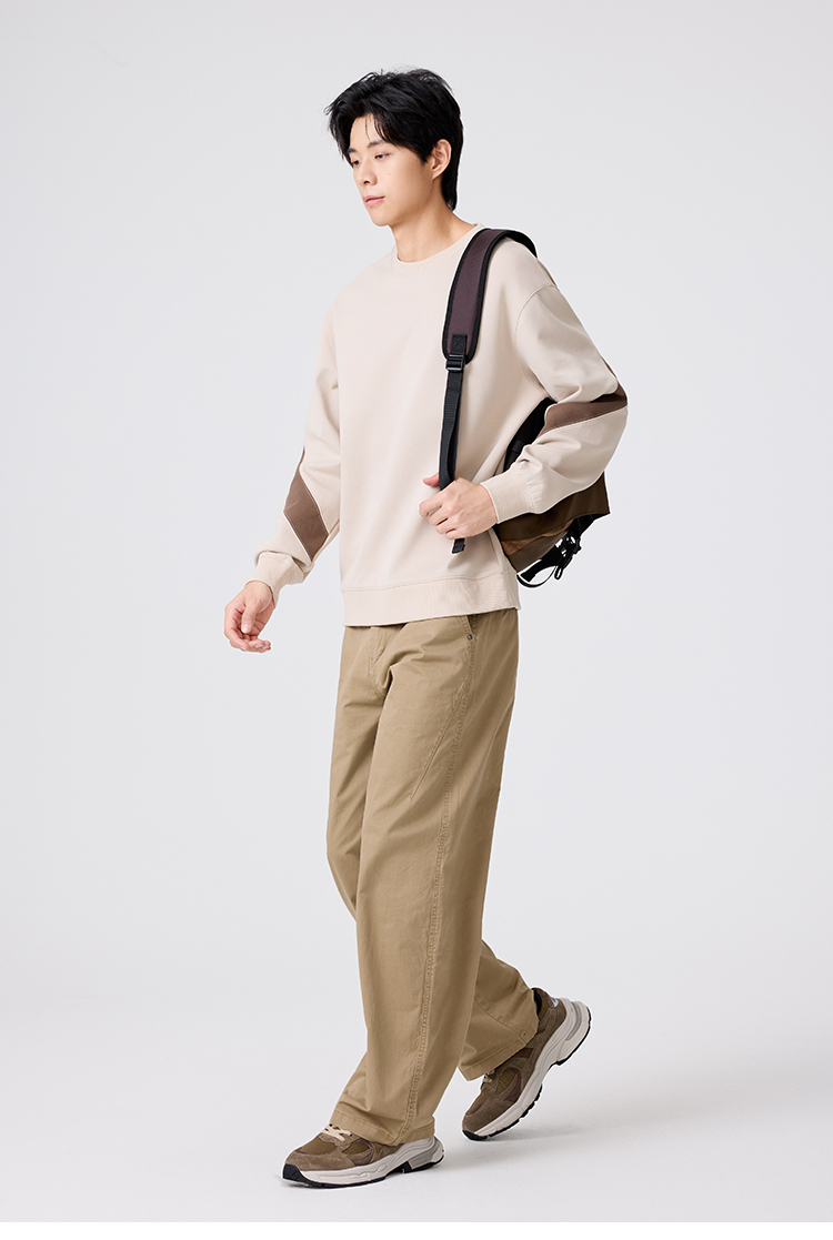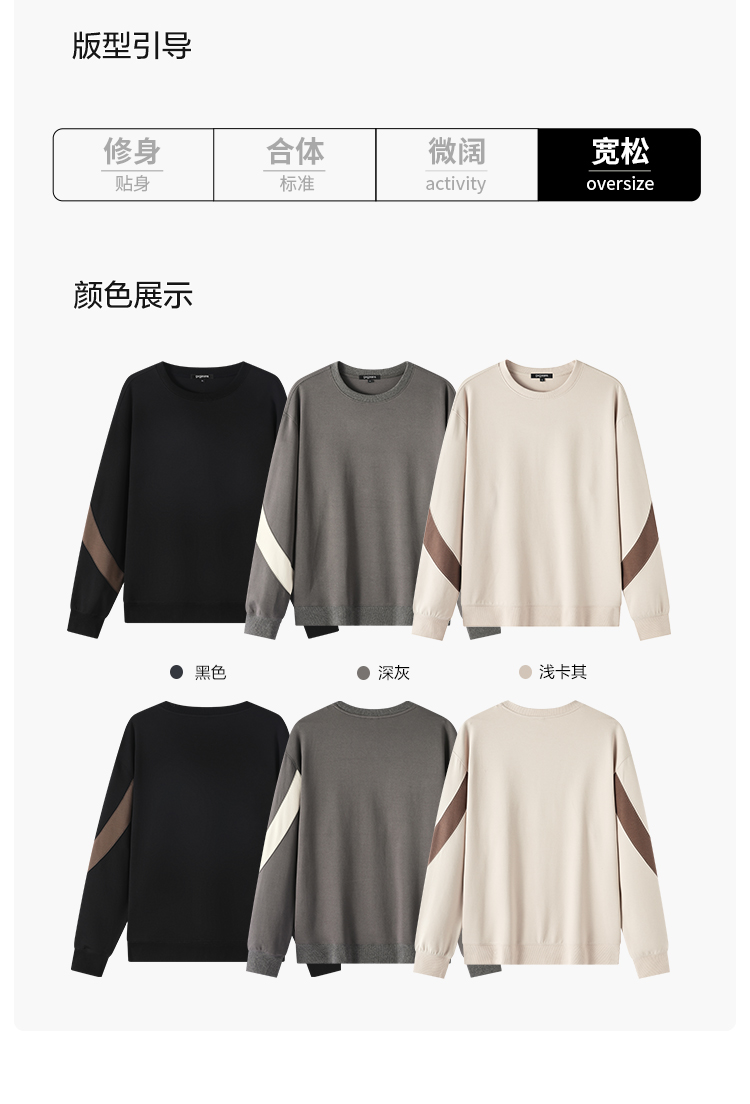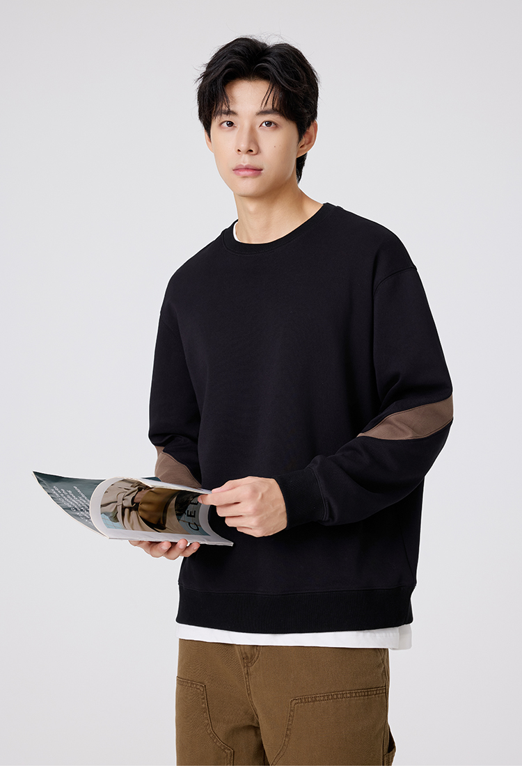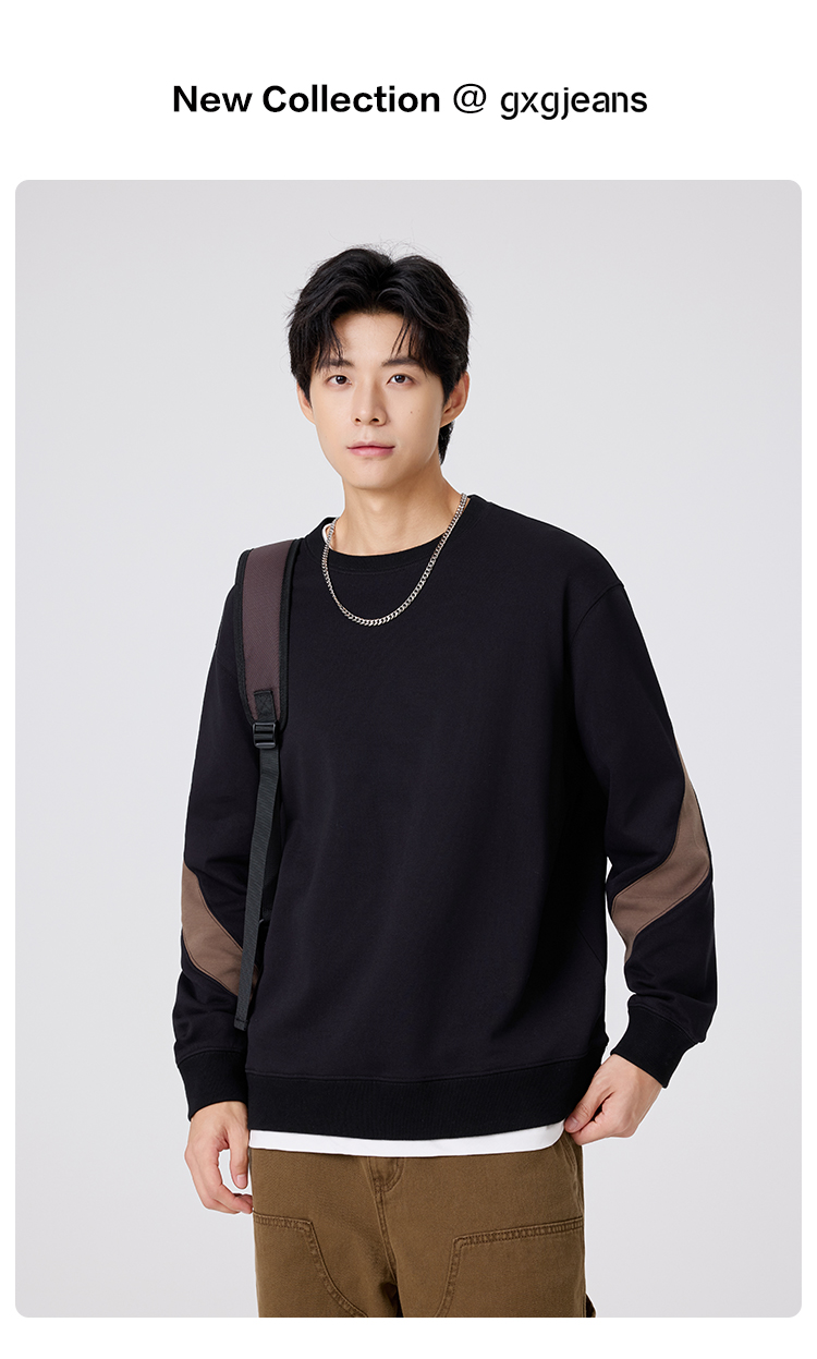 gxg.jeans男装 撞色拼接男士圆领卫衣2025秋款日常简约百搭情侣款打底衫上衣K&C