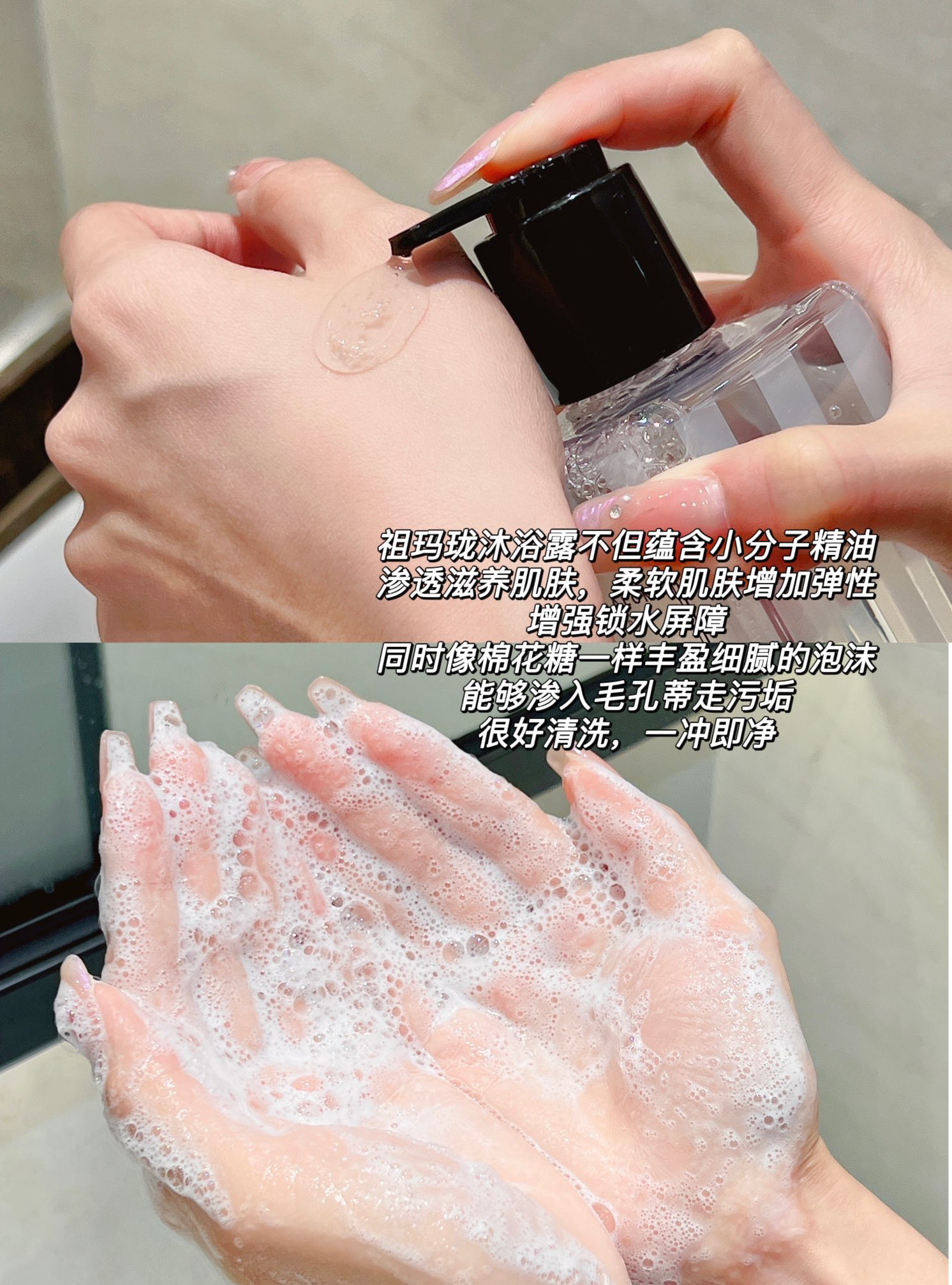 祖玛珑沐浴露不但蕴含小分子精油,渗透滋养肌肤,柔软肌肤增加弹性,增强锁水屏障,同时像棉花糖一样丰盈细腻的泡沫,能够渗入毛孔带走污垢,很好清洗,一冲即净~带有高级香味的东西总是会让人闻到就心情愉悦