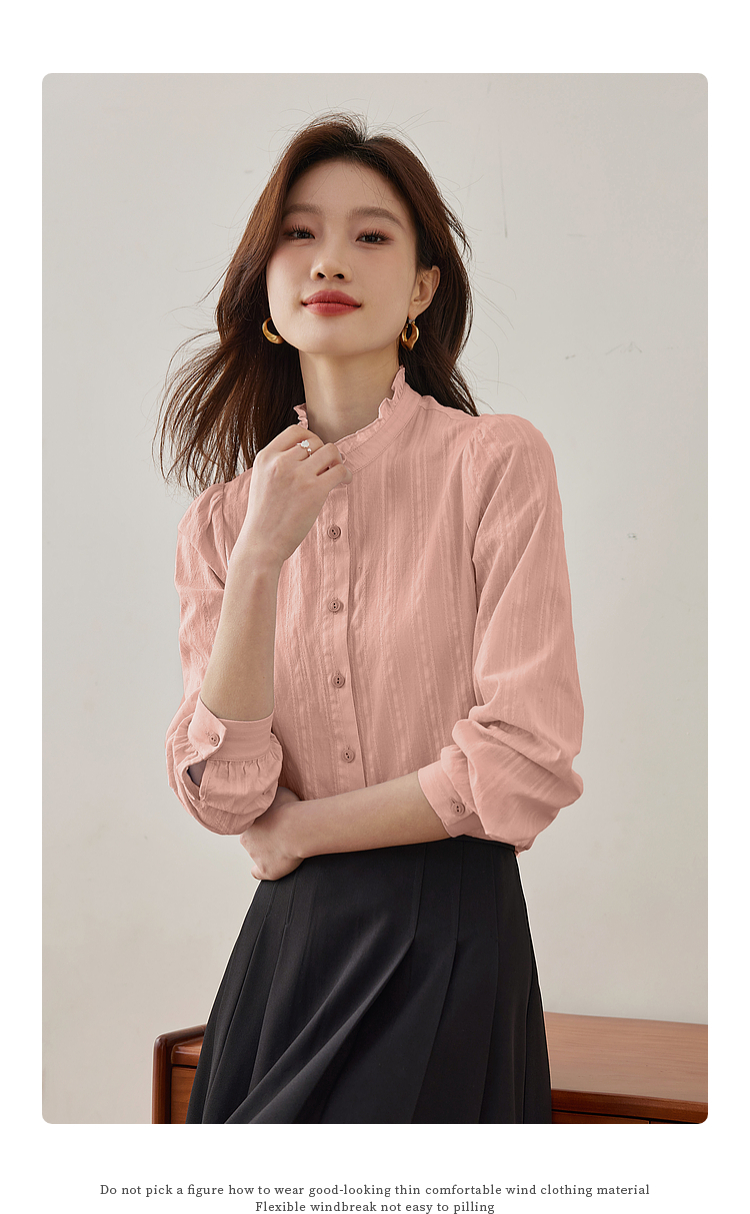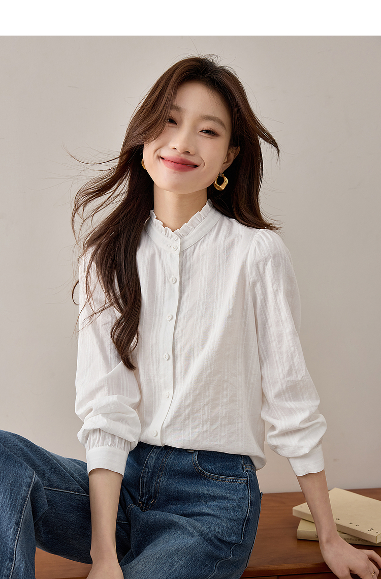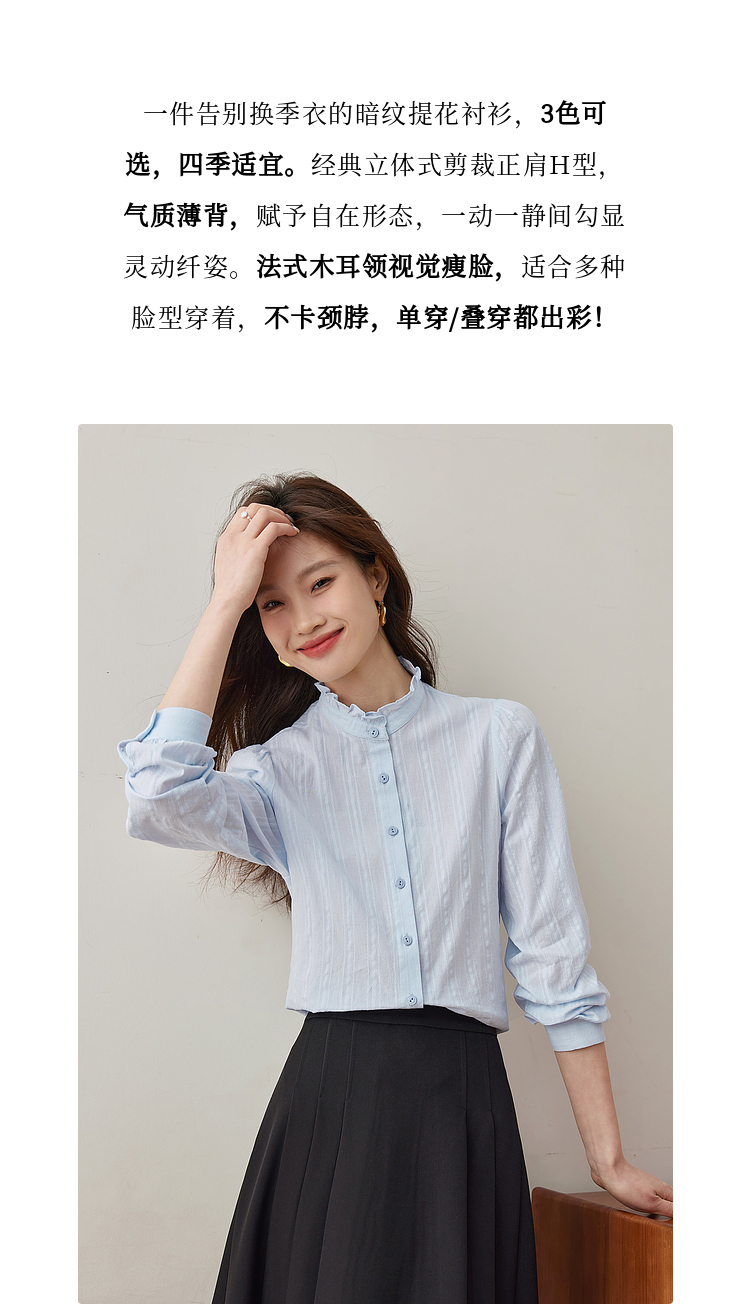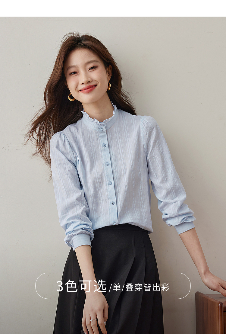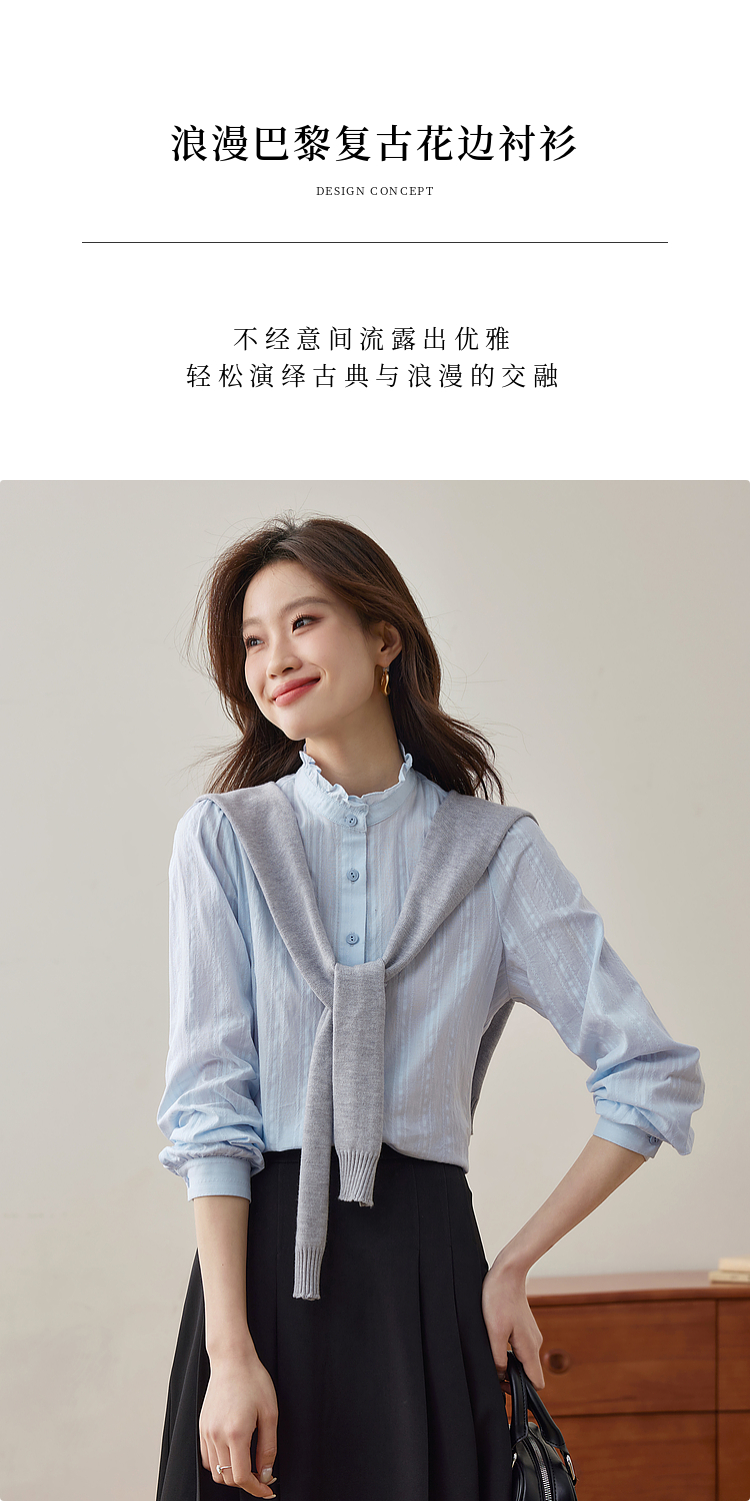 【1件75折】熙世界浪漫复古花边立领衬衫女长袖法式衬衣显瘦上衣2025春秋新款