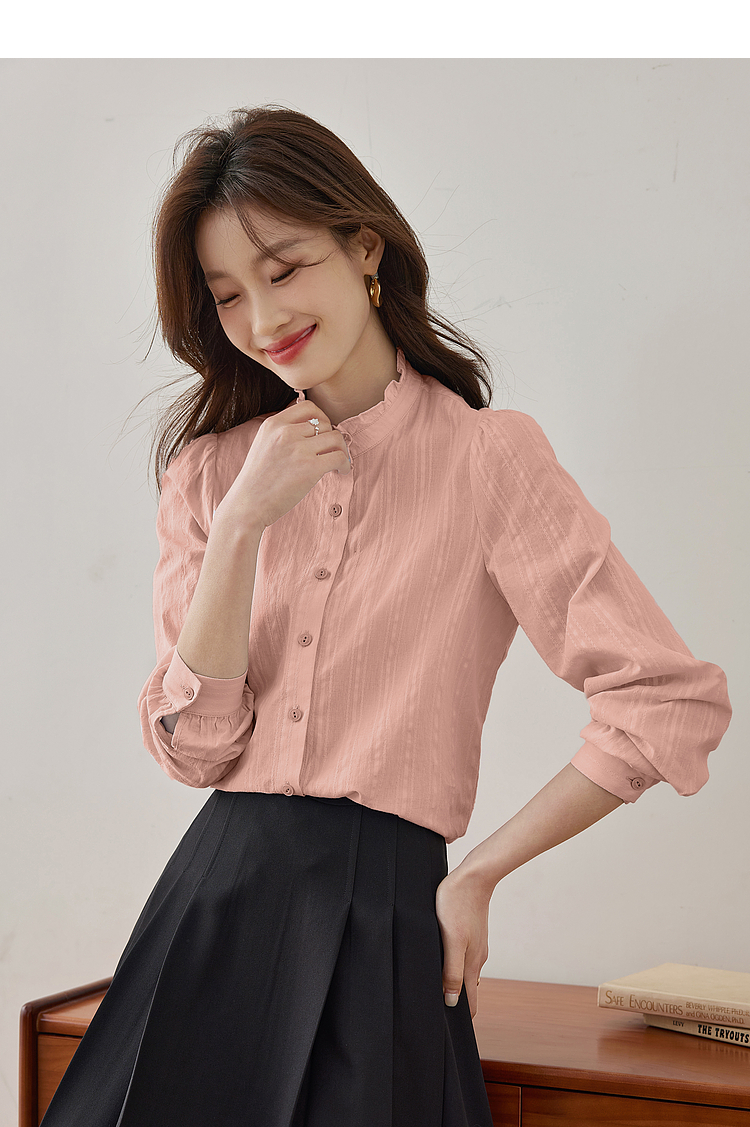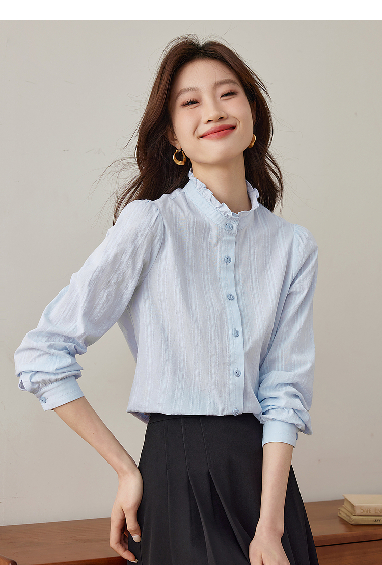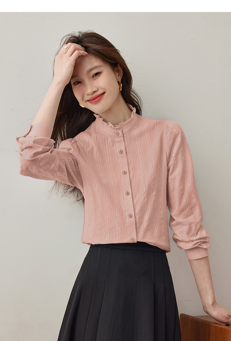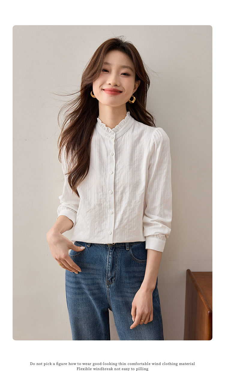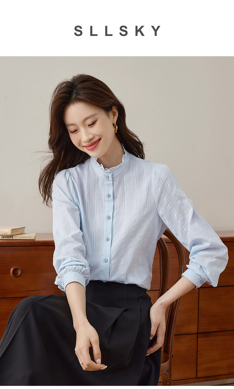 【1件75折】熙世界浪漫复古花边立领衬衫女长袖法式衬衣显瘦上衣2025春秋新款