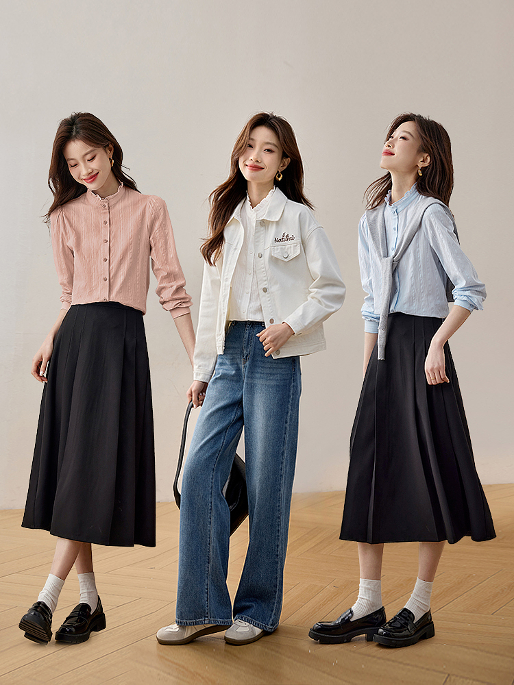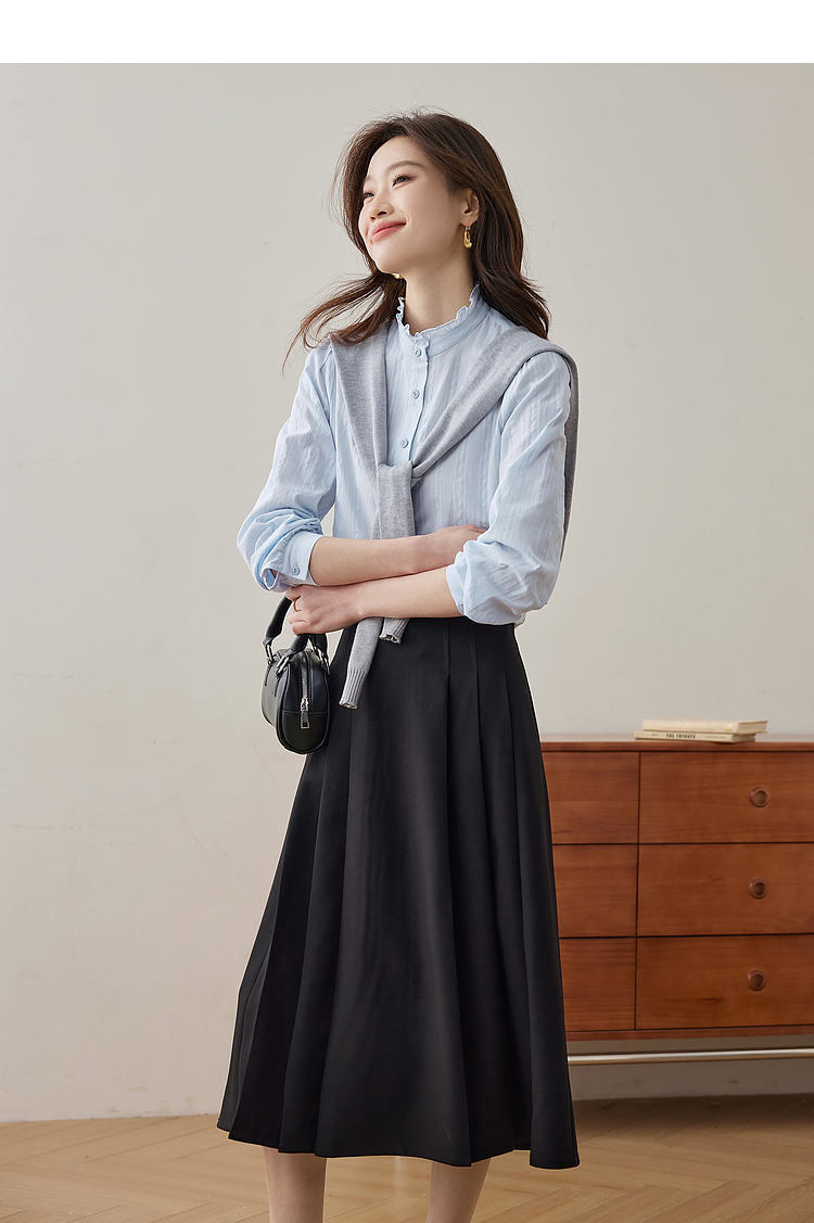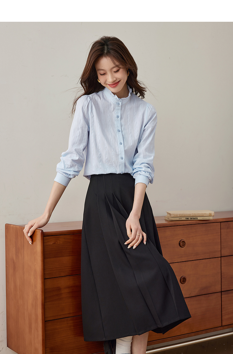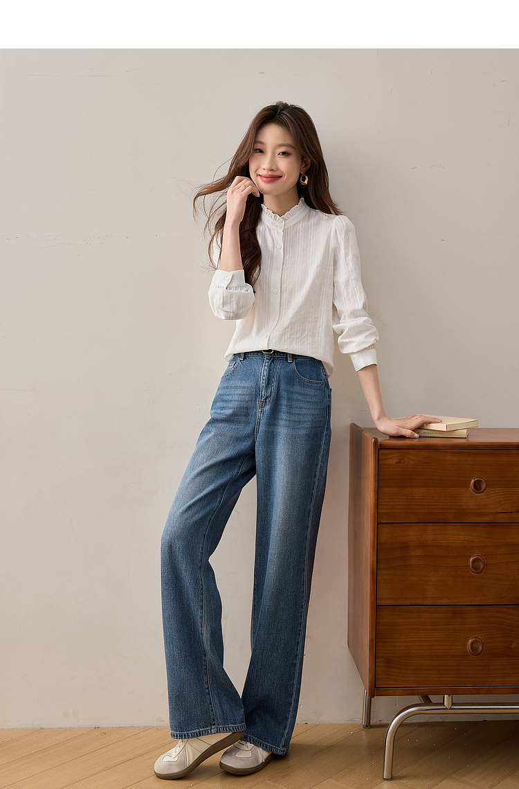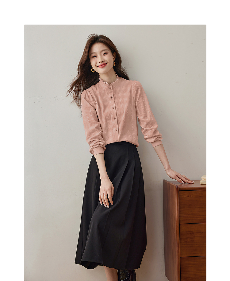 【1件75折】熙世界浪漫复古花边立领衬衫女长袖法式衬衣显瘦上衣2025春秋新款