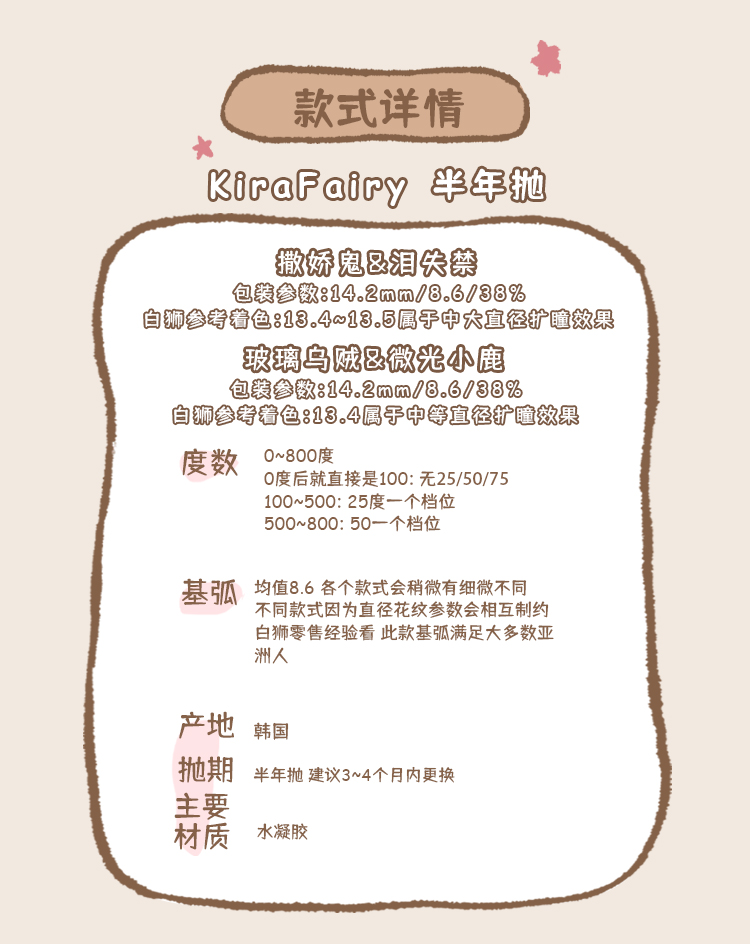 Kira Fairy半年抛 · 撒娇鬼&泪失禁&玻璃乌贼&微光小鹿 | 14.2mm白狮参考着色中等直径 韩产2片