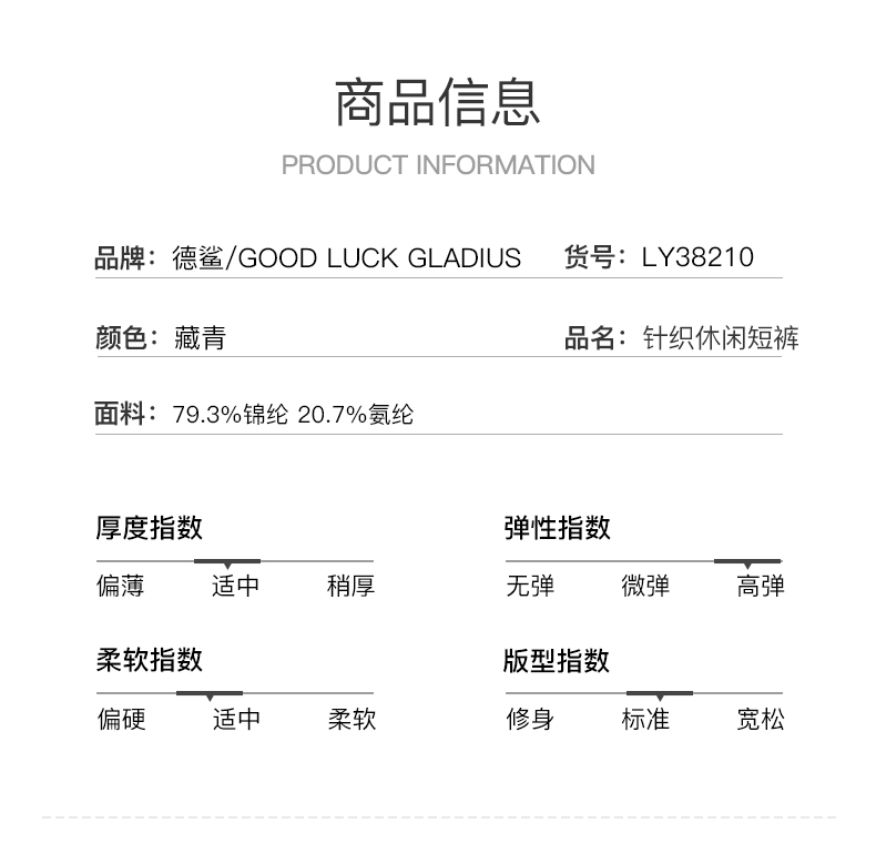 【凉感】德鲨新品休闲针织短裤男时尚松紧腰系带五分裤子