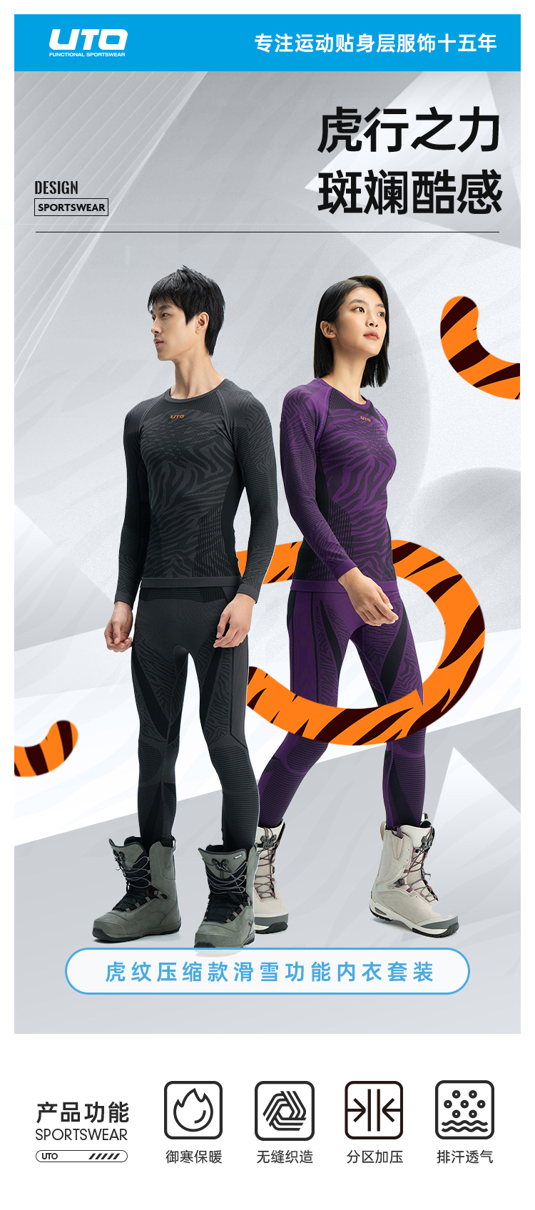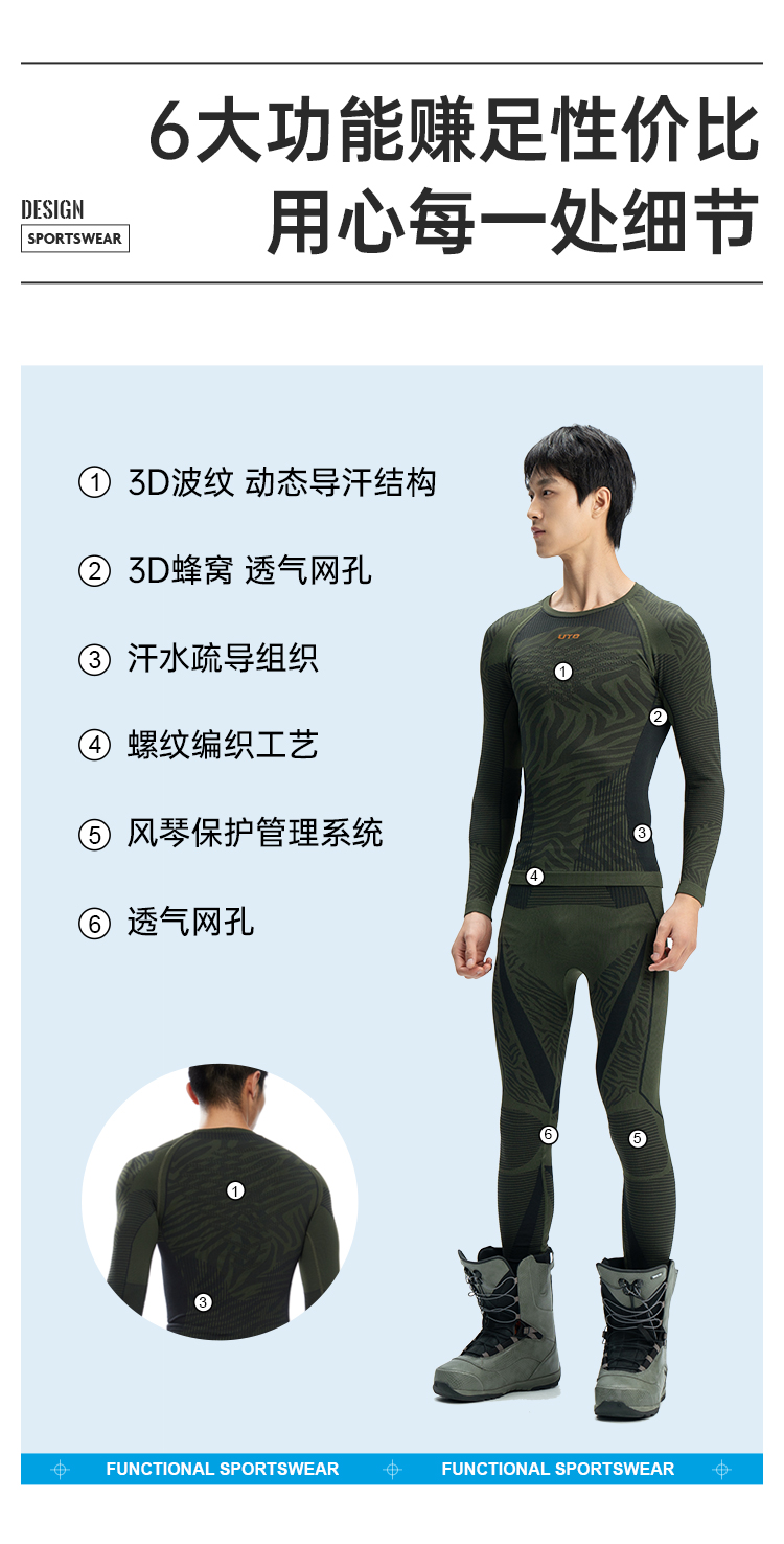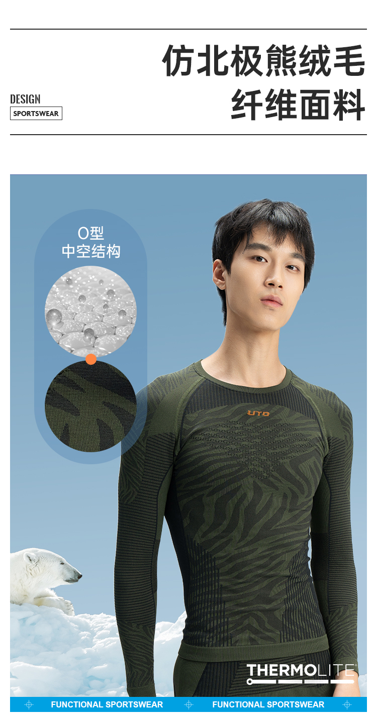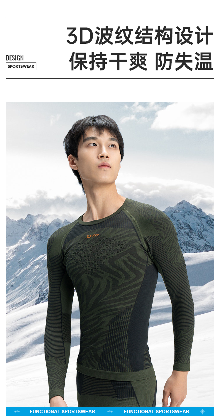 UTO悠途迷彩款专业滑雪内衣男户外运动压缩内衣女秋冬保暖套装