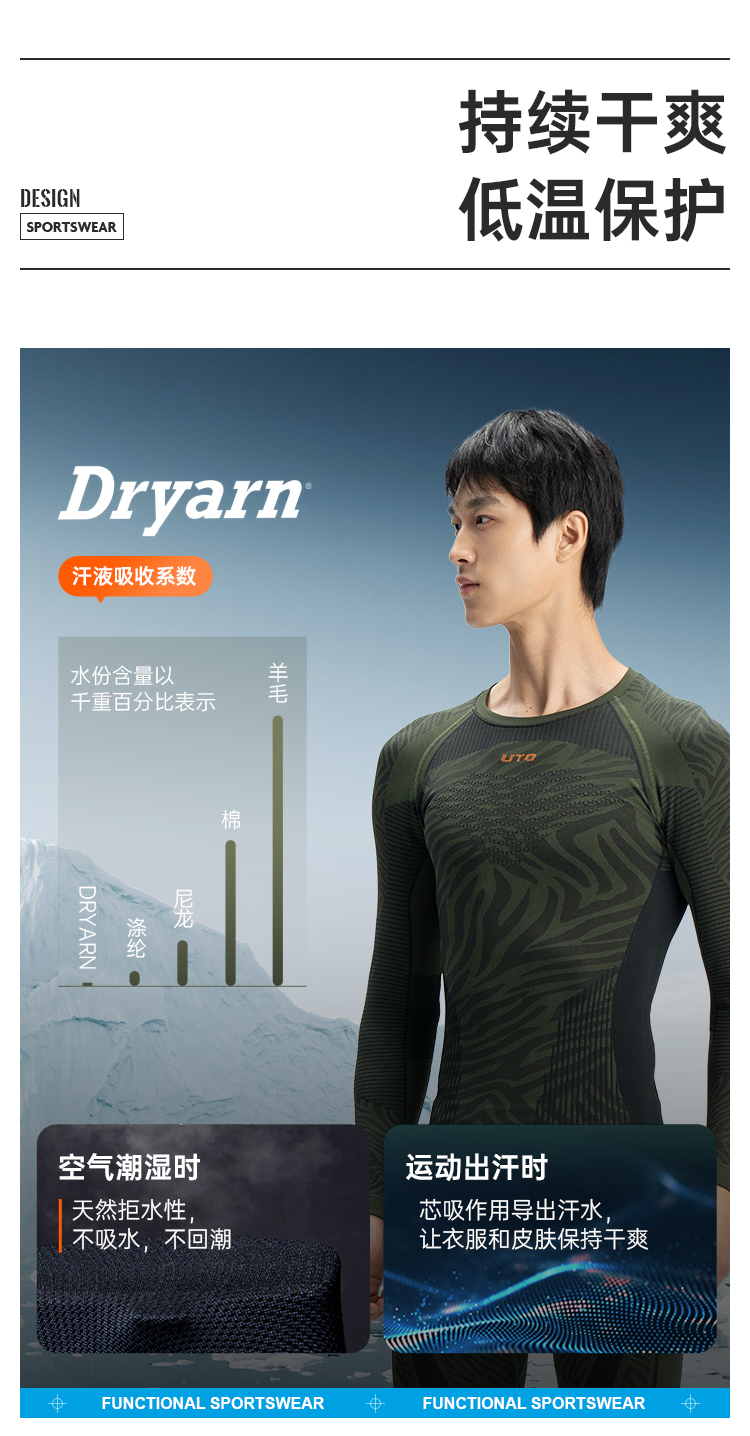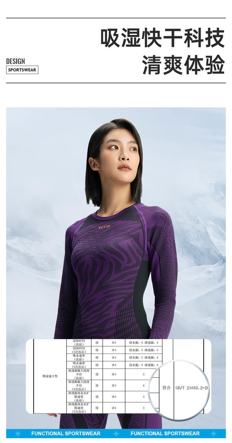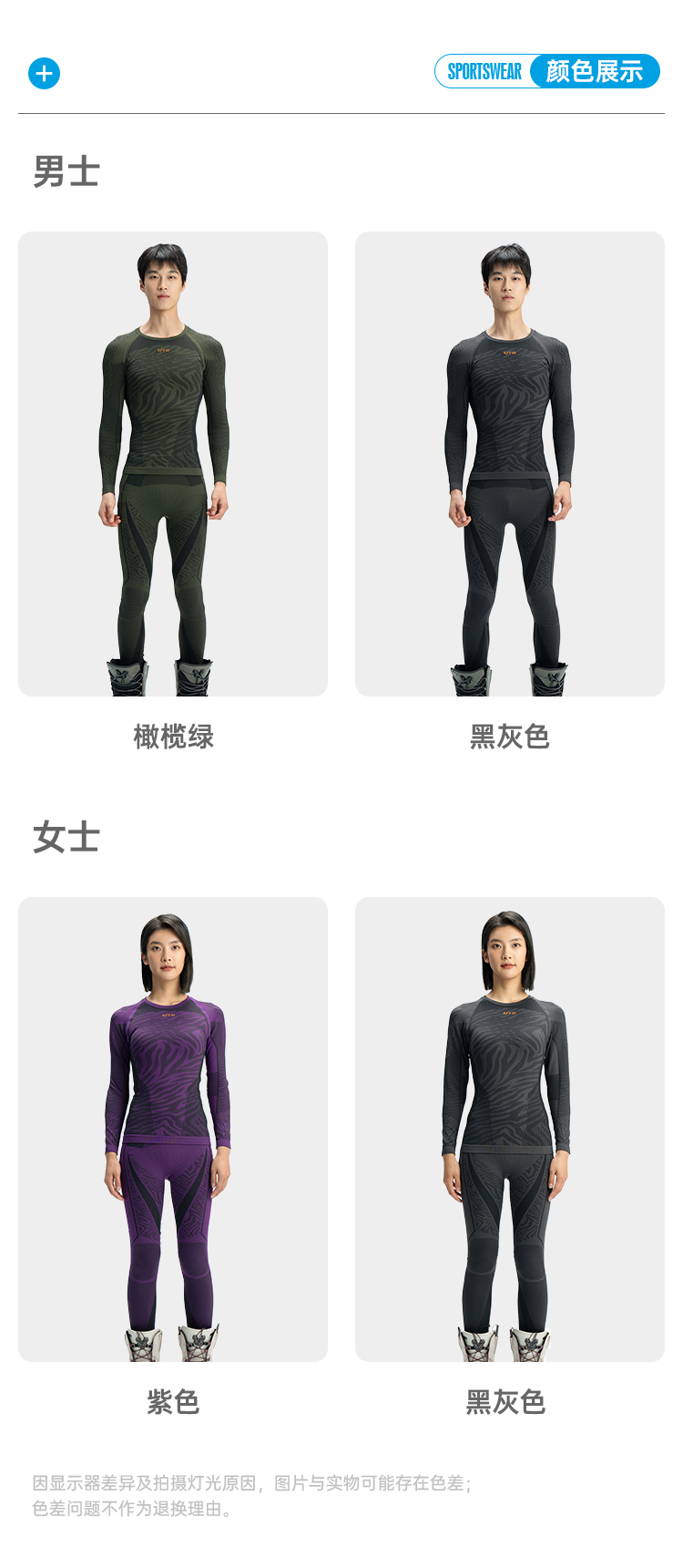 UTO悠途迷彩款专业滑雪内衣男户外运动压缩内衣女秋冬保暖套装