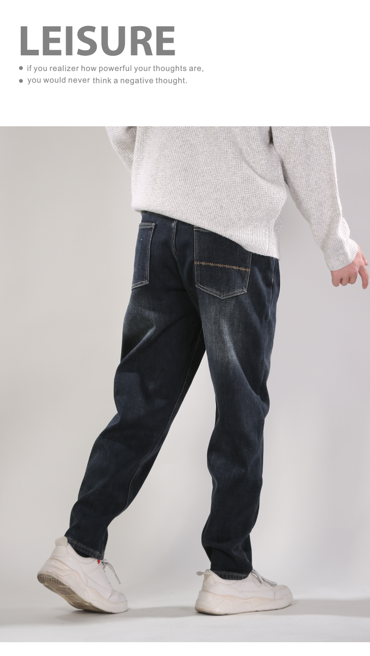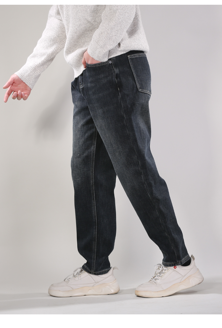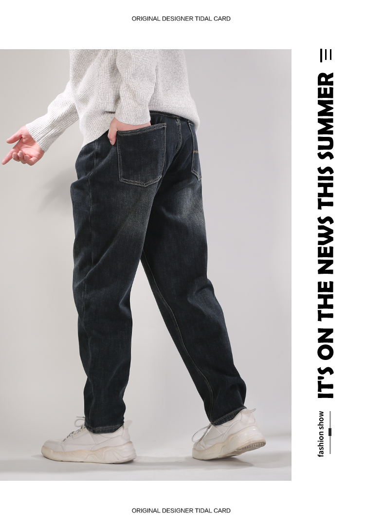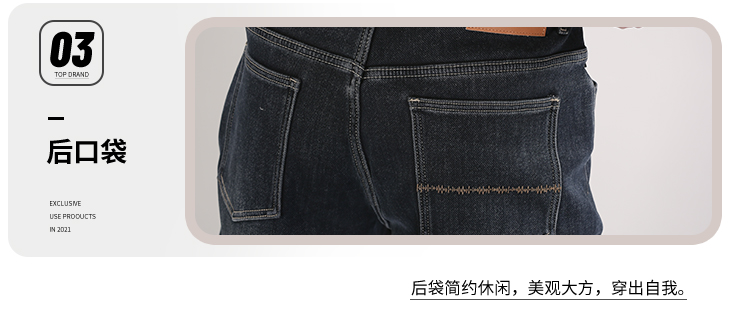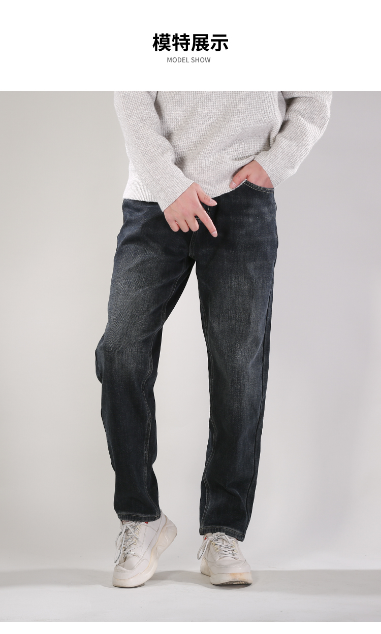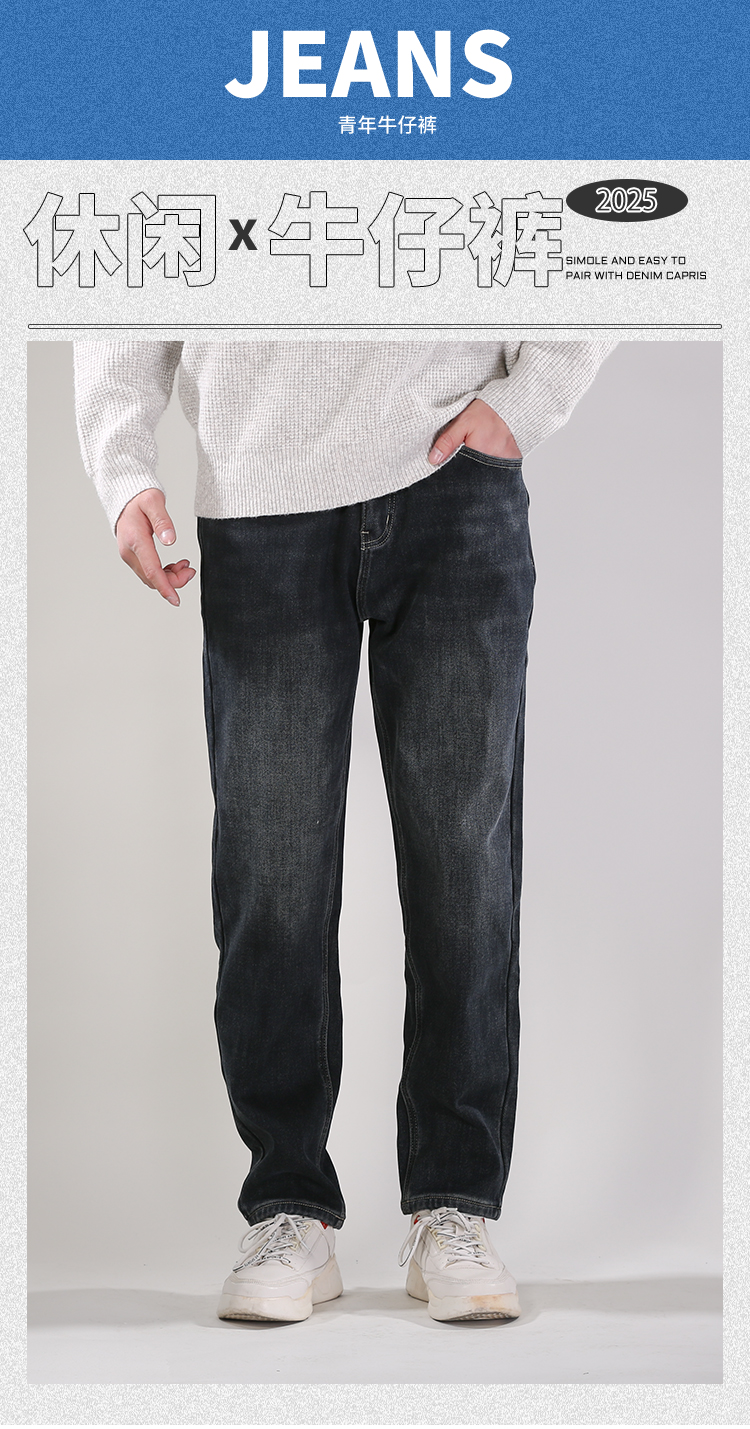 DRONKOO 2025 正常腰表袋黑皮标复合厚绒厚牛仔长裤
