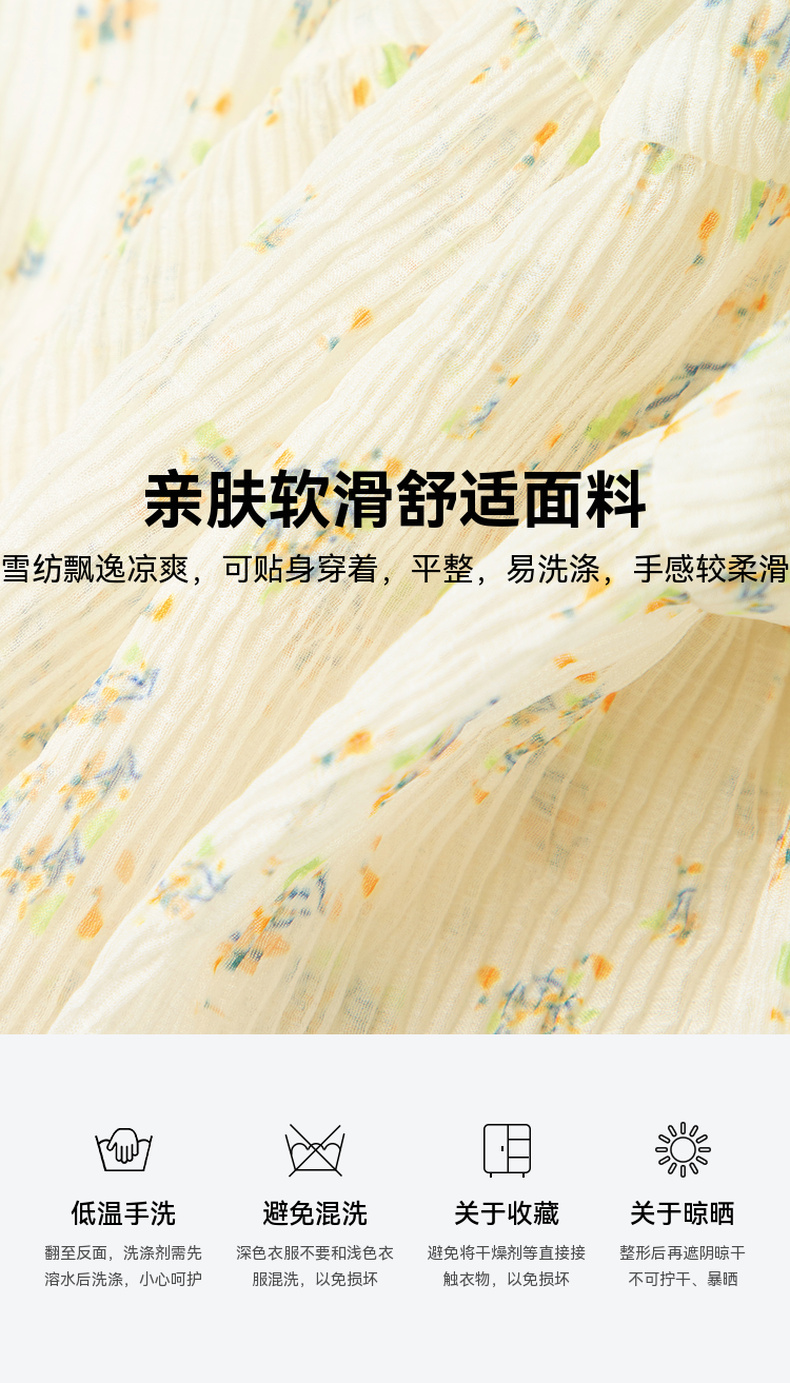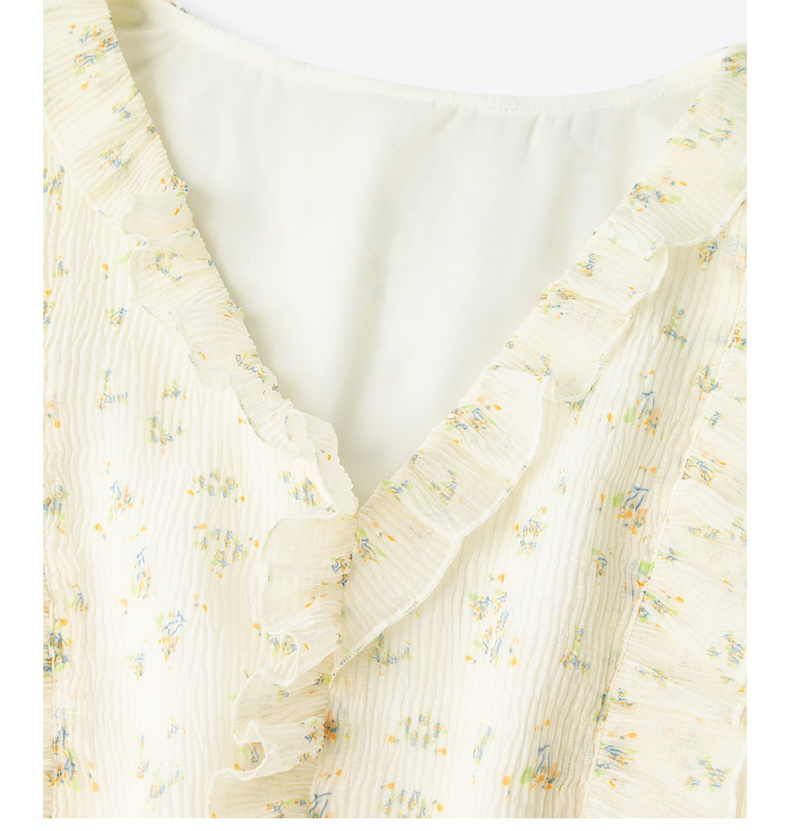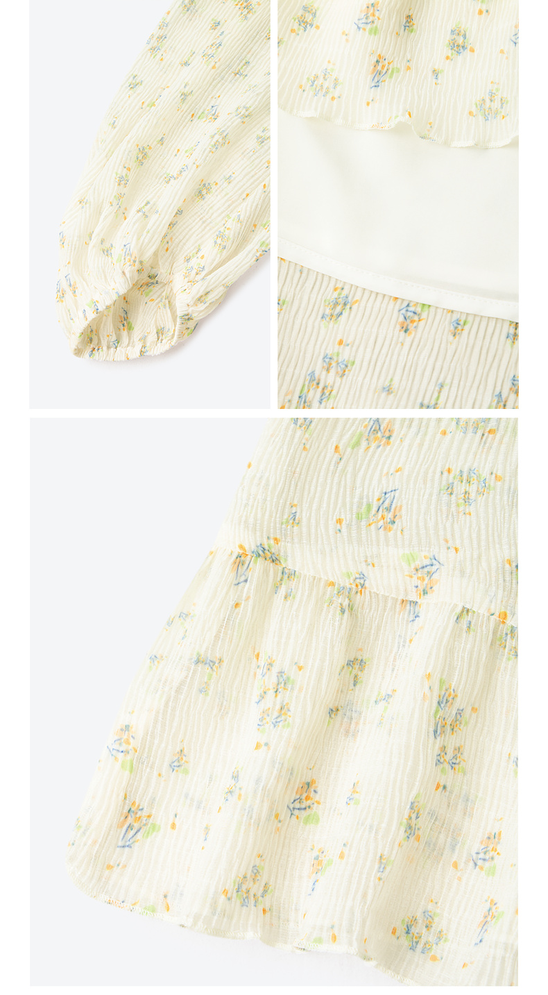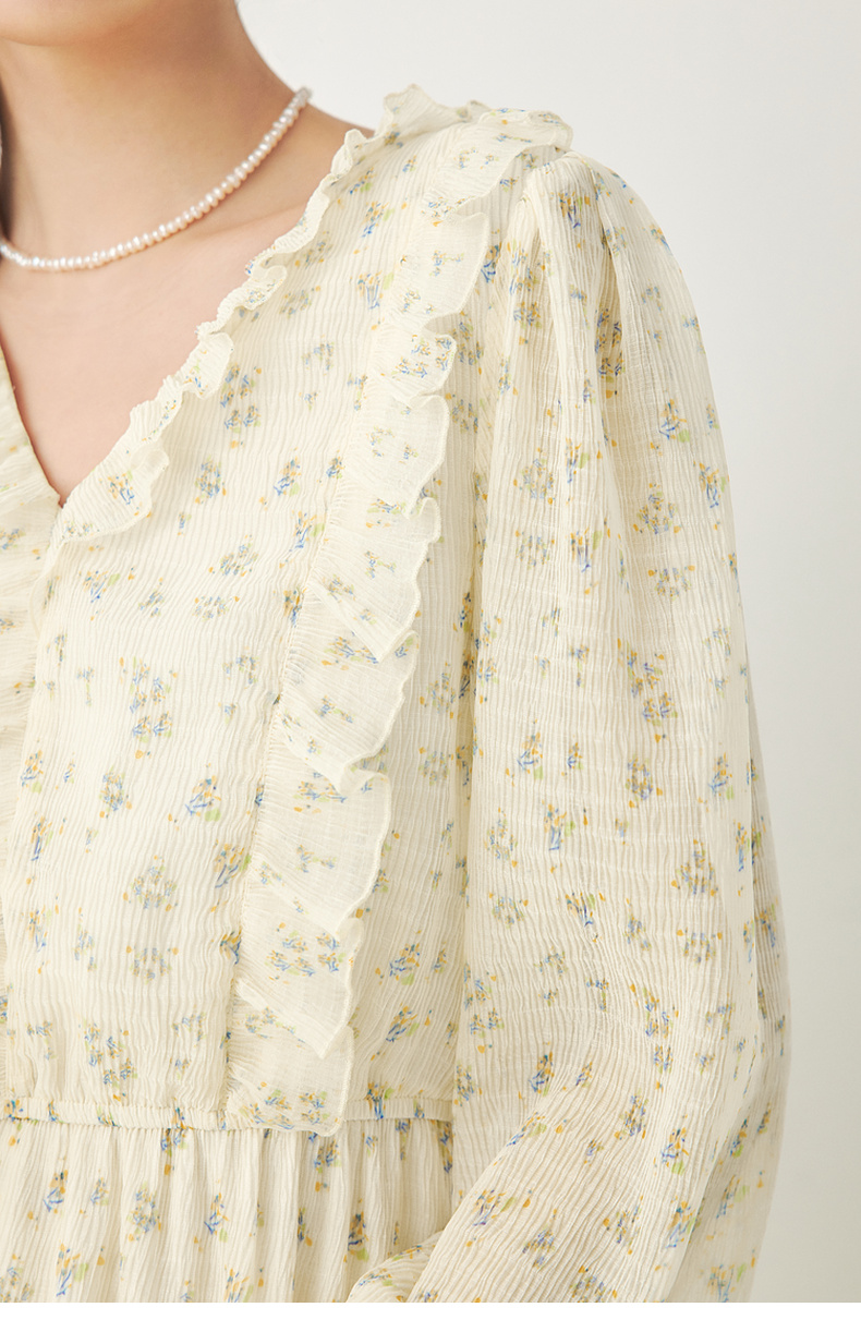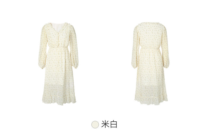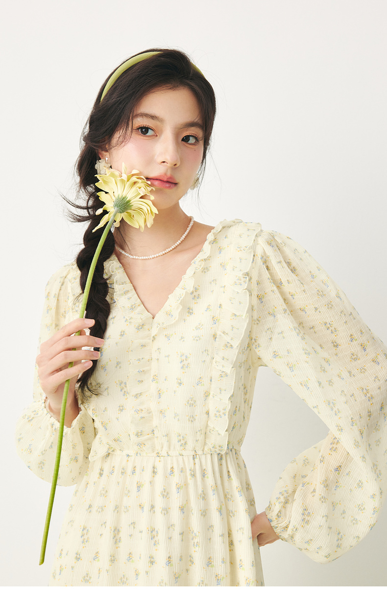 【严选】诗凡黎春荷叶边飘带设计松紧袖口气质长款连衣裙SF3390691