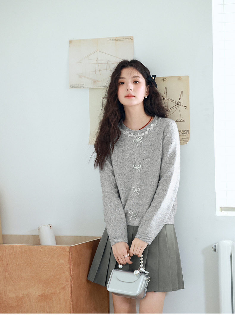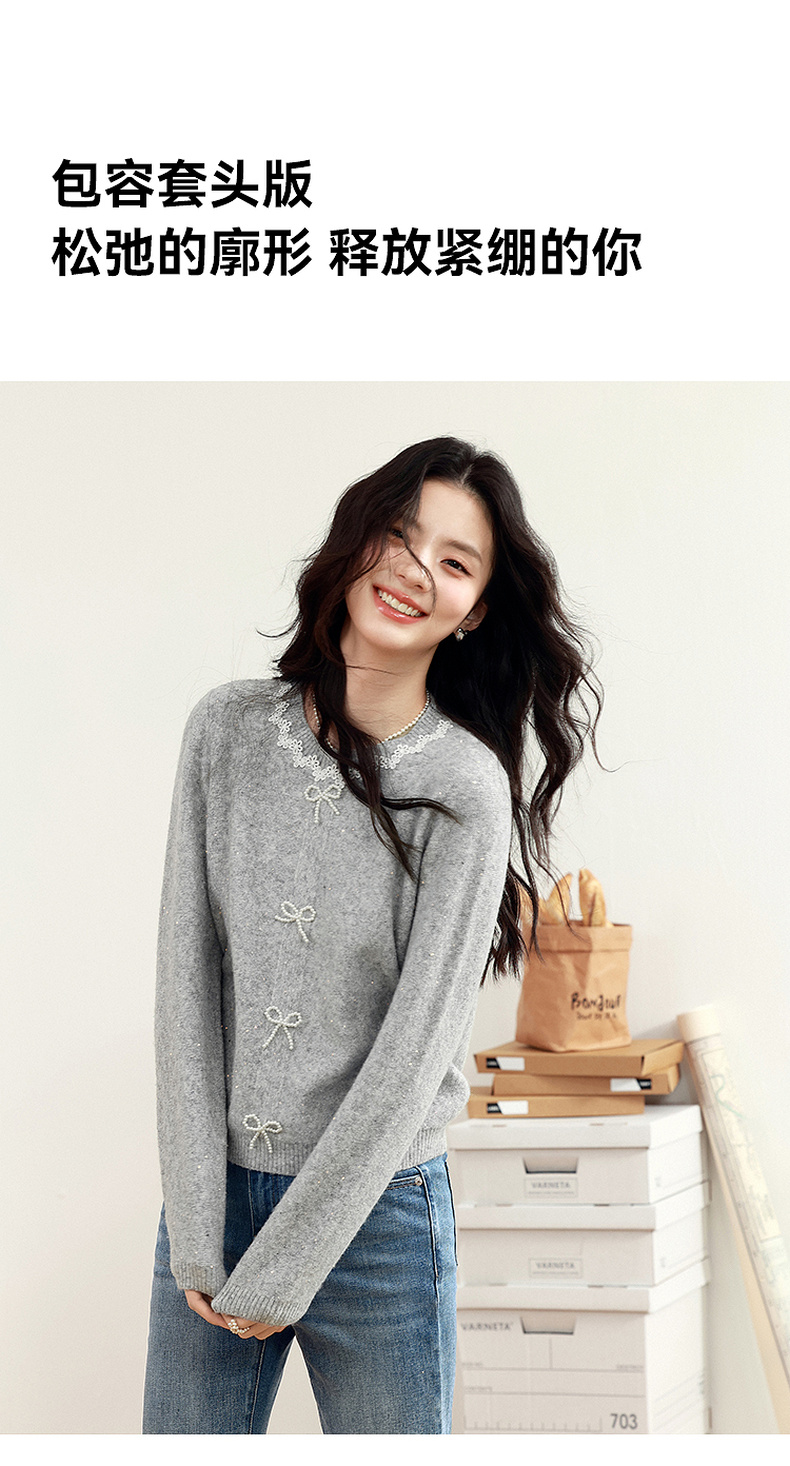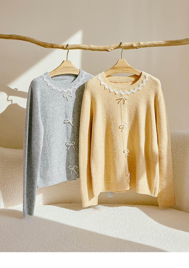 【严选】【蝶恋花】诗凡黎毛针织衫蝴蝶结蕾丝浪漫千金女25春夏新毛衣圆领7G1130391 商品图0