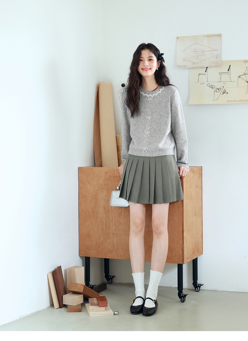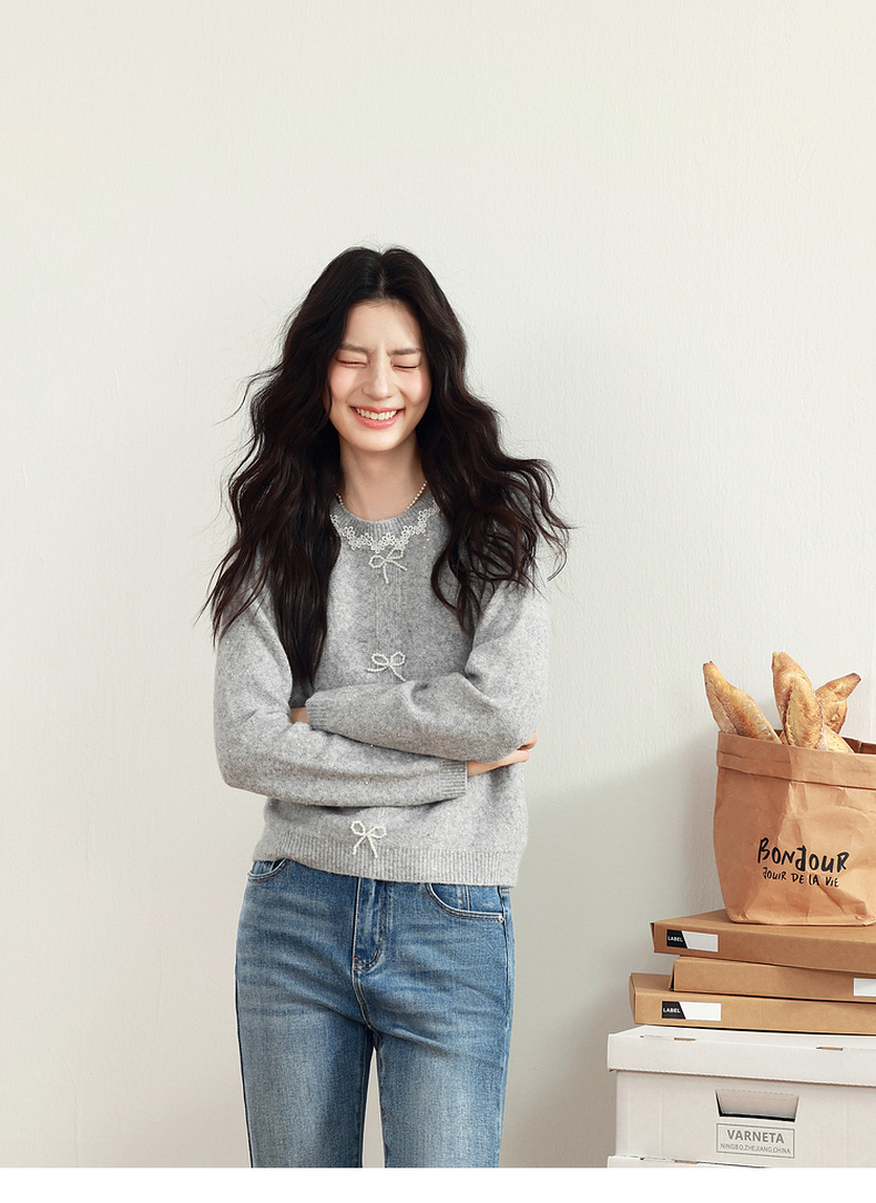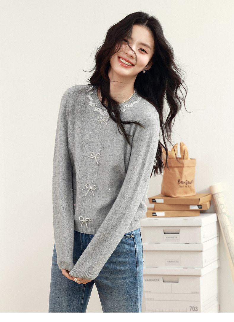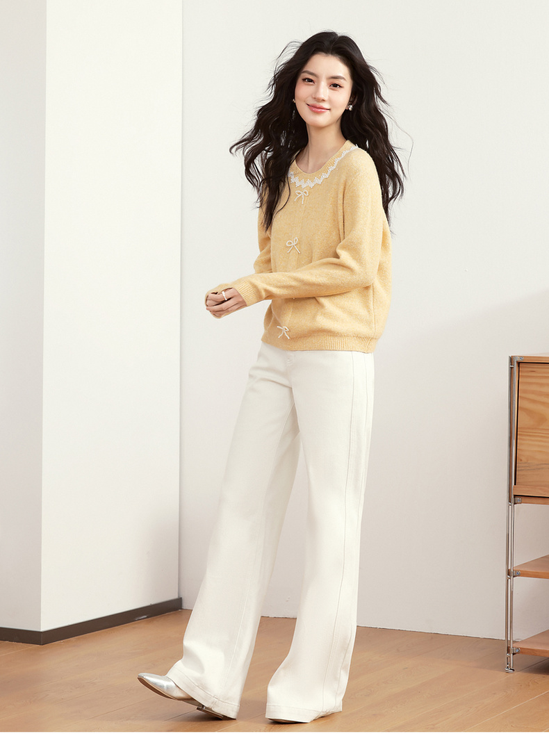【严选】【蝶恋花】诗凡黎毛针织衫蝴蝶结蕾丝浪漫千金女25春夏新毛衣圆领7G1130391 商品图0