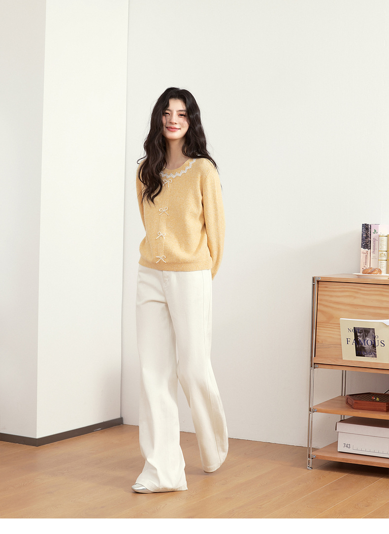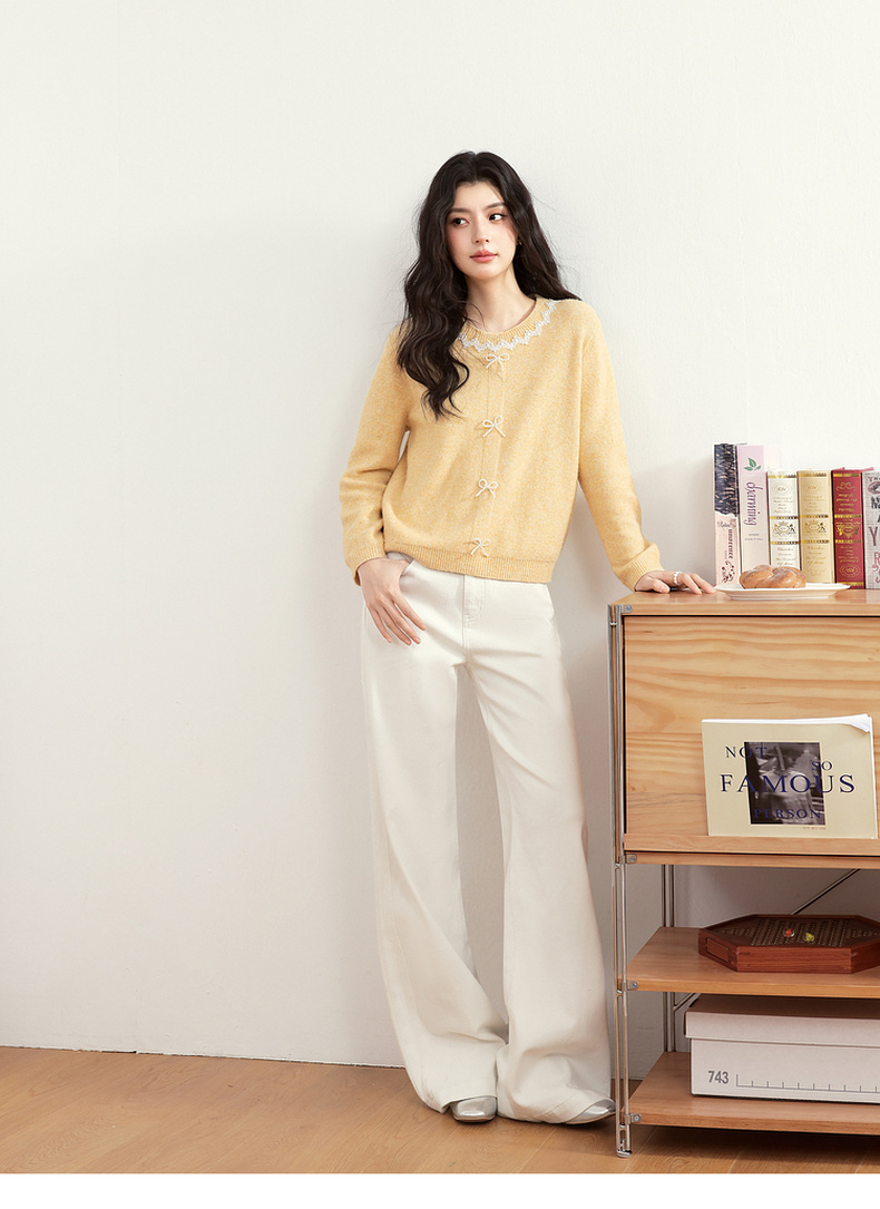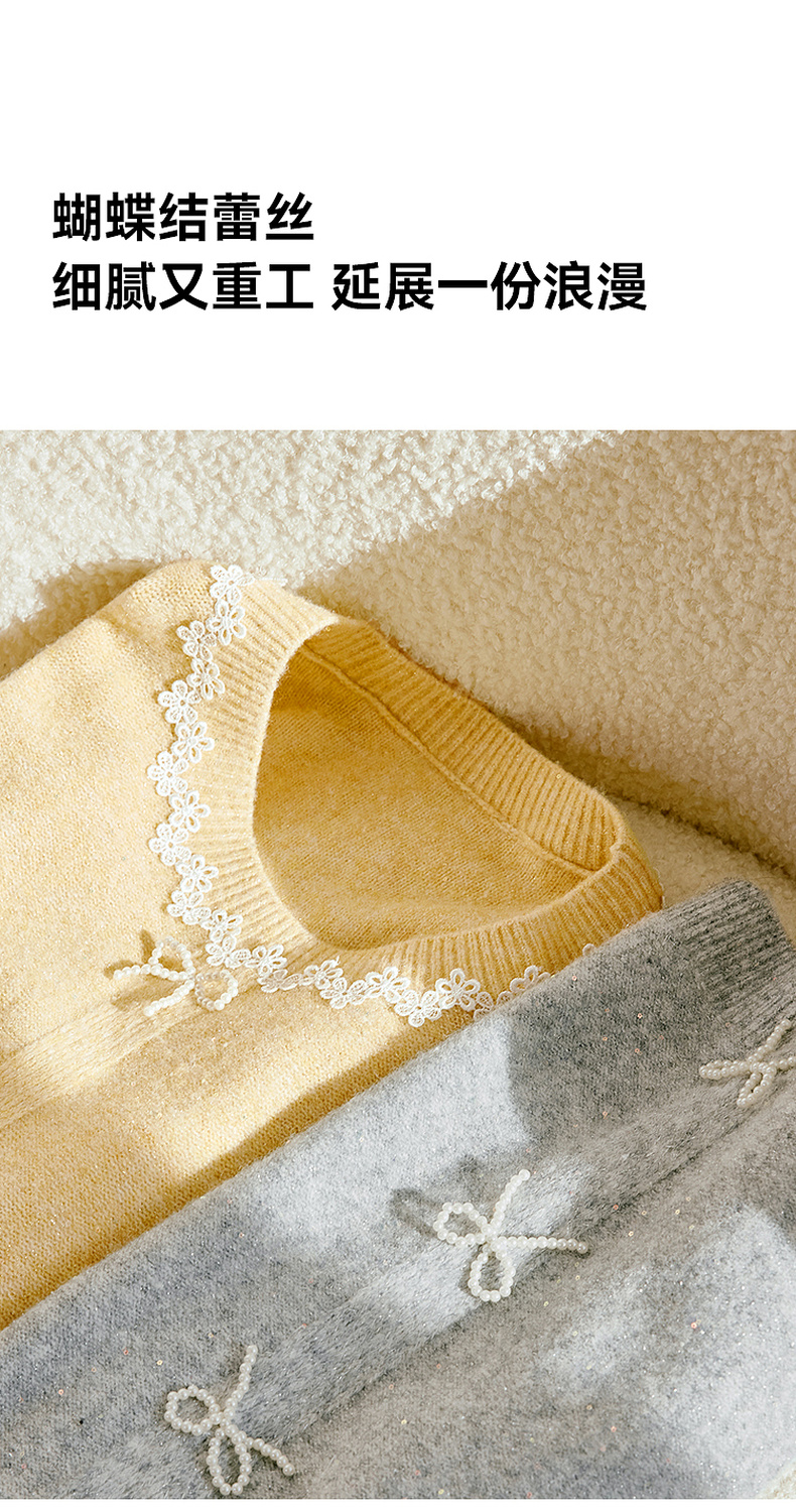【严选】【蝶恋花】诗凡黎毛针织衫蝴蝶结蕾丝浪漫千金女25春夏新毛衣圆领7G1130391