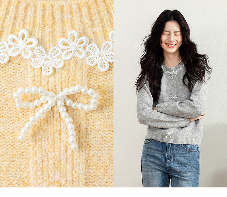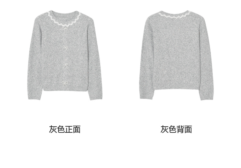 【严选】【蝶恋花】诗凡黎毛针织衫蝴蝶结蕾丝浪漫千金女25春夏新毛衣圆领7G1130391 商品图3