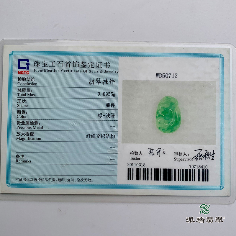 派瑞翡翠 翡翠挂件 糯种 绿色