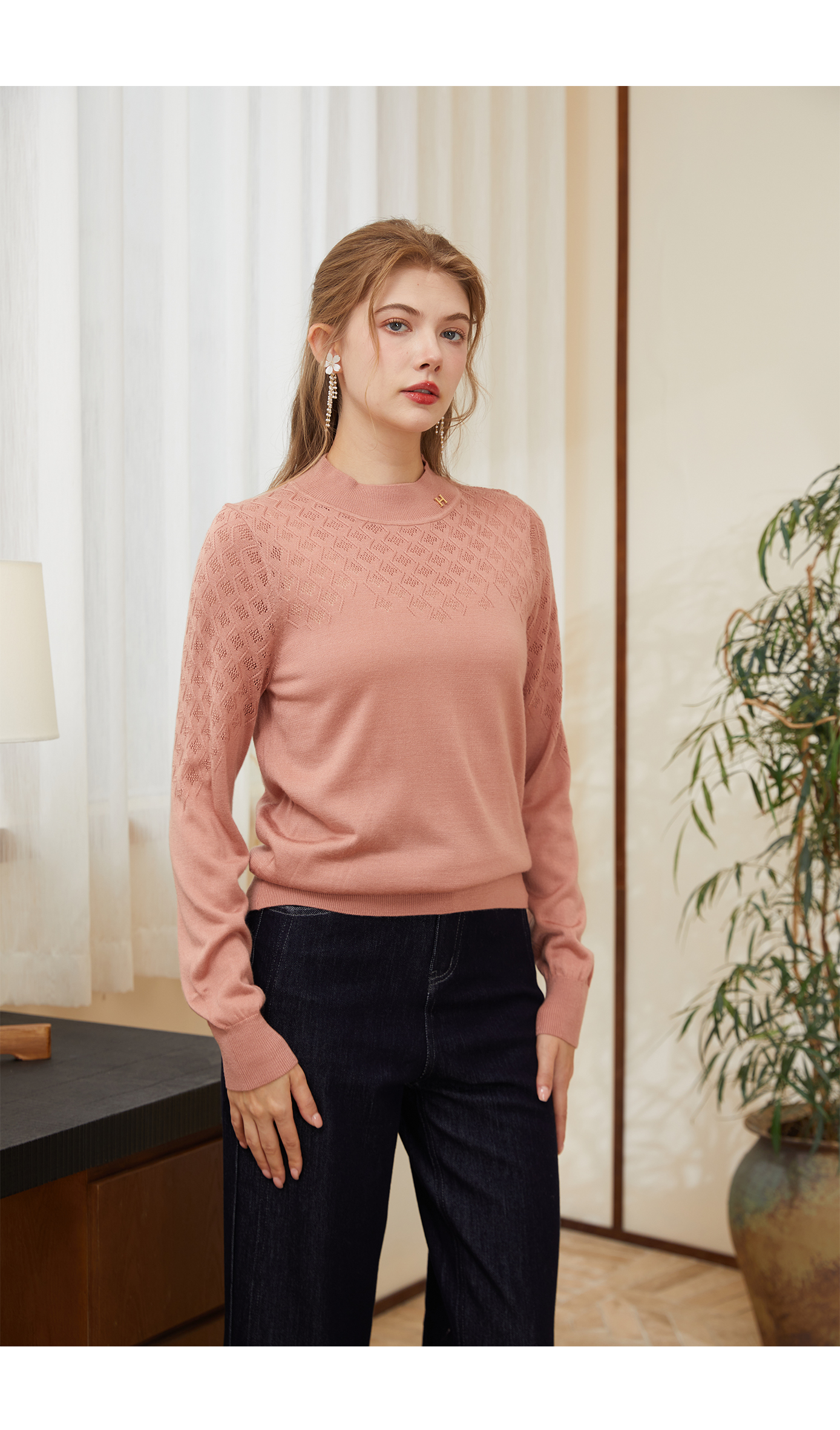 司歌小立领长袖毛织衫女秋冬G90G2813