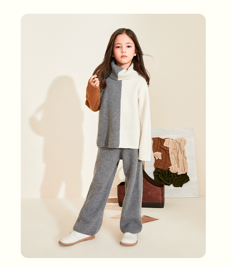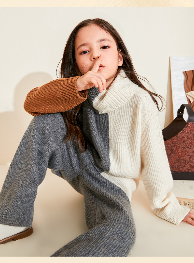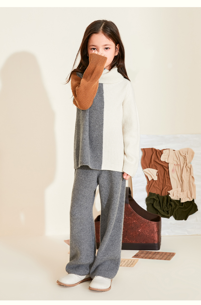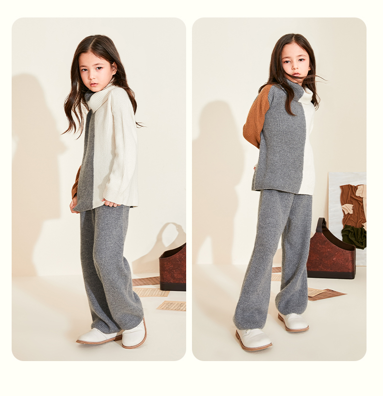 mettekids儿童羊绒衫春秋新款针织阔腿裤男童女童加厚毛衣套装