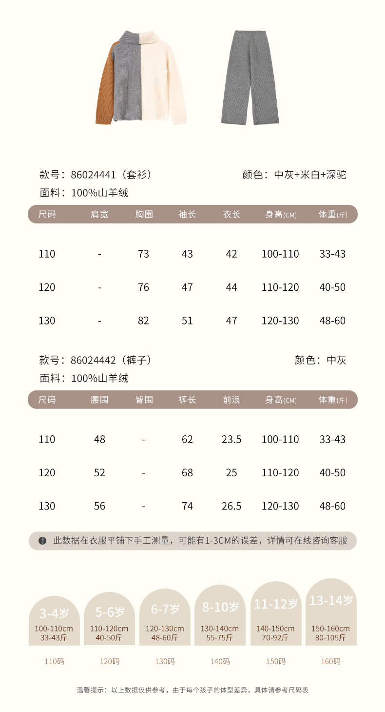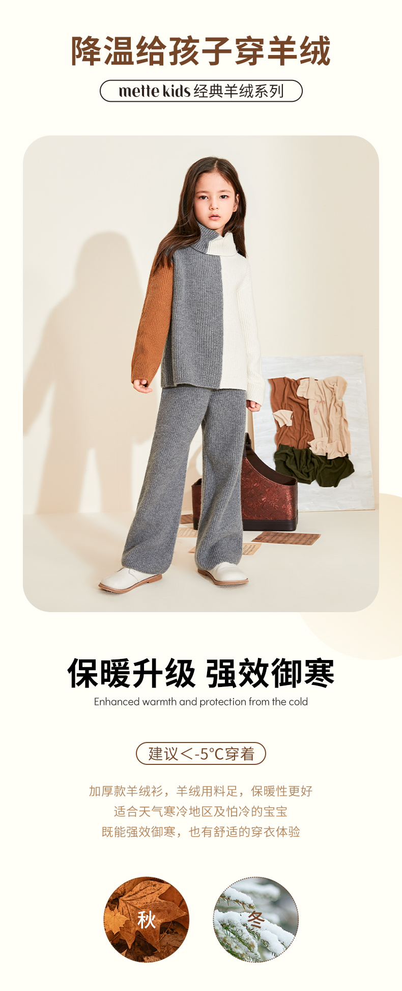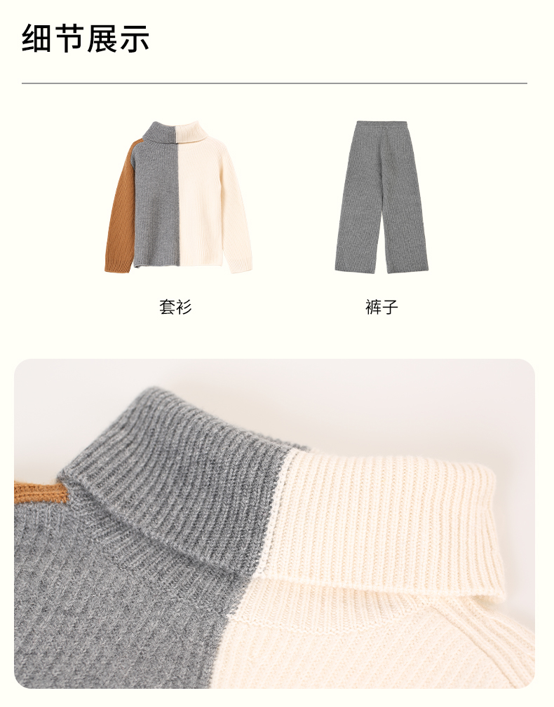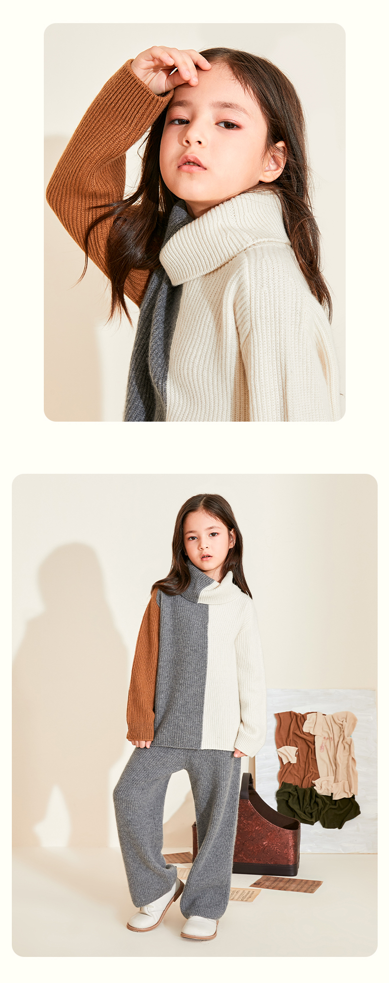 mettekids儿童羊绒衫春秋新款针织阔腿裤男童女童加厚毛衣套装