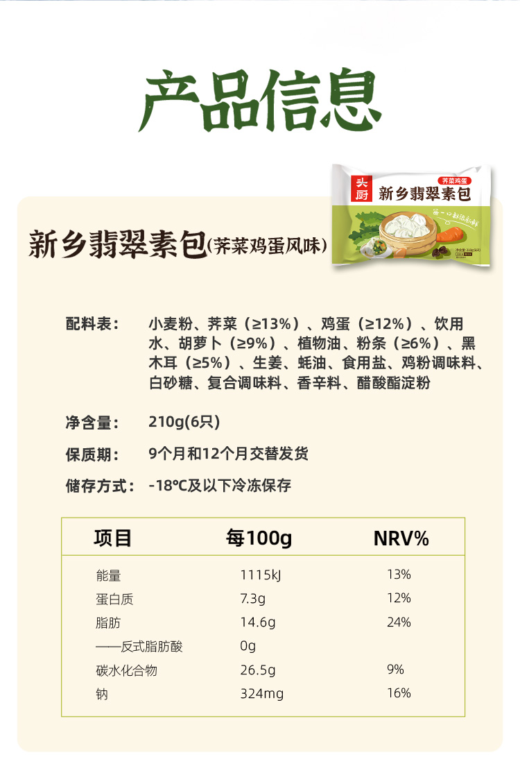 头厨 新乡翡翠素包水晶薄皮蔬菜包 210g/6只/袋