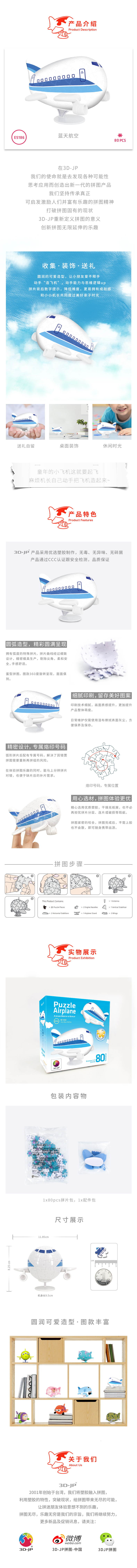 80片 飞机塑料拼图E5186 蓝天航空