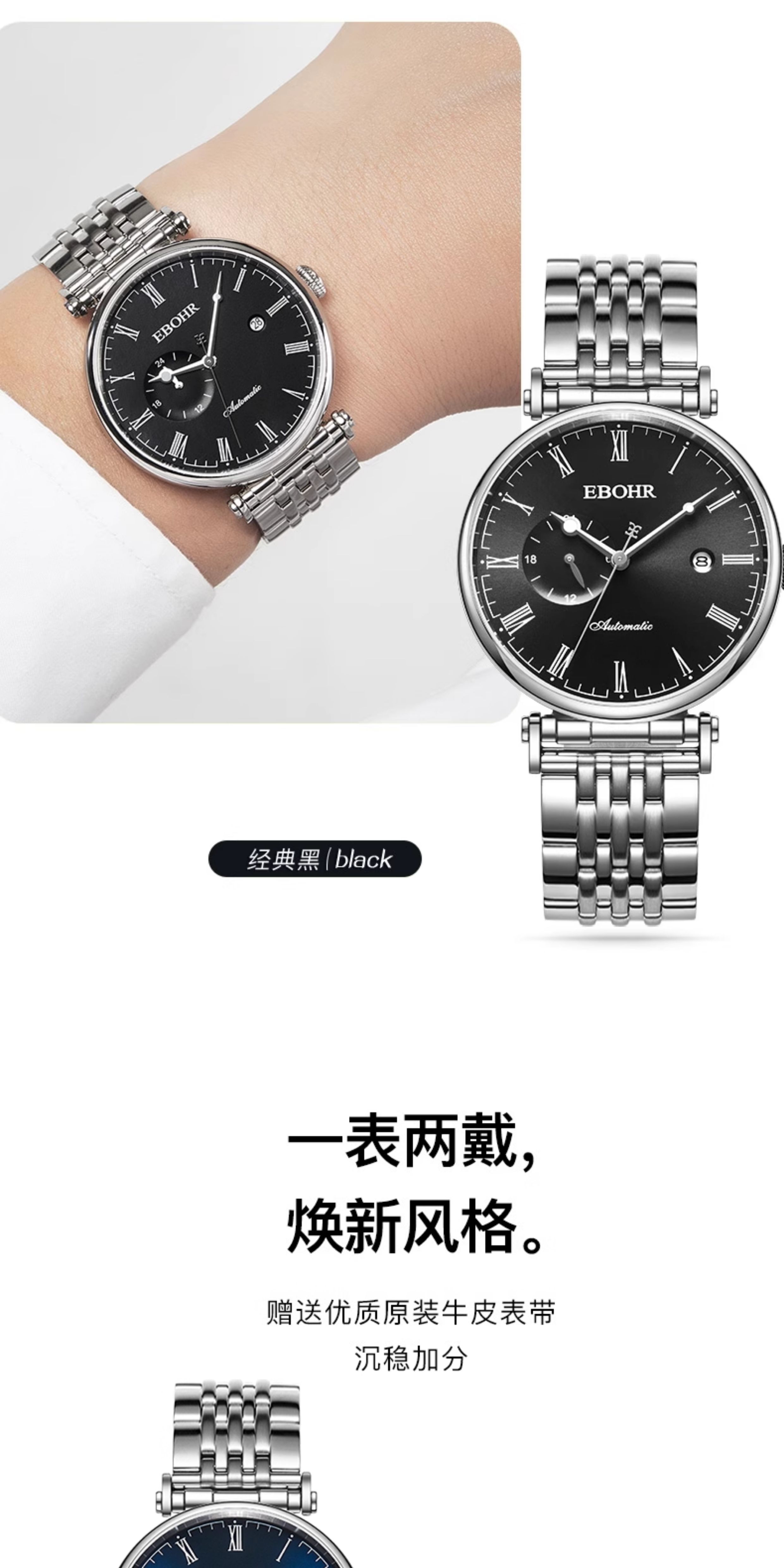 EBOHR依波表品牌官方正品镂空自动机械表男表1806