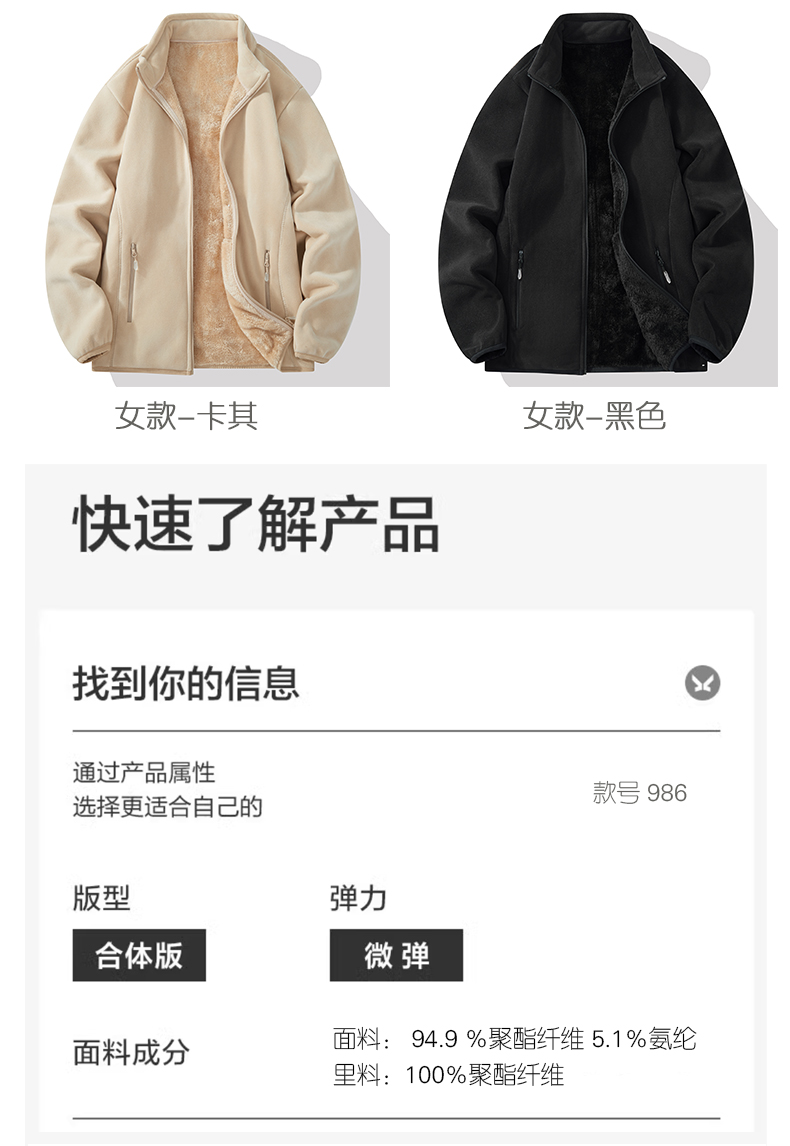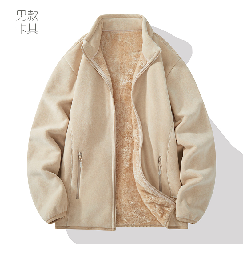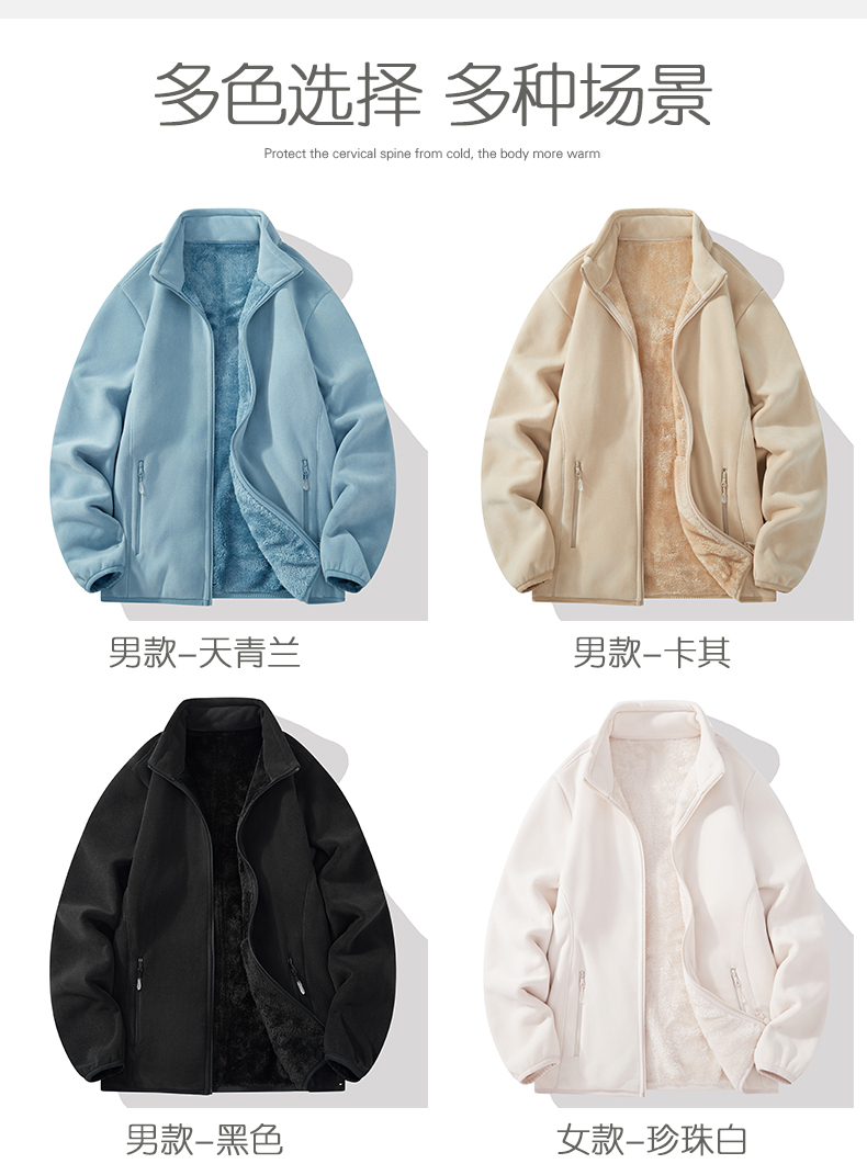 LUCKY DEER幸运鹿冬季亲子装加绒加厚保暖立领开衫抓绒外套