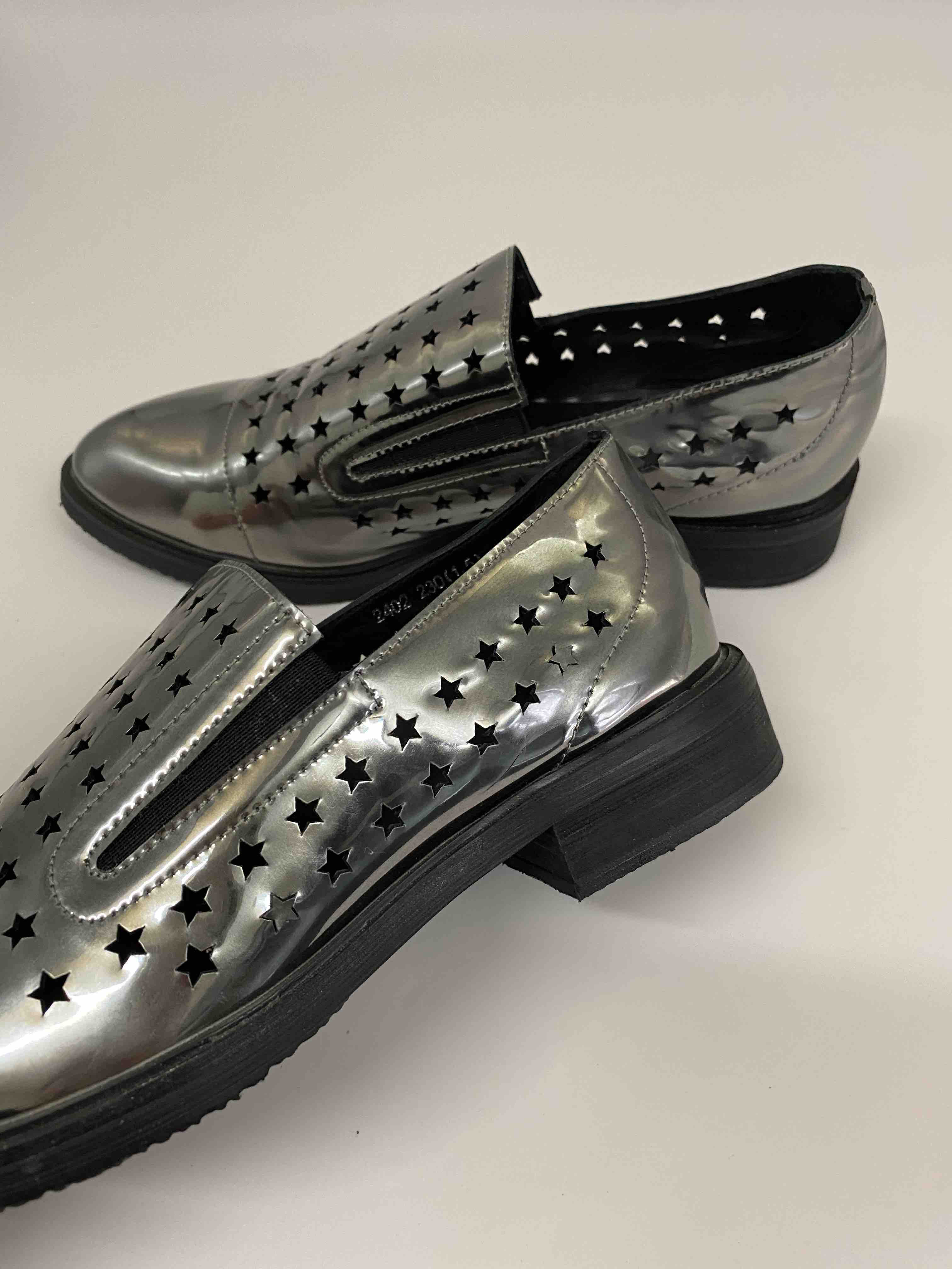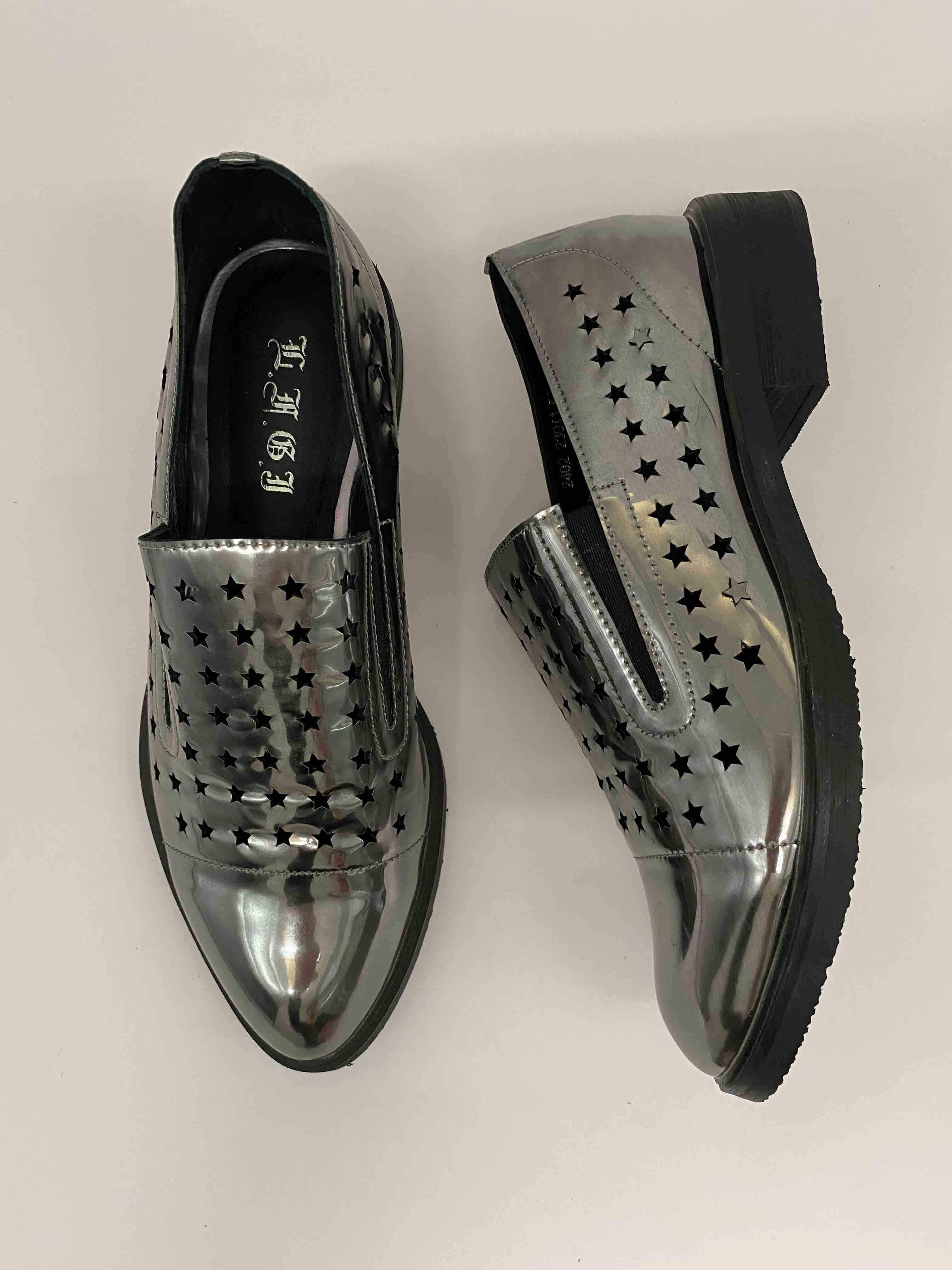 LFGJ 2402 漆皮女鞋尖头系带亮皮粗根软皮单鞋休闲鞋镂空方跟潮
