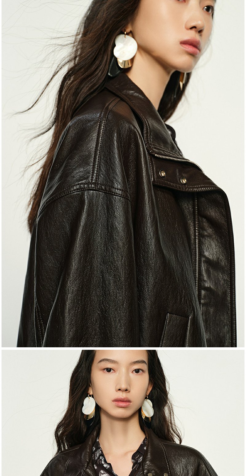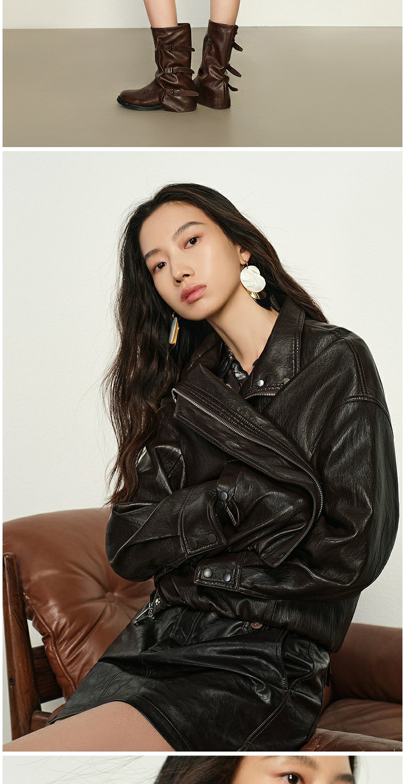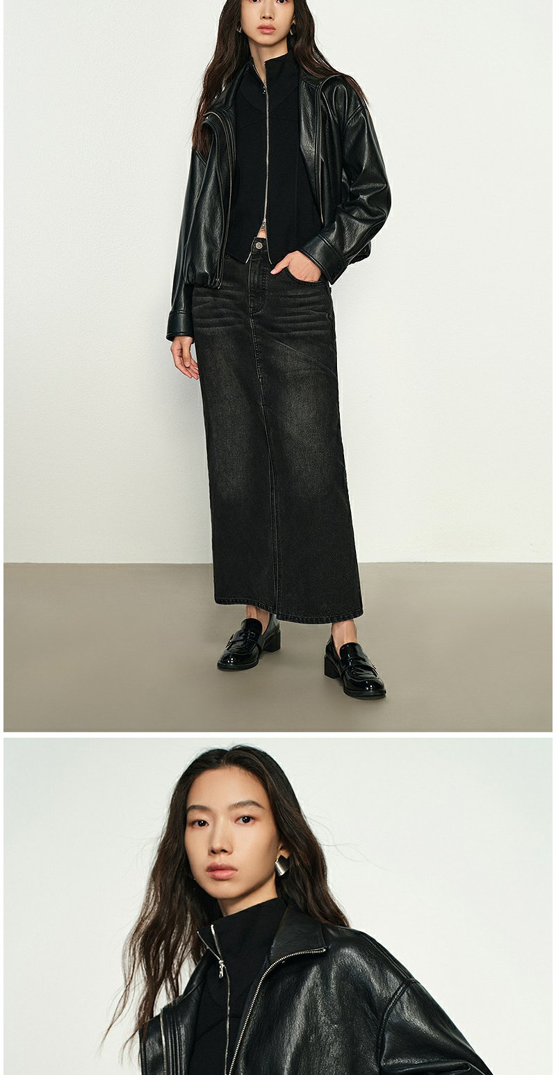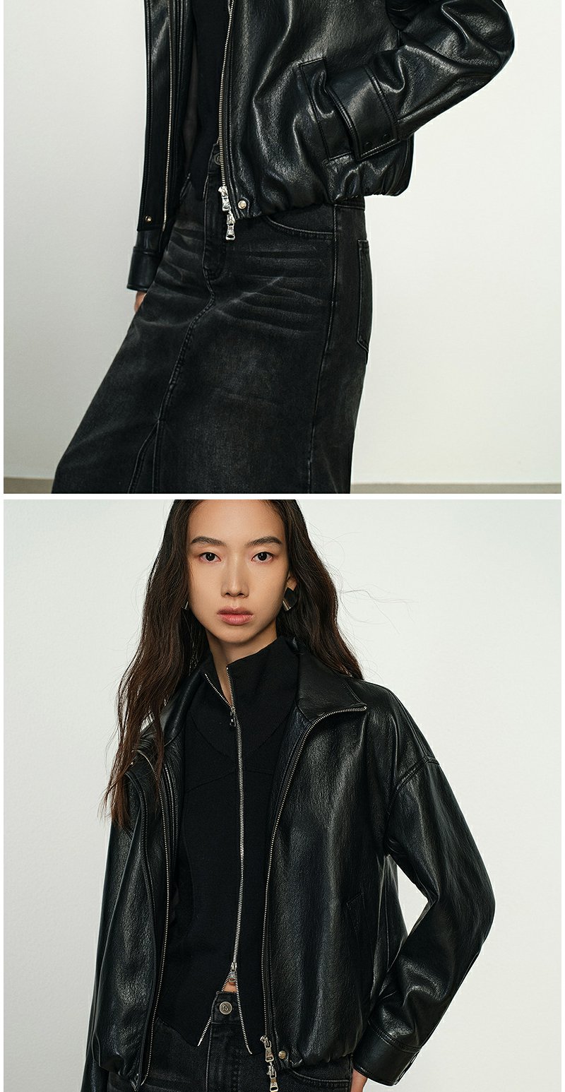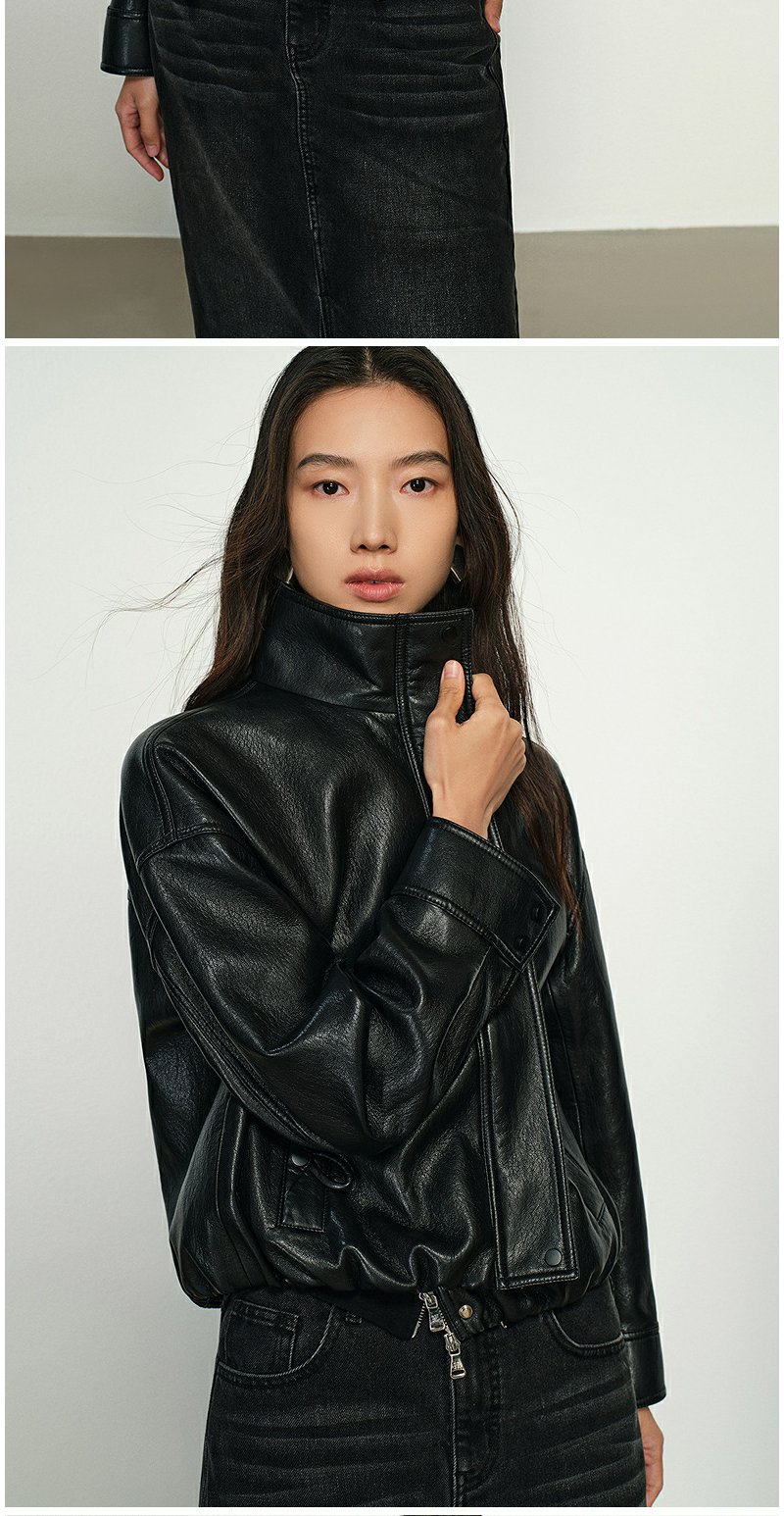 NEELLY纳俪商场同款秋季新款短款帅气黑色皮衣女高级感复古短外套N25084C04411