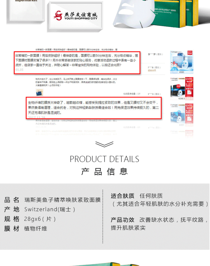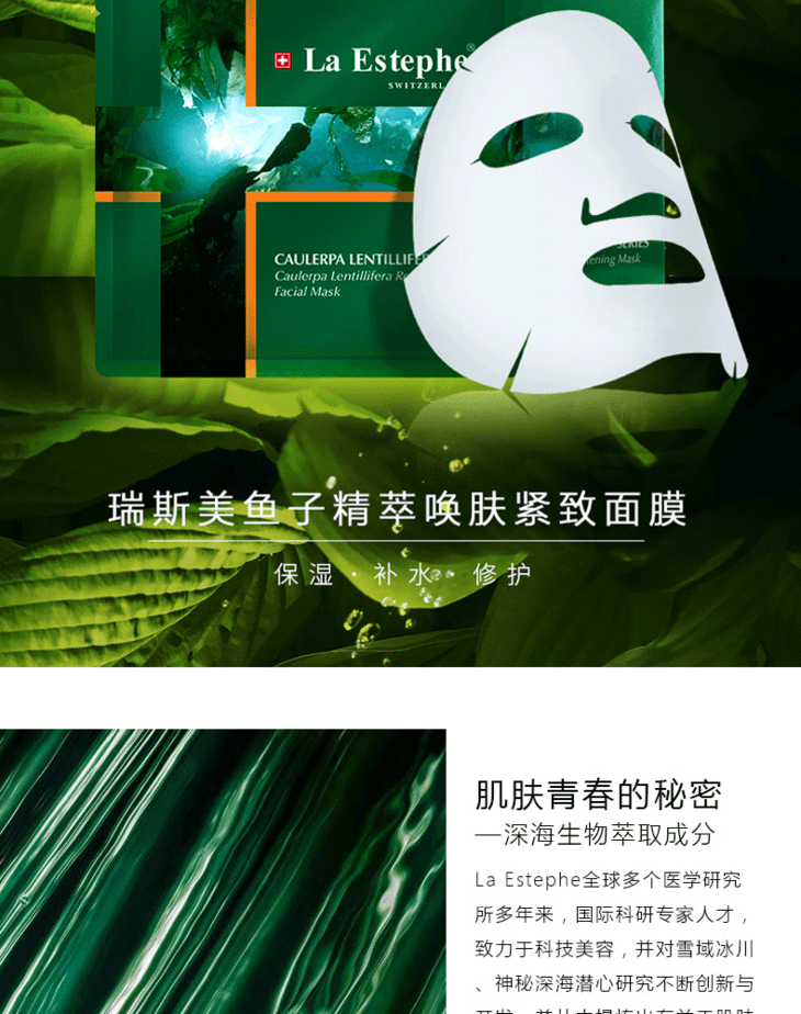瑞士原装La Estephe/瑞斯美 深海绿鱼子系列精萃唤肤紧致面膜 28g*6片
