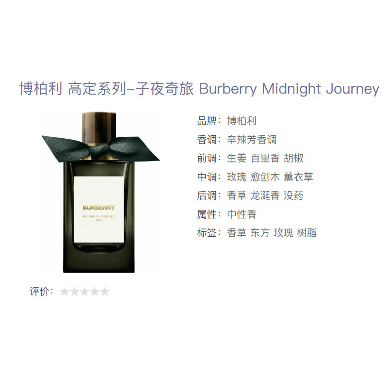 【保税仓】博柏利高定香氛子夜奇旅浓香水100ml