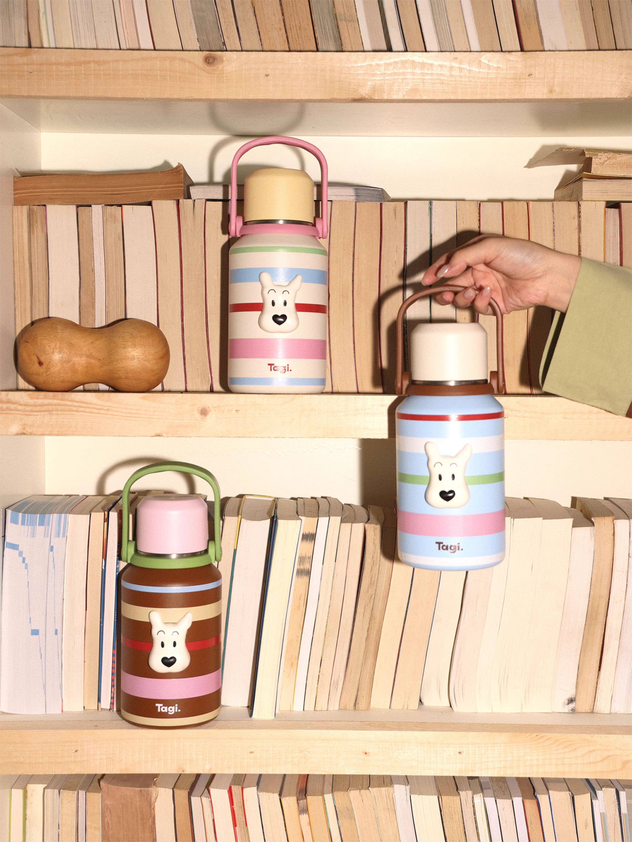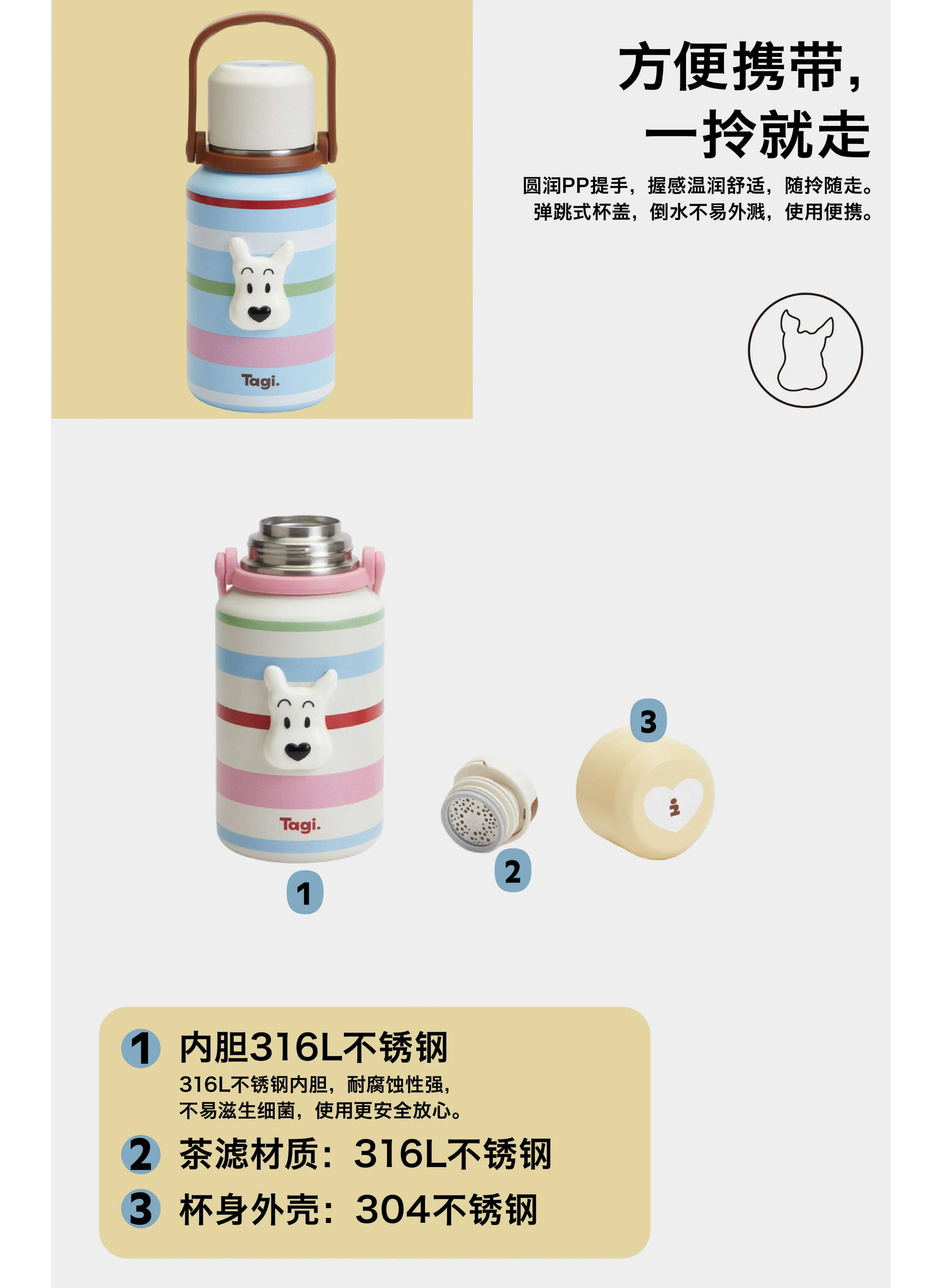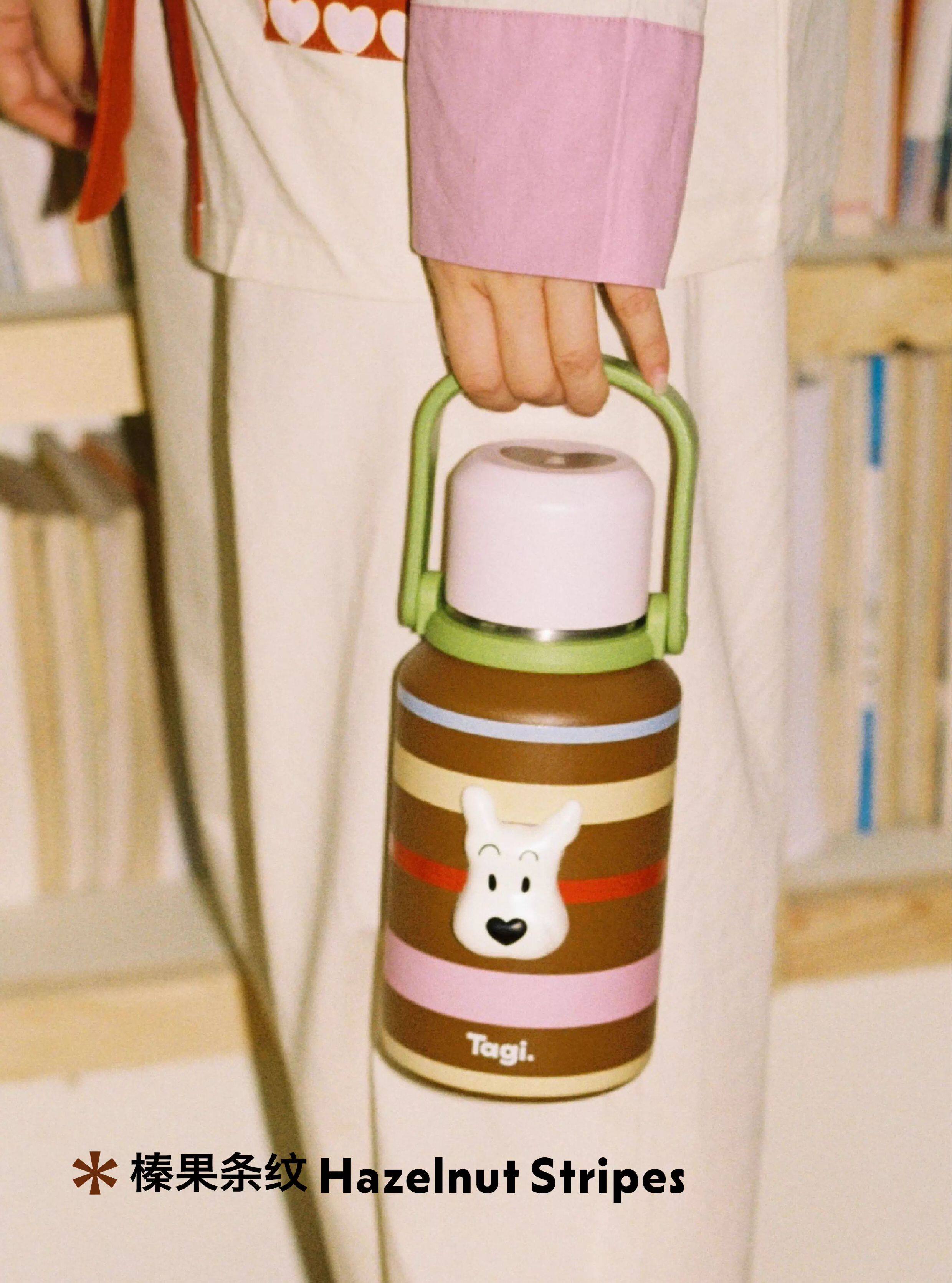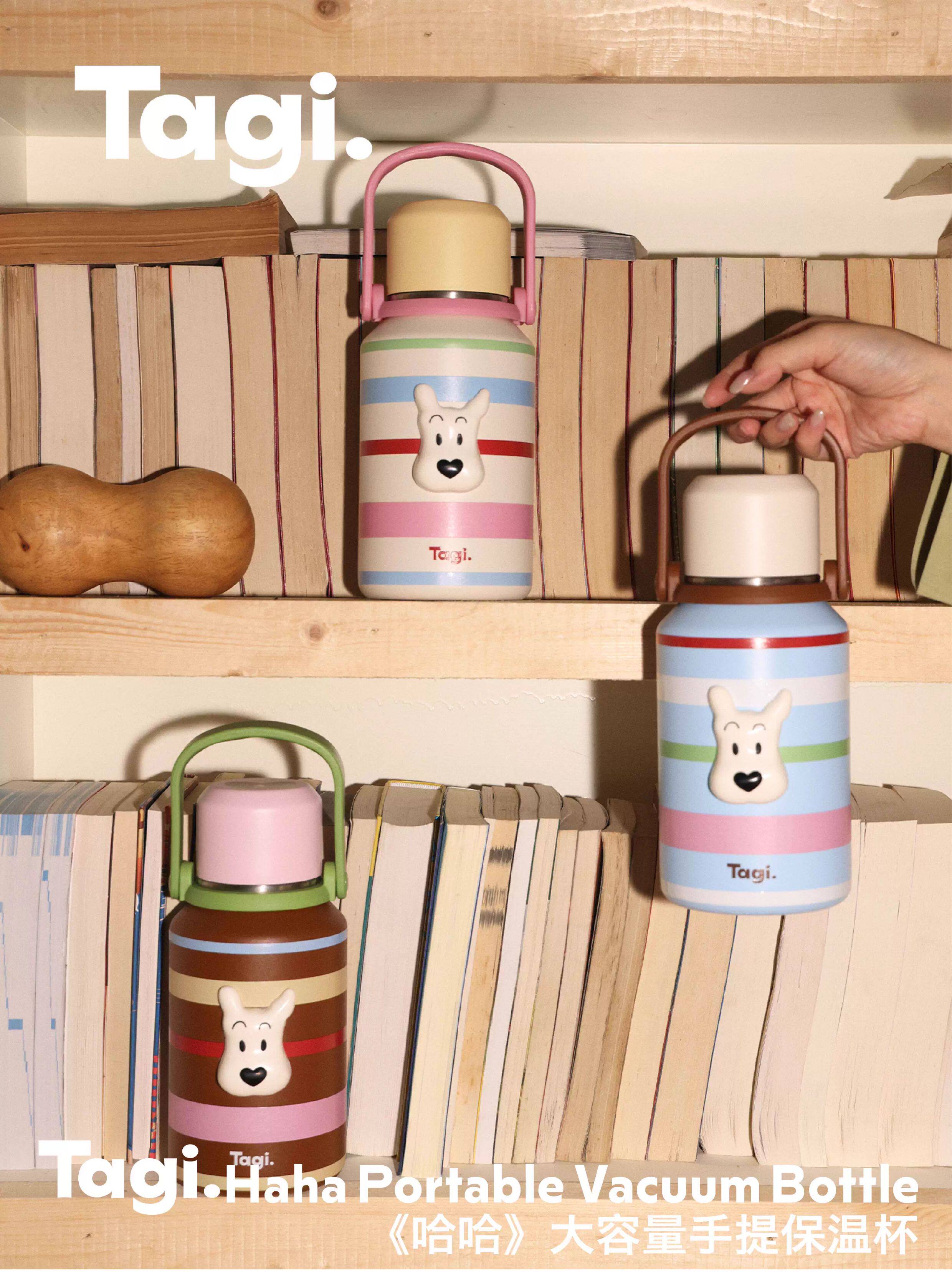 Tagi 哈哈彩色条纹爱心便携保温杯 大容量水杯便携带盖保温杯