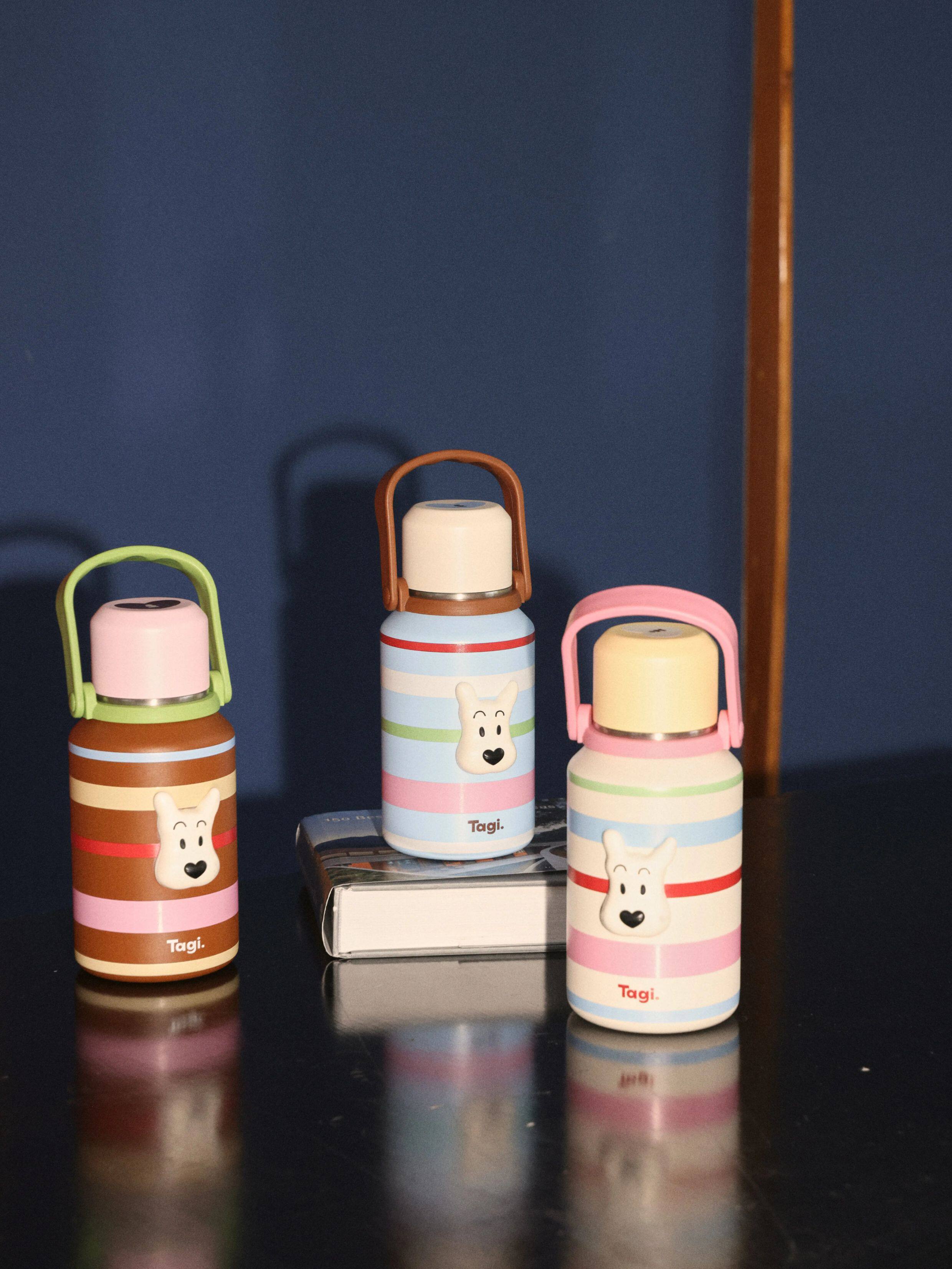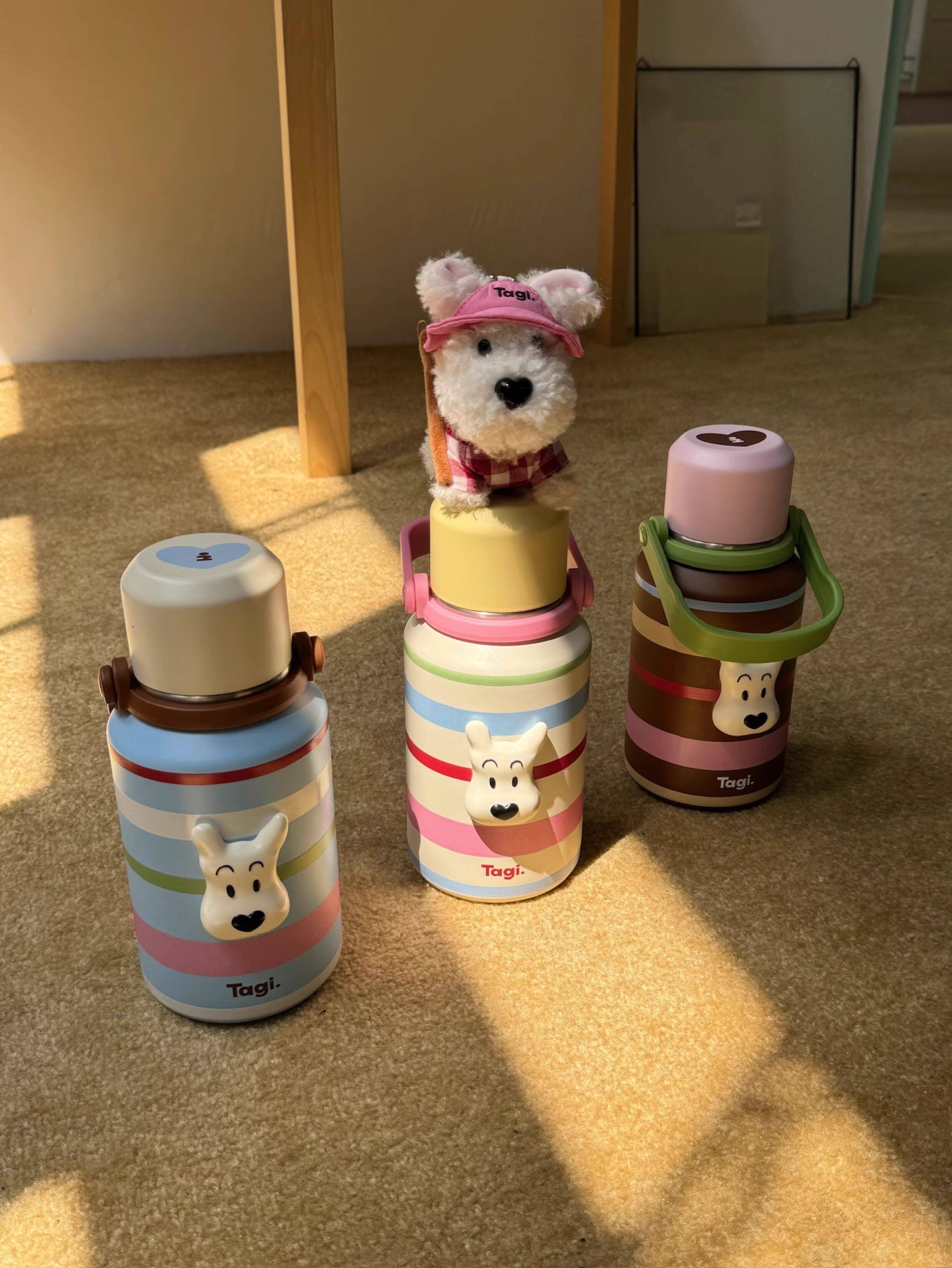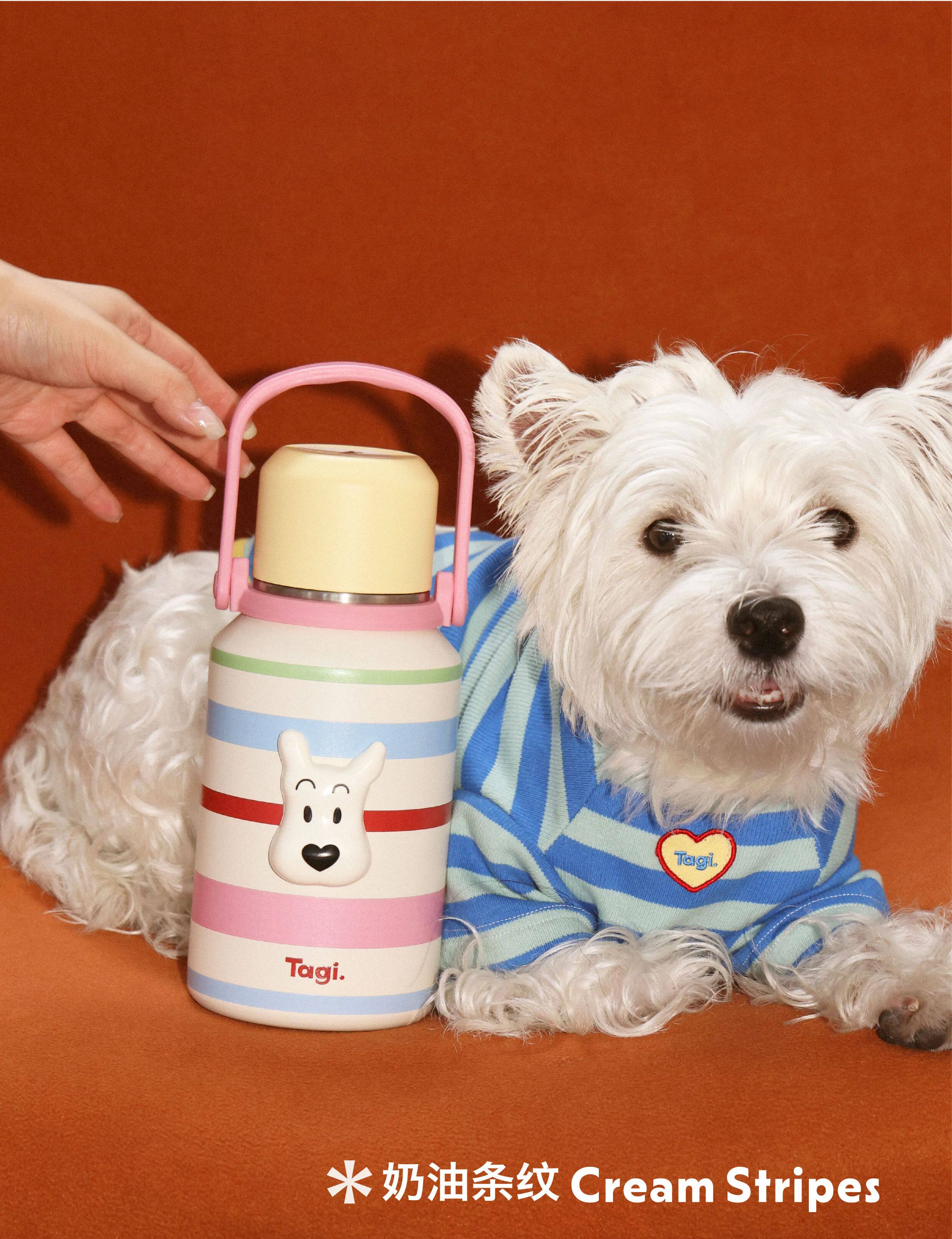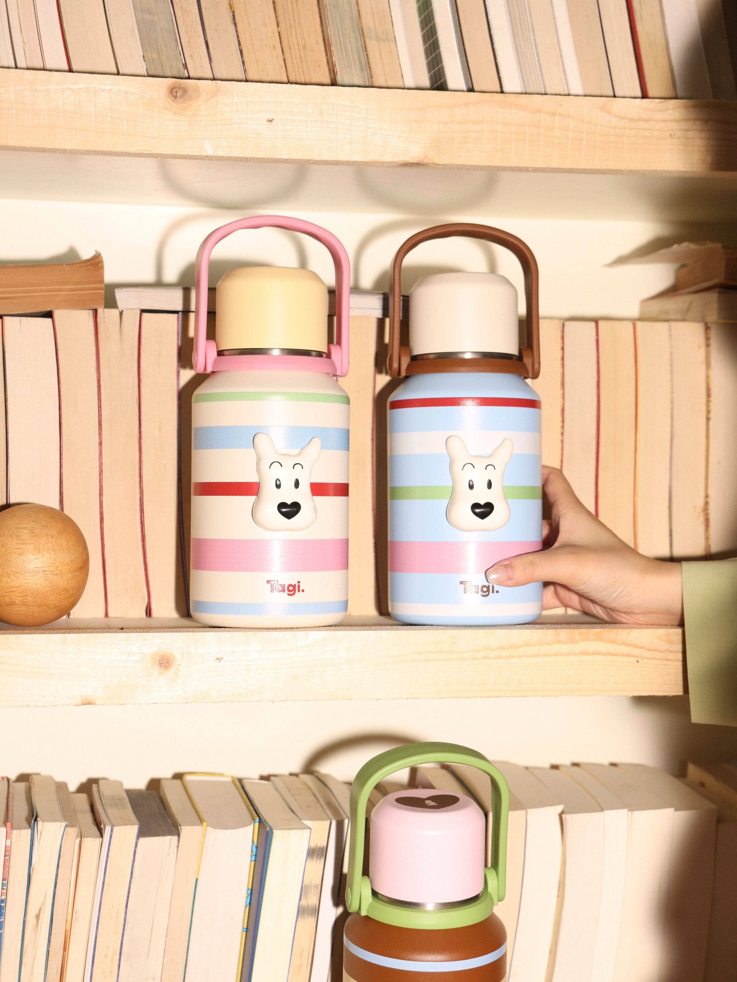 Tagi 哈哈彩色条纹爱心便携保温杯 大容量水杯便携带盖保温杯
