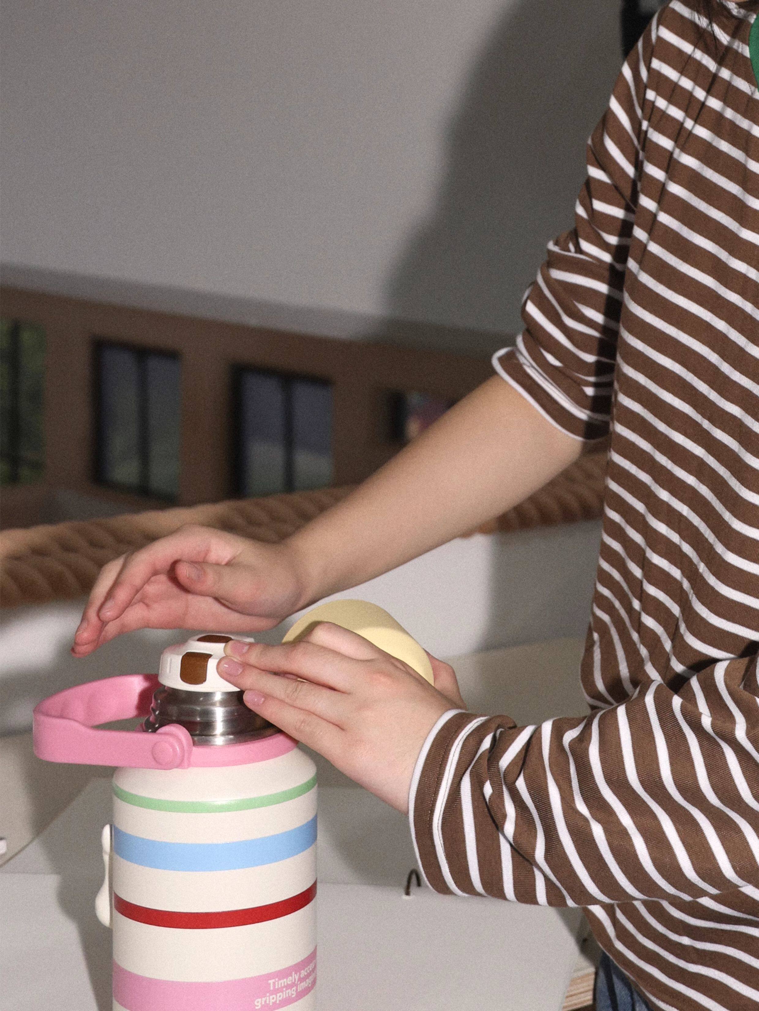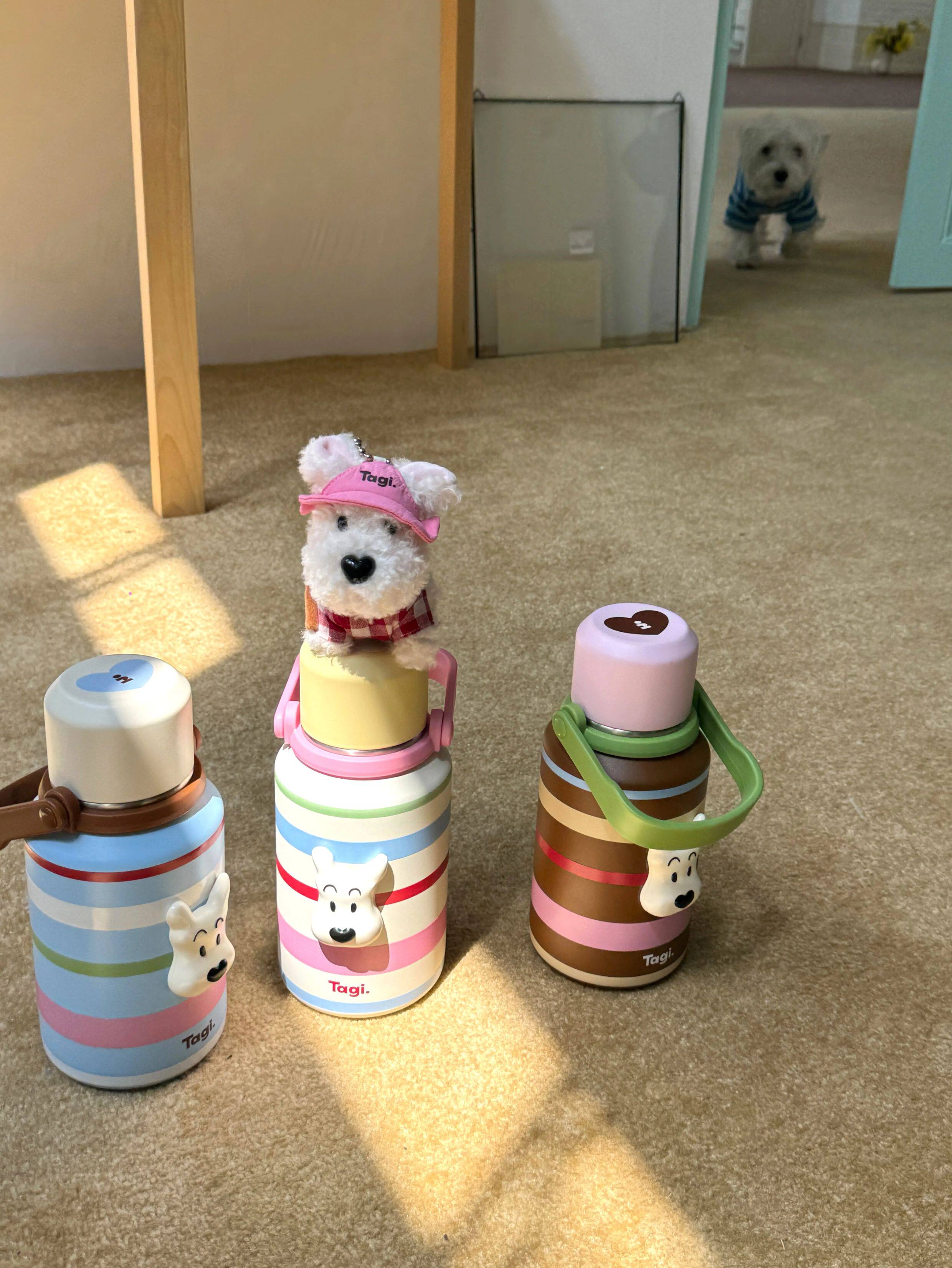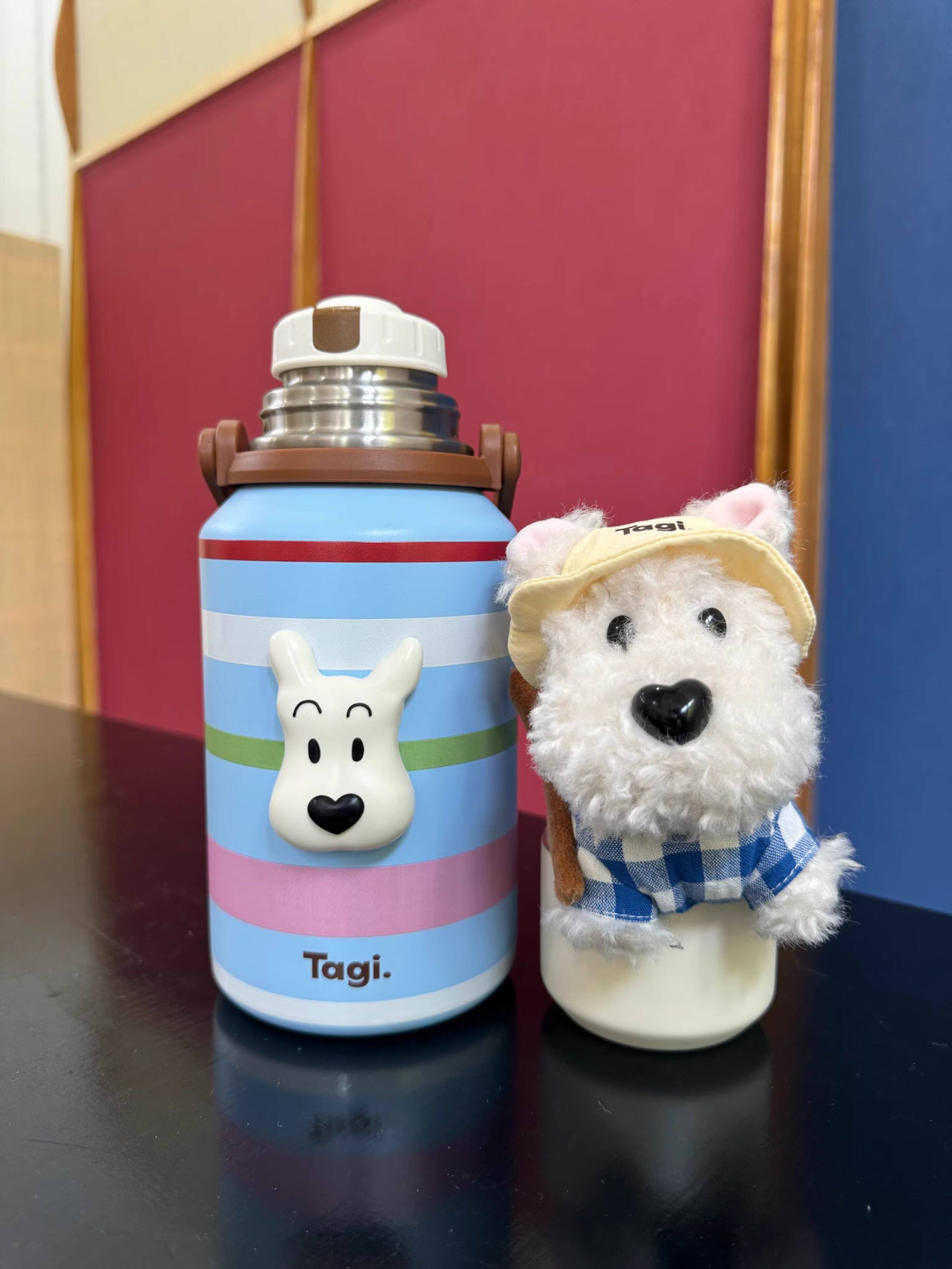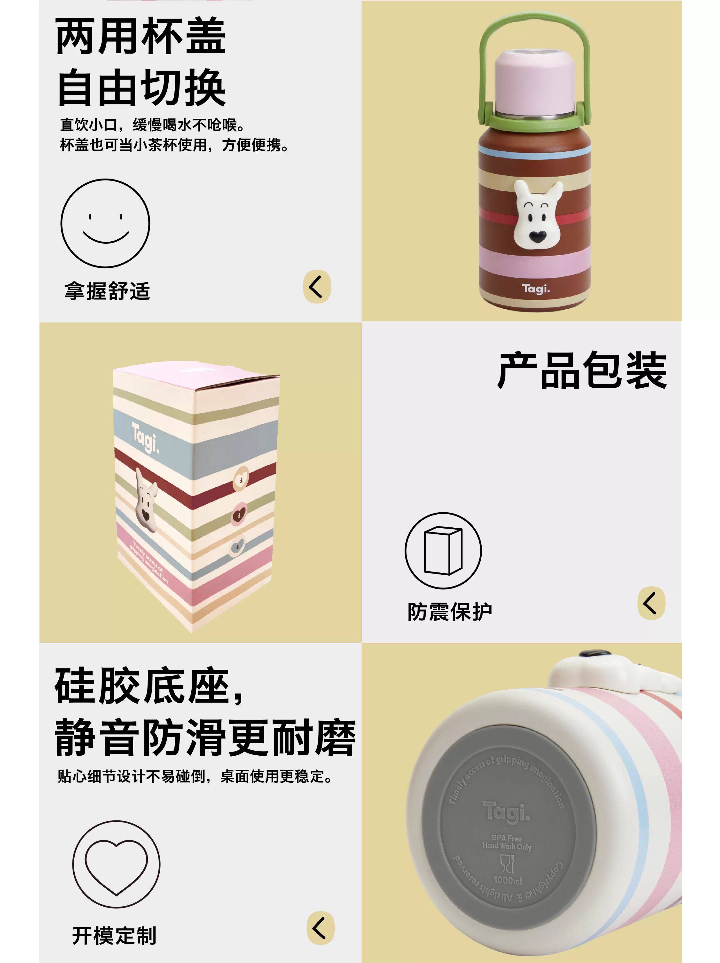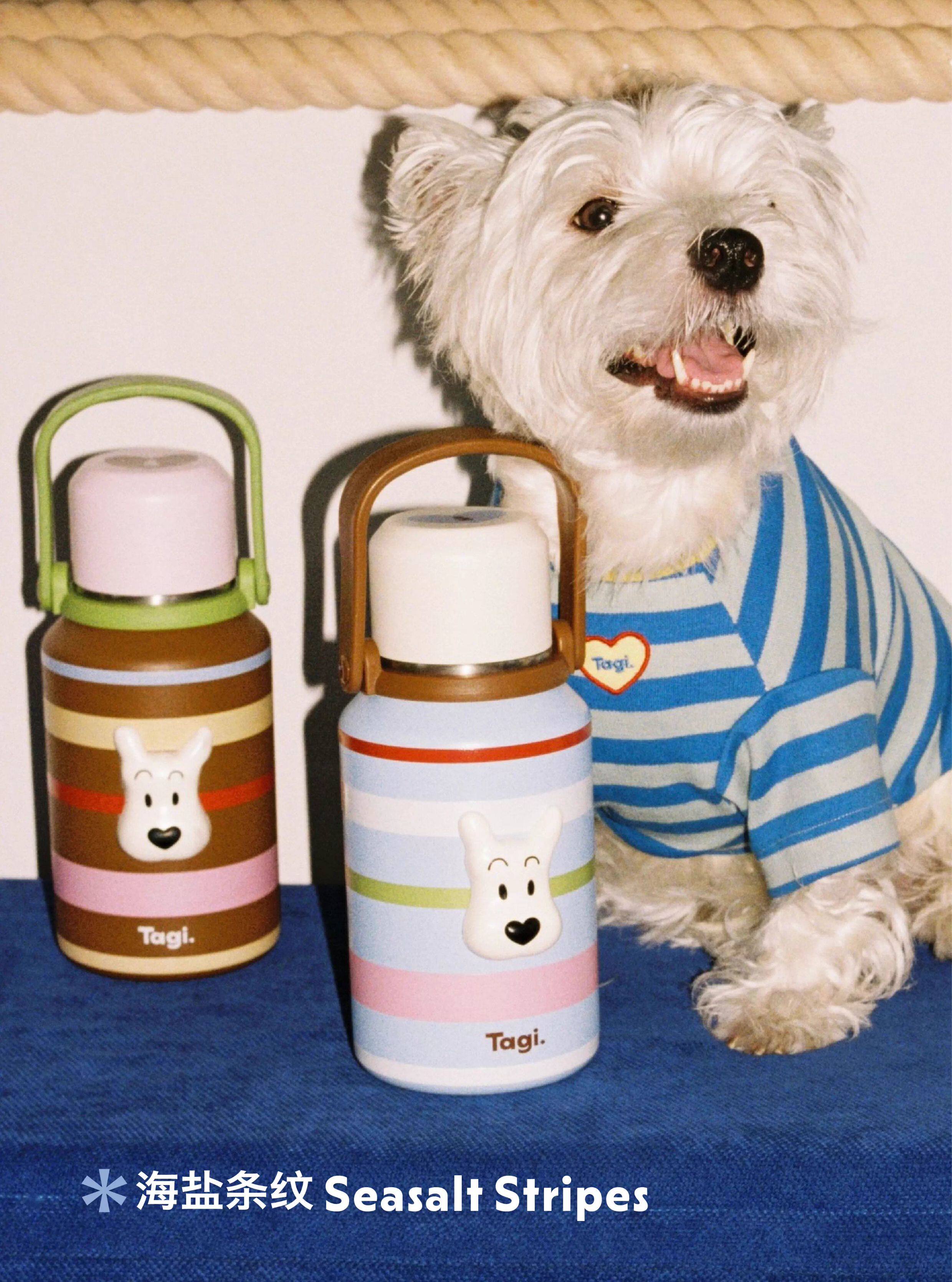 Tagi 哈哈彩色条纹爱心便携保温杯 大容量水杯便携带盖保温杯
