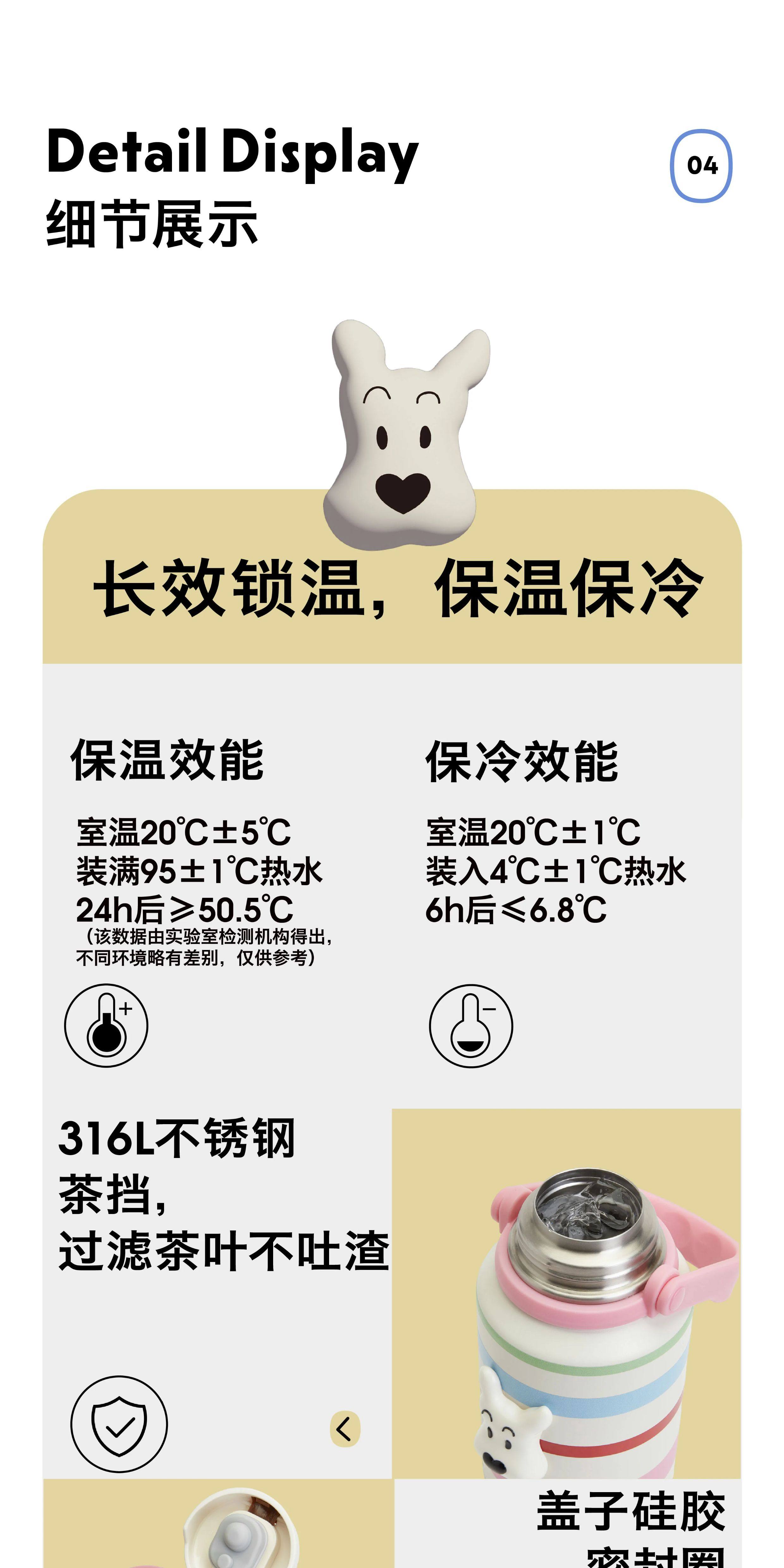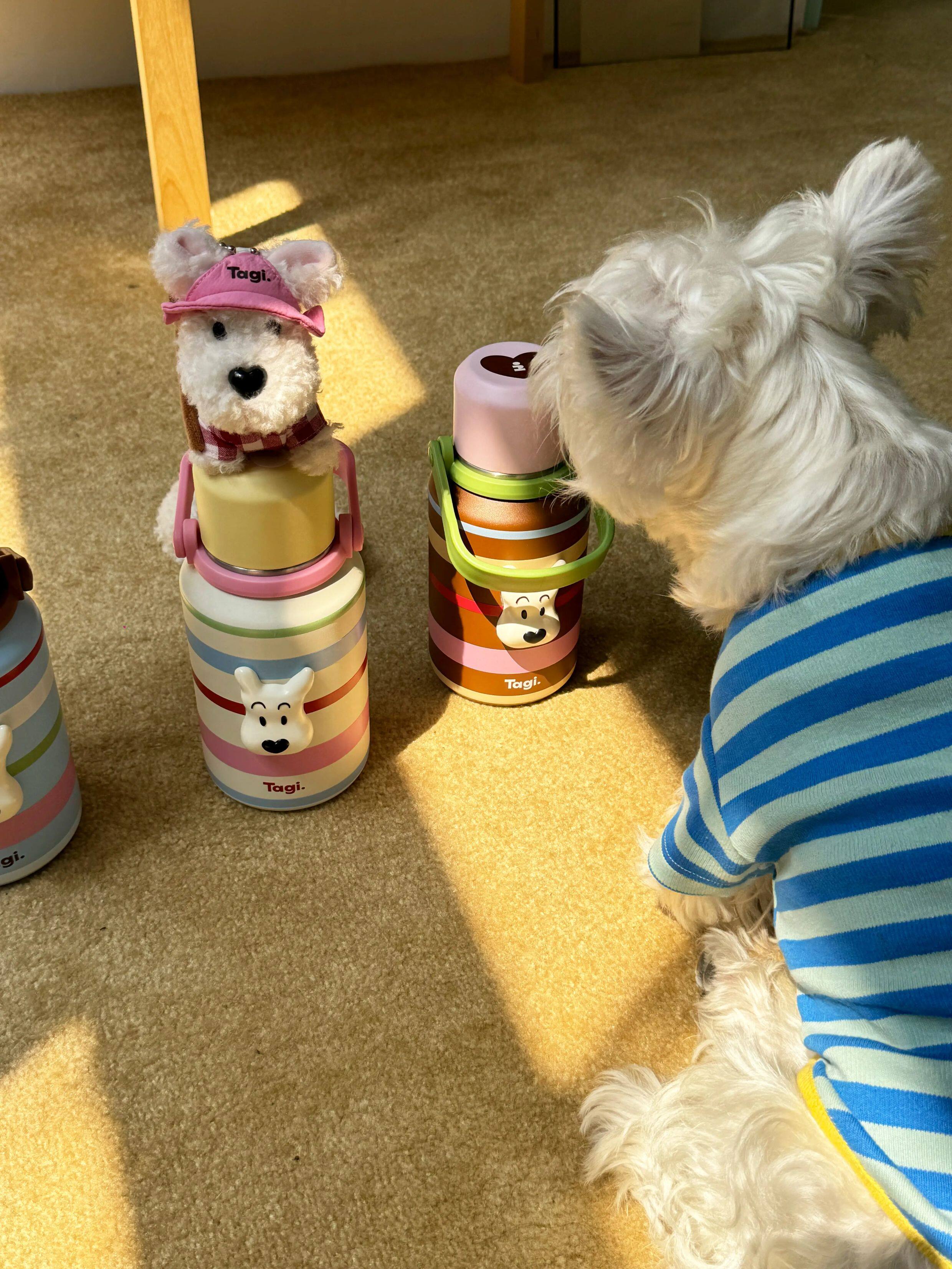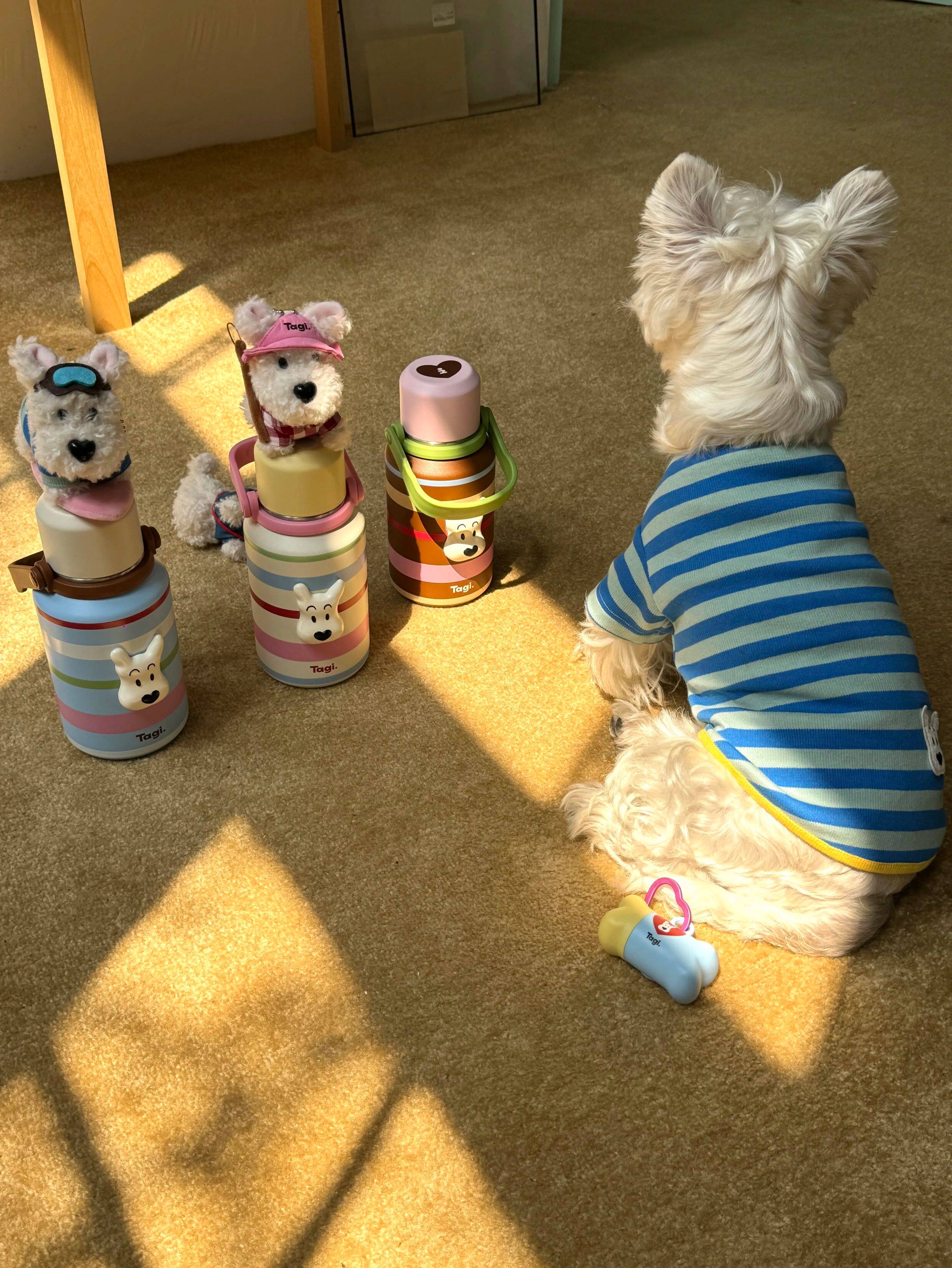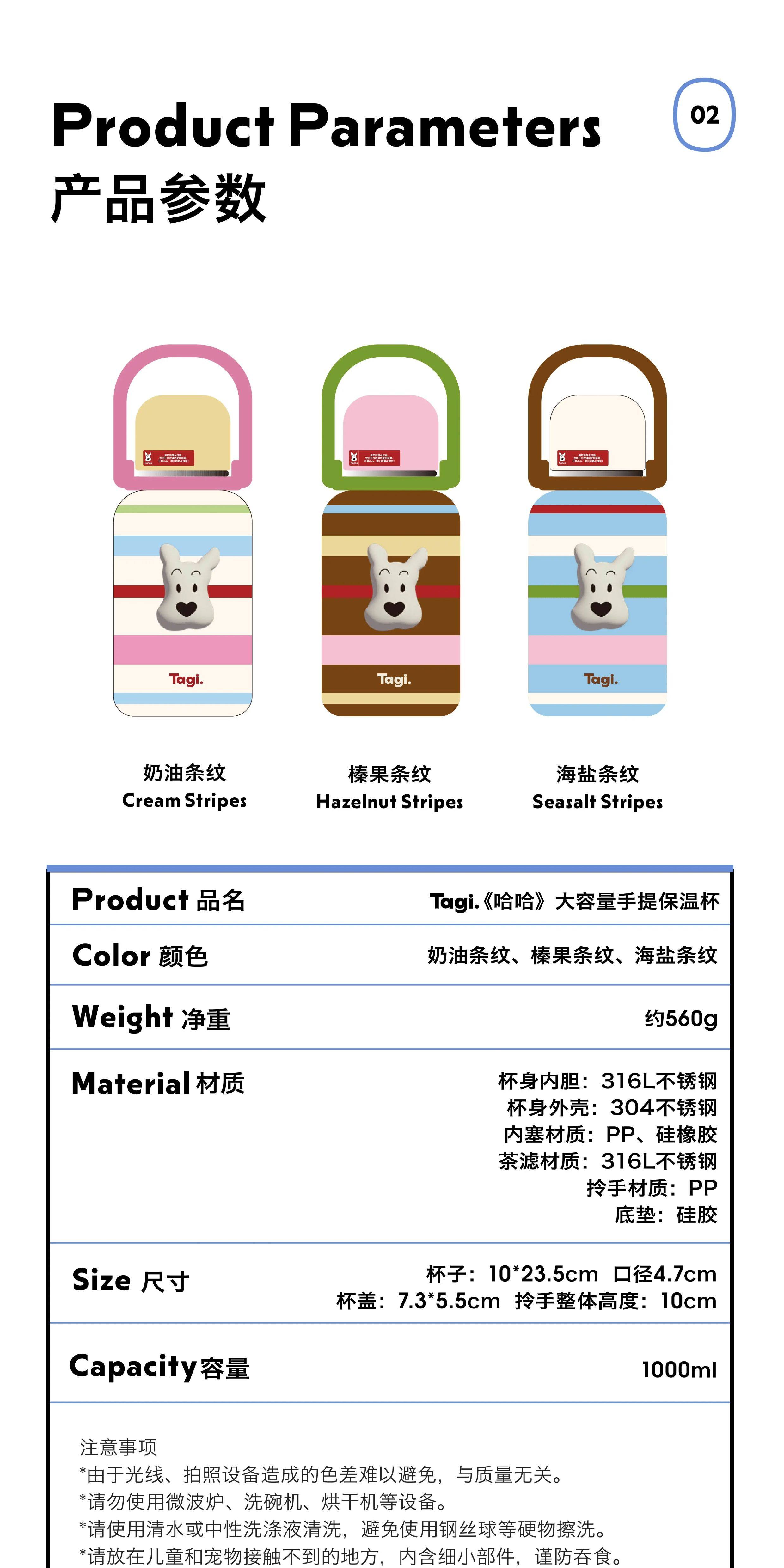Tagi 哈哈彩色条纹爱心便携保温杯 大容量水杯便携带盖保温杯