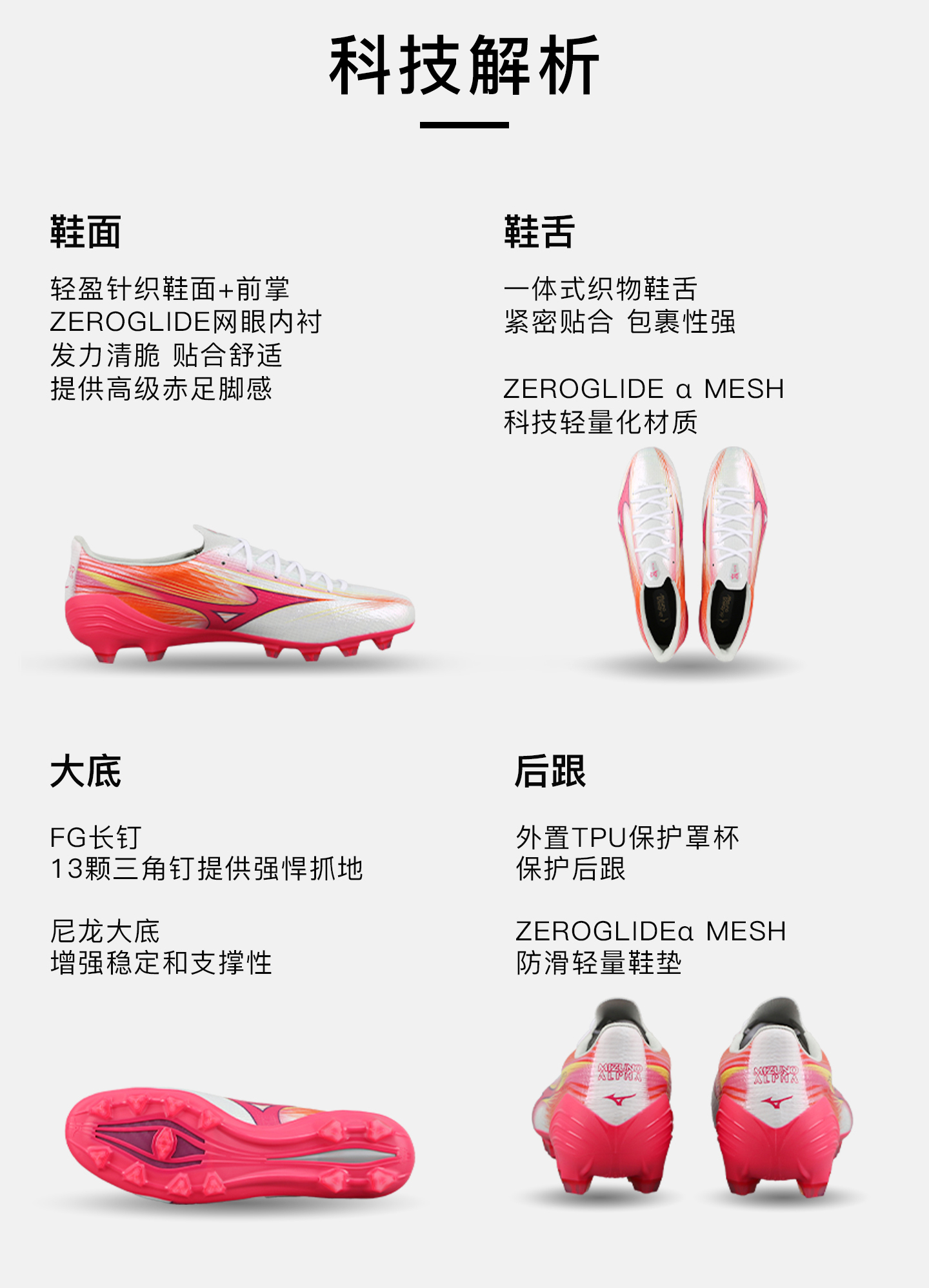 小李子Mizuno美津浓 阿尔法α 高端FG长钉运动训练成人足球鞋男