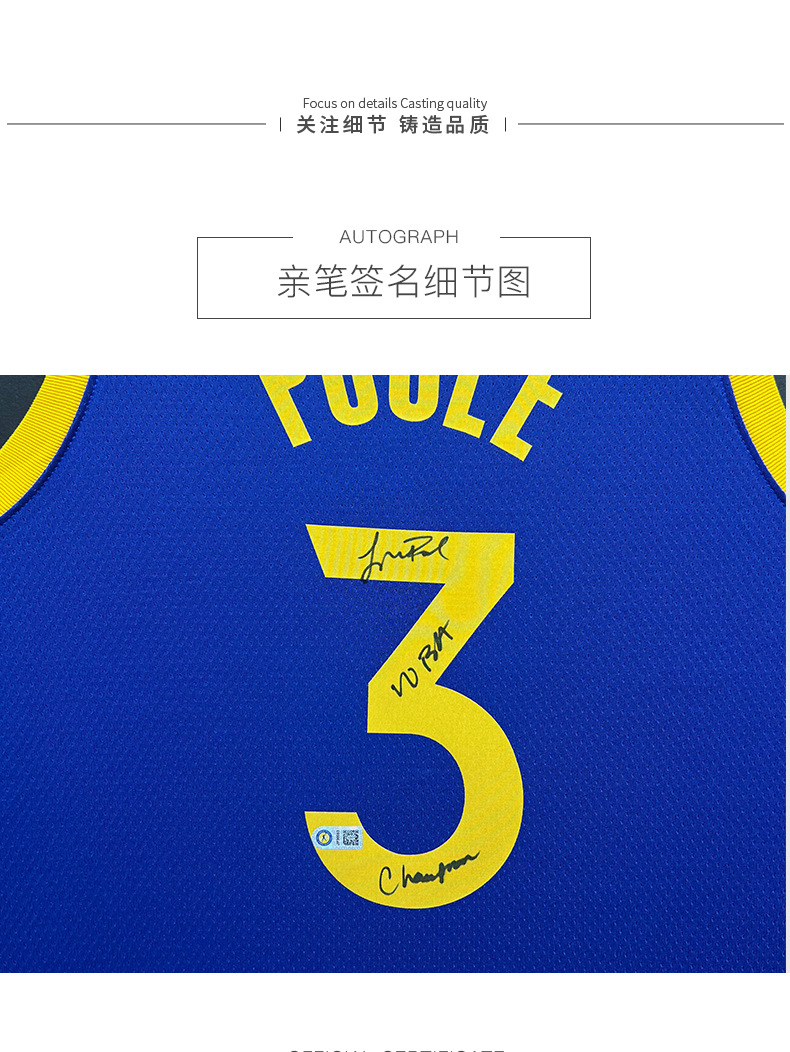 收藏系列 普尔 勇士队3号蓝色加签款 亲笔签名球衣