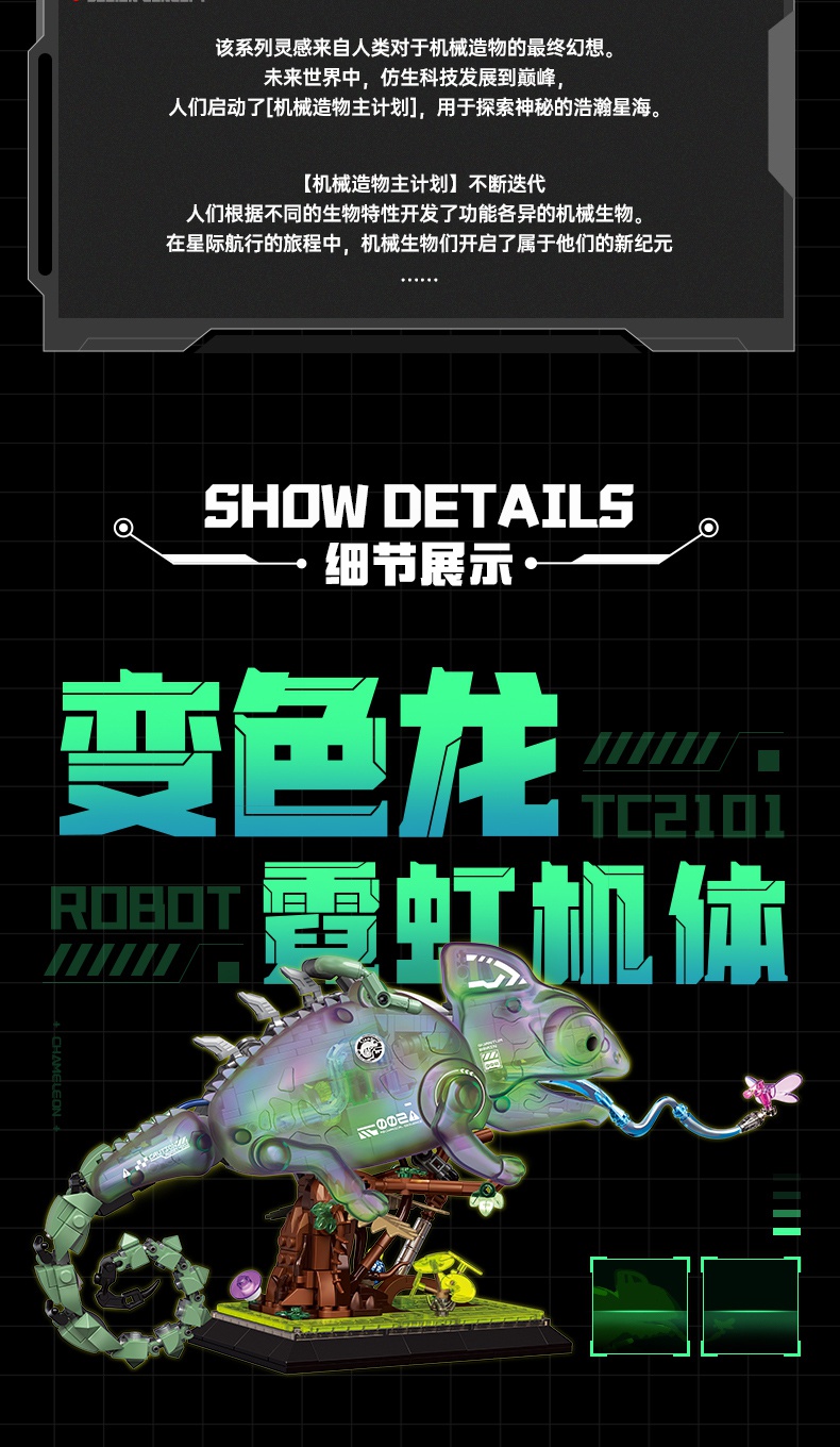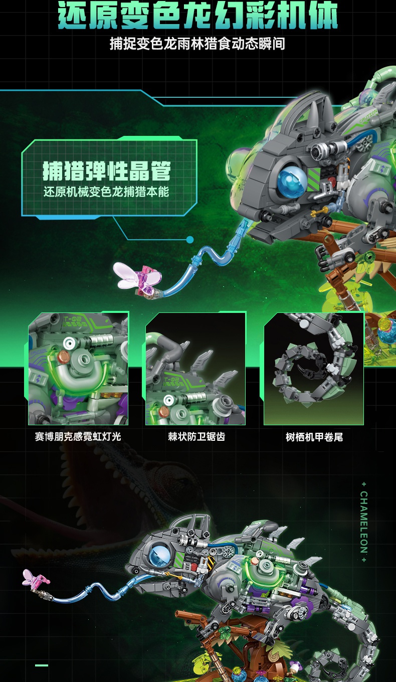 TOPTOY-创意拼装系列-机械造物变色龙霓虹机体