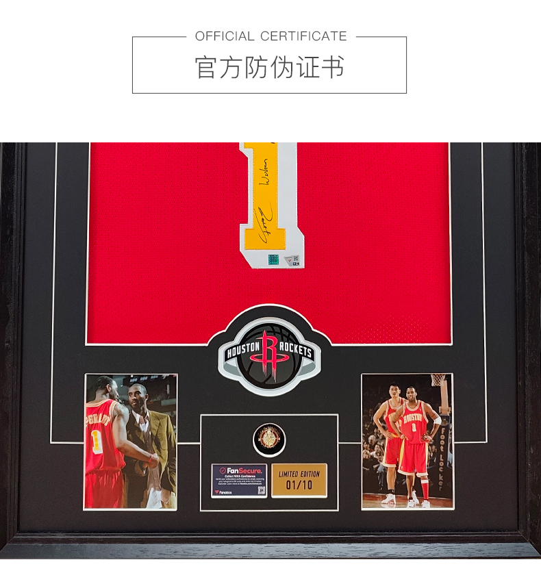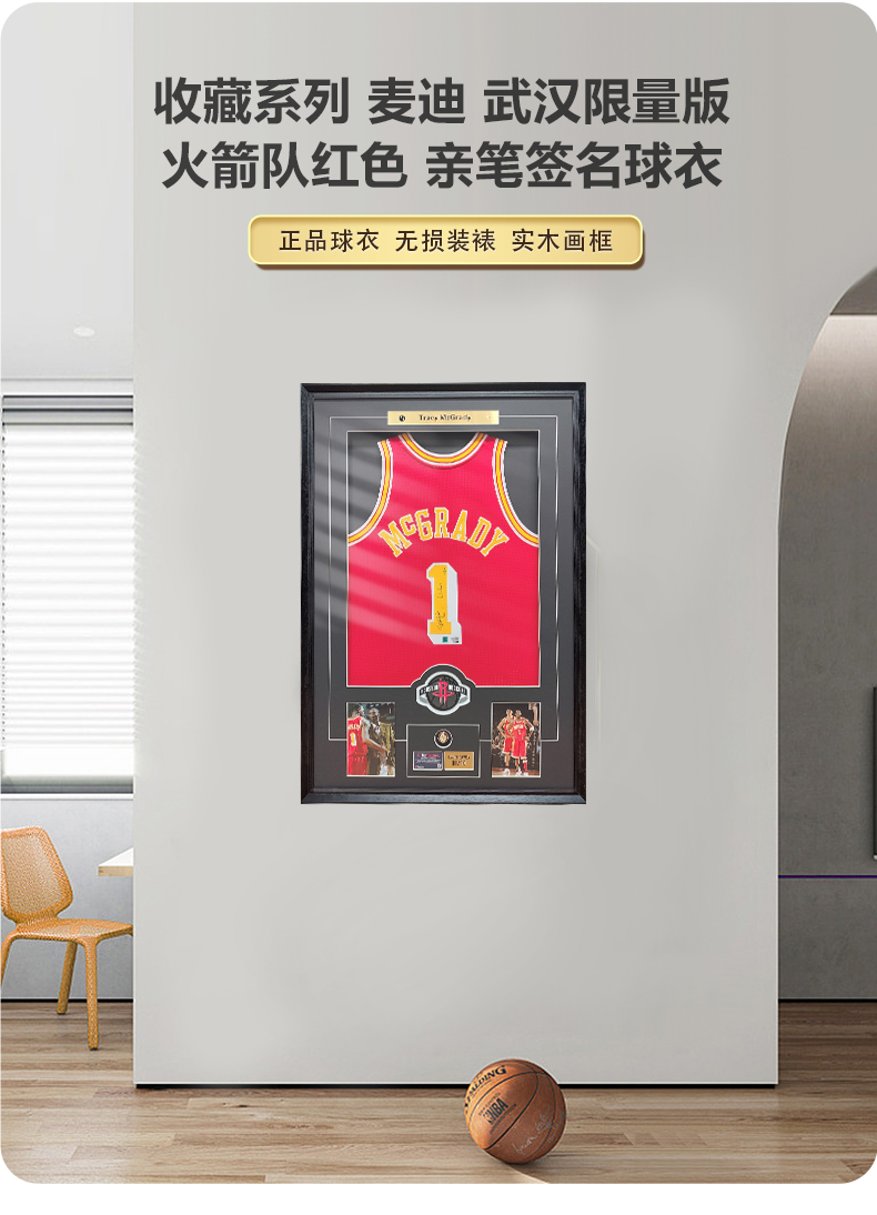 收藏系列 麦迪 “武汉”限量版 火箭队红色1号 亲笔签名球衣