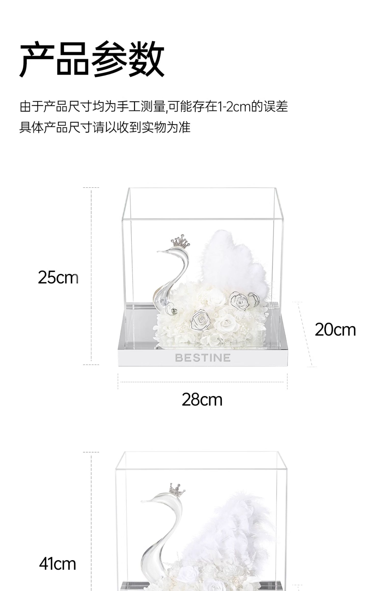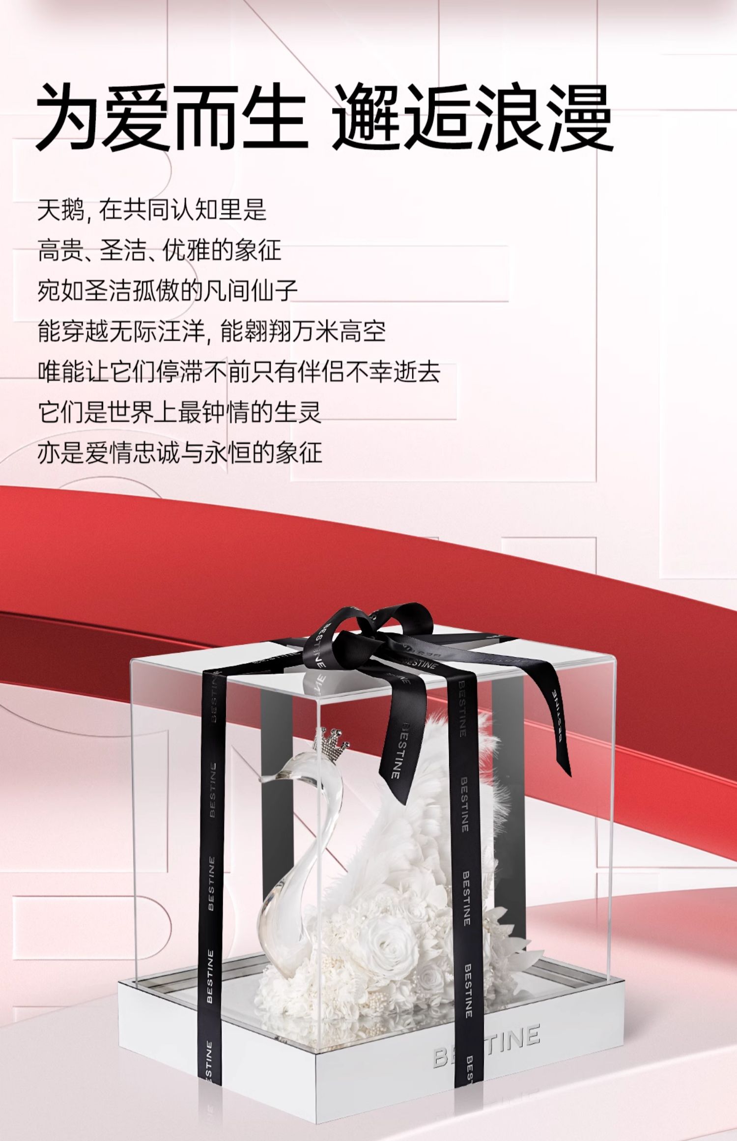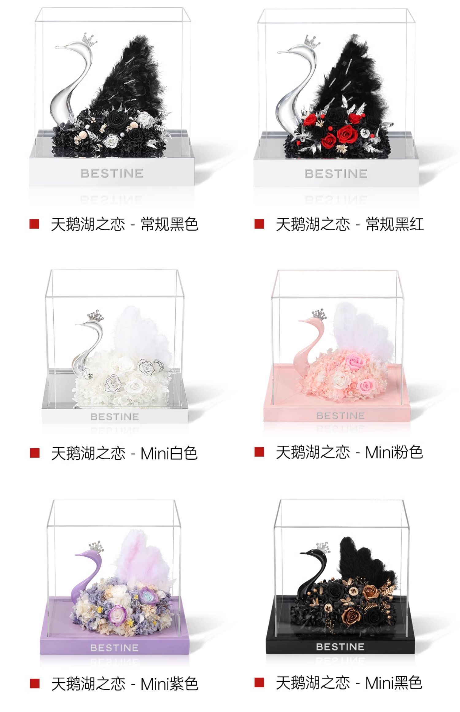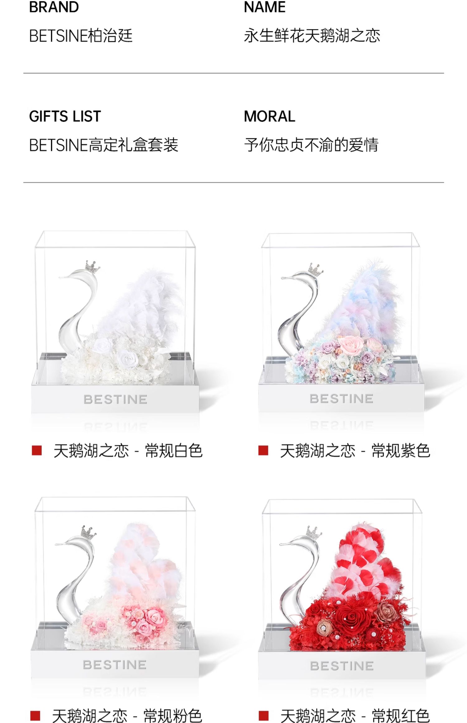 VBEINGS花语 天鹅湖之恋 mini/大号 永生花玫瑰花摆件礼盒送女友生日礼物情人节礼物