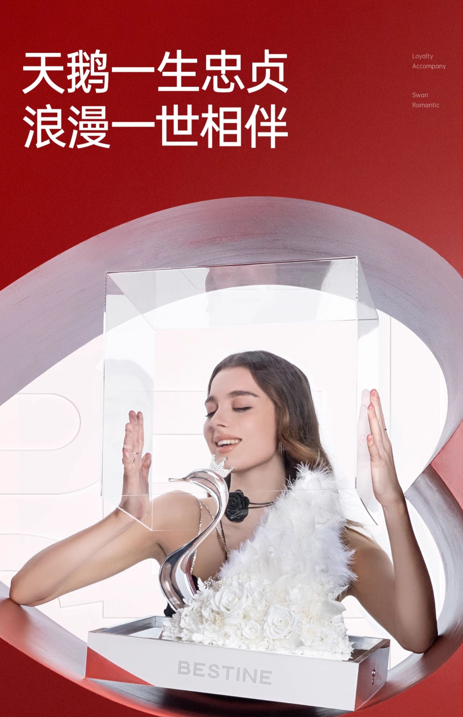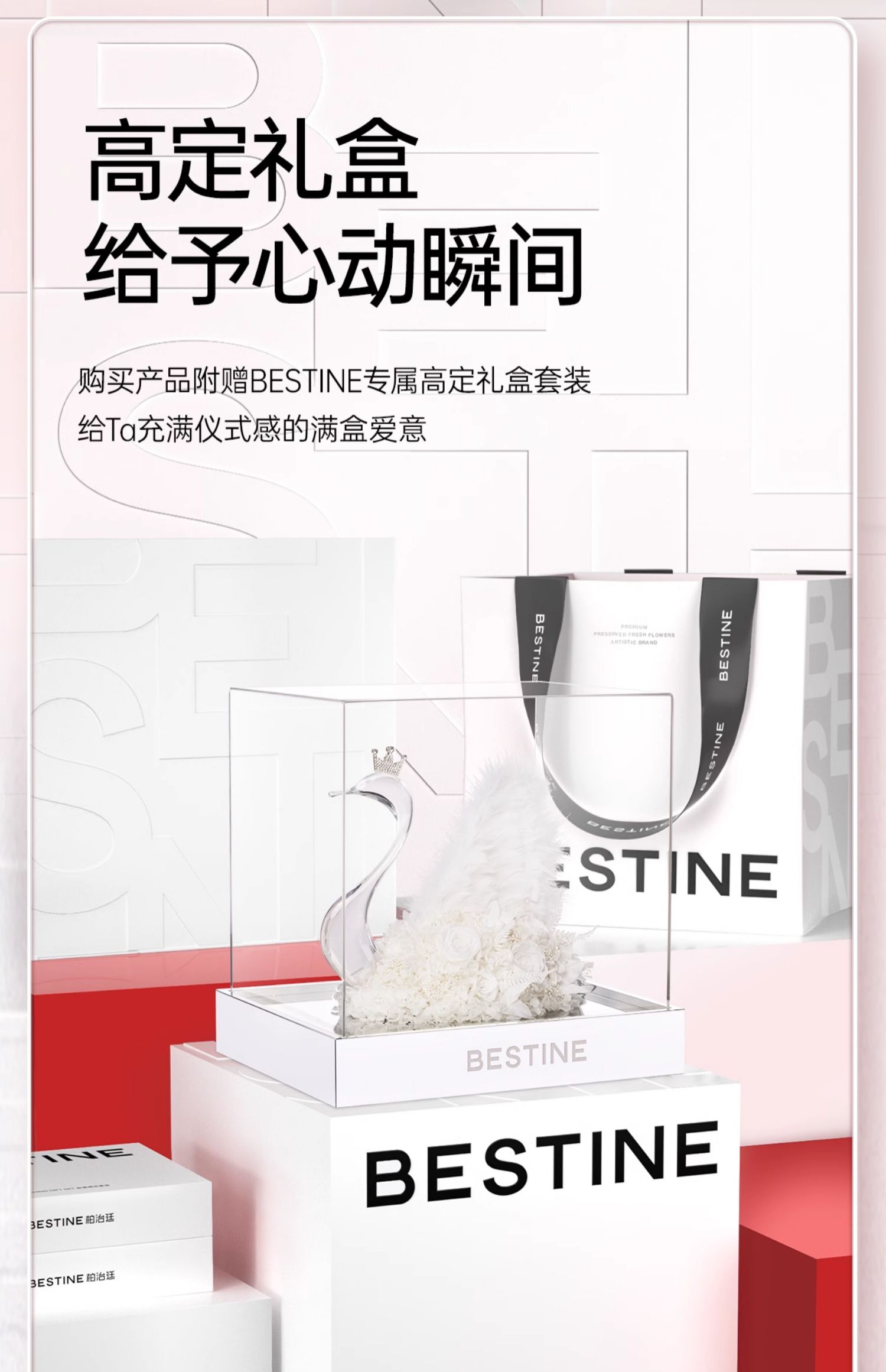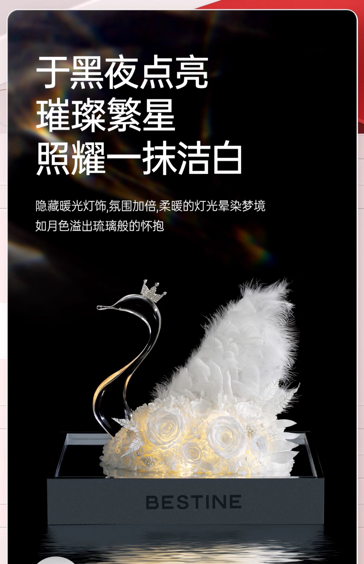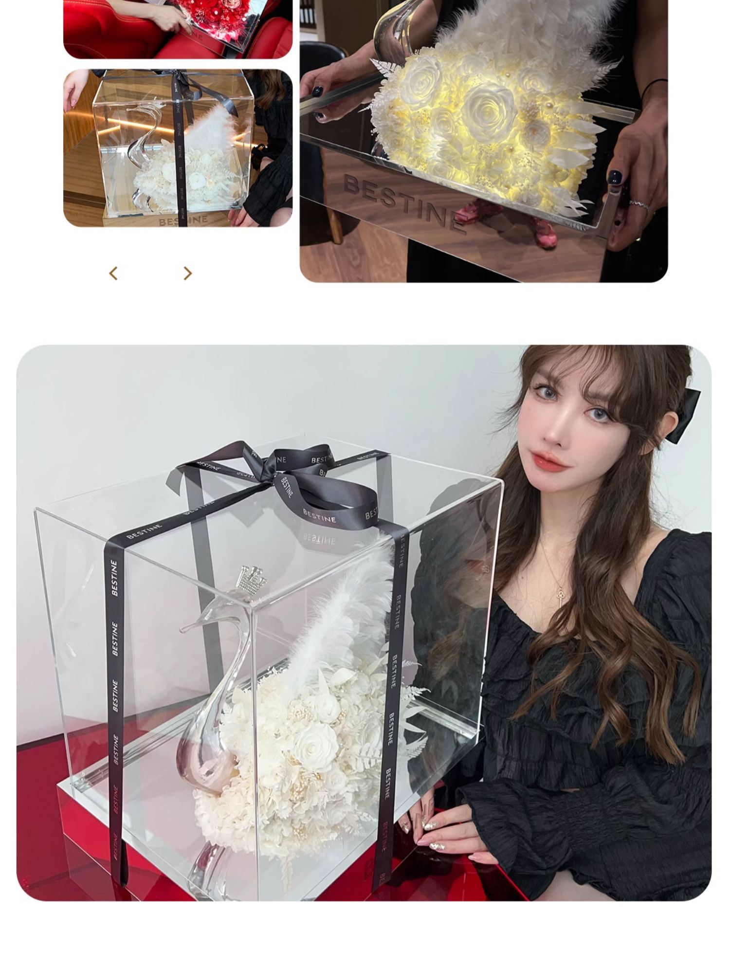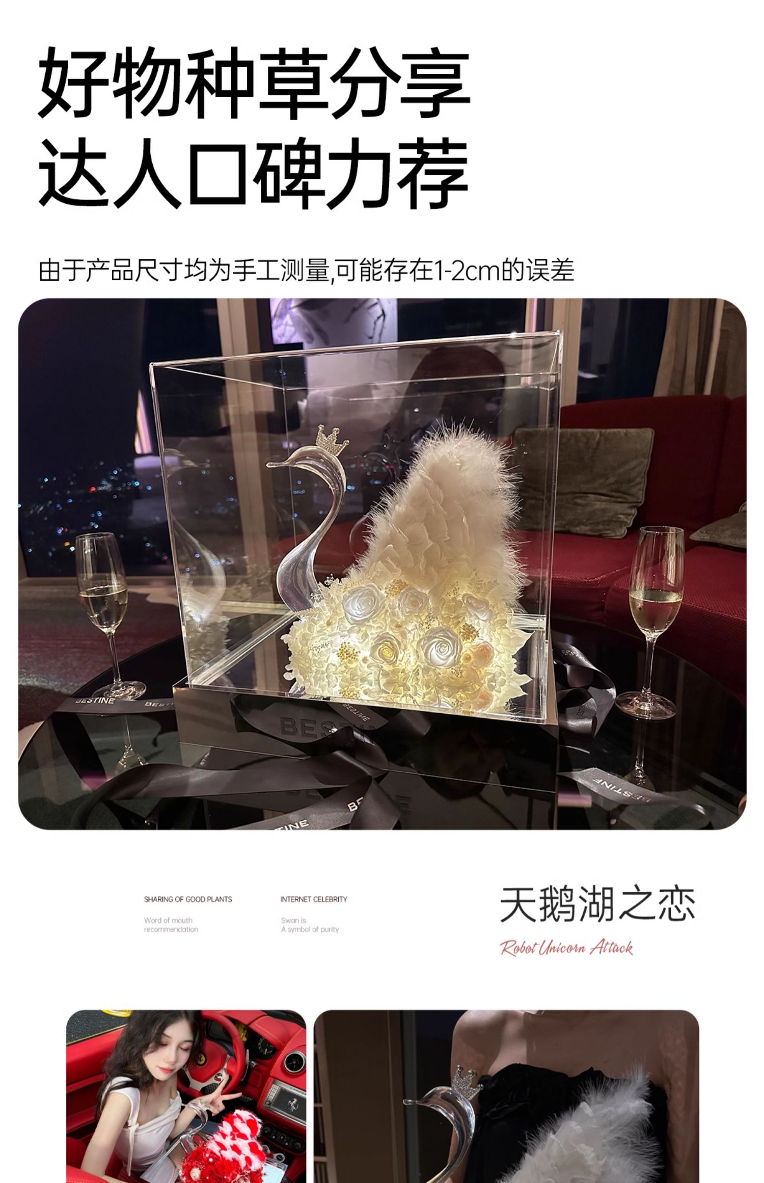 VBEINGS花语 天鹅湖之恋 mini/大号 永生花玫瑰花摆件礼盒送女友生日礼物情人节礼物