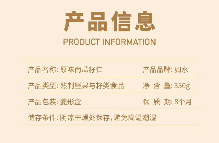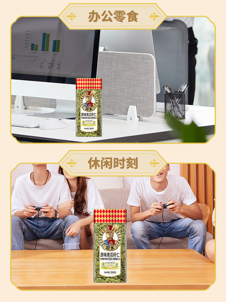 如水原味南瓜籽仁350g 无壳休闲食品烘焙罐装小吃干果零食瓜子
