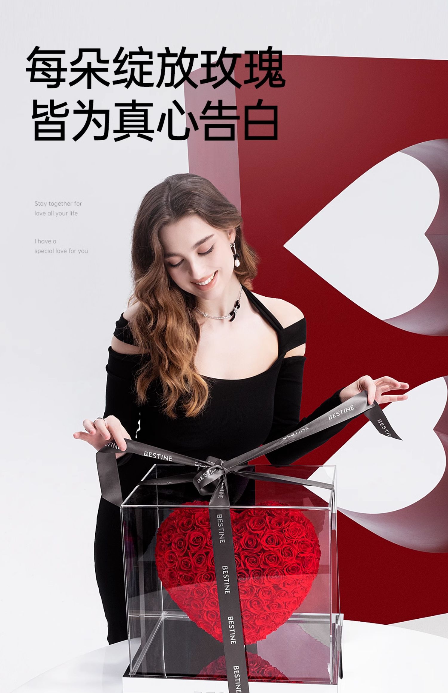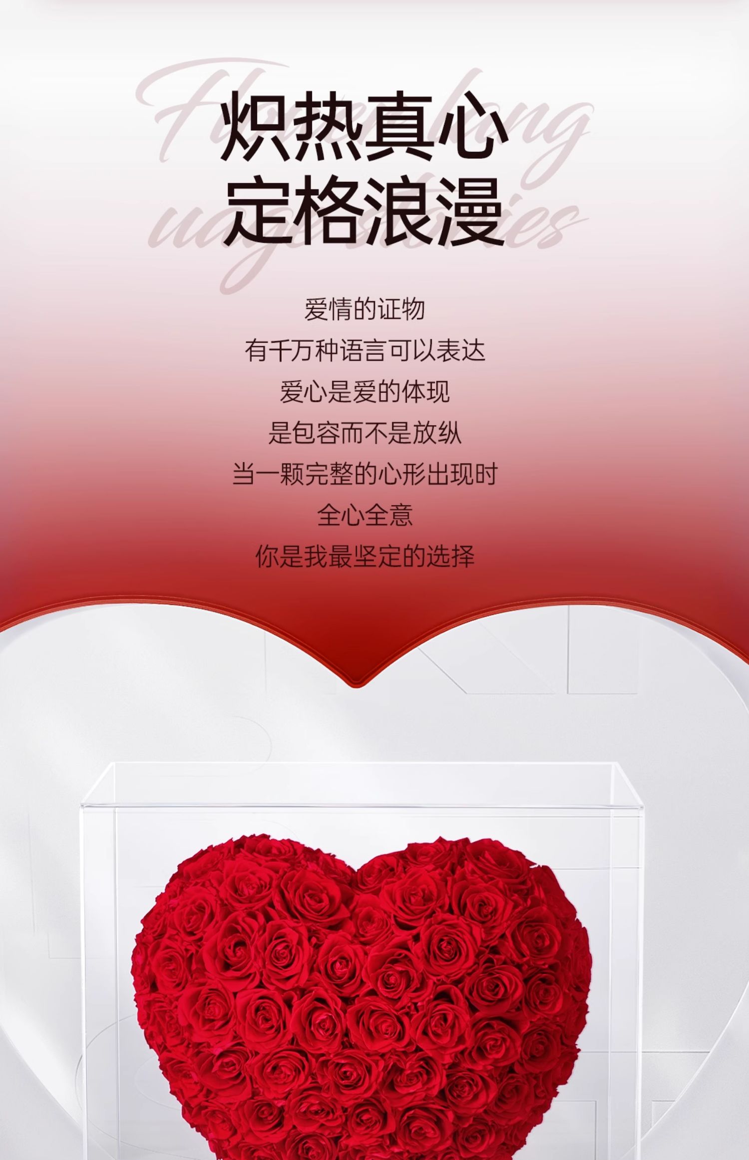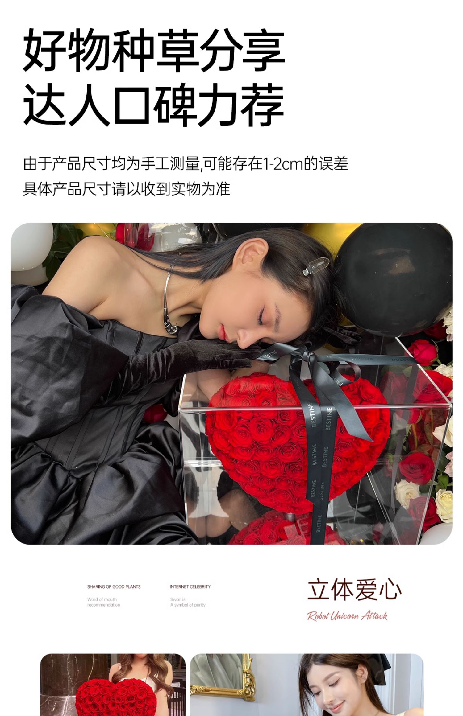 VBEINGS花语 怦然心动 大号 永生花玫瑰花爱心送女友老婆生日表白情人节礼物