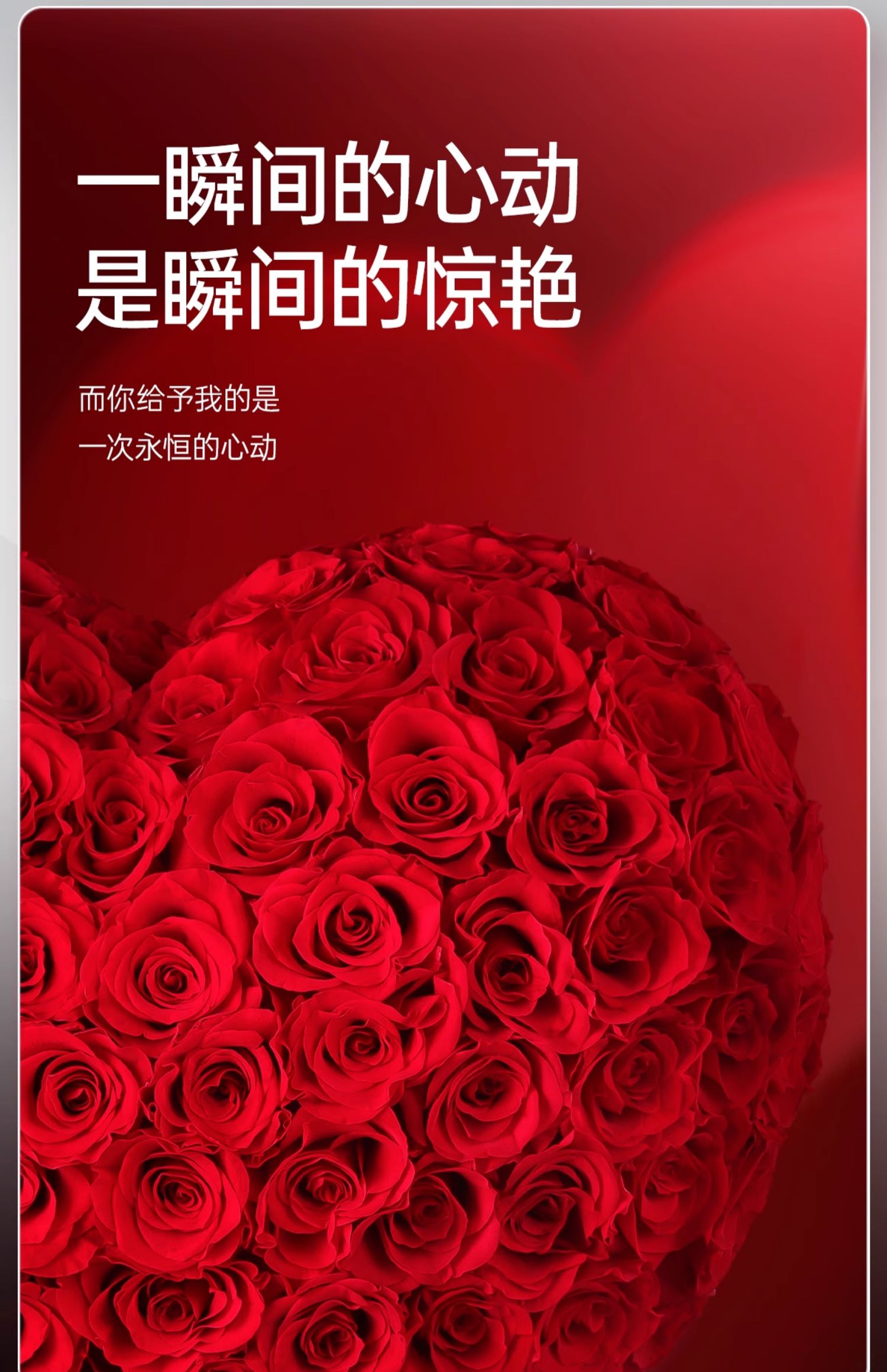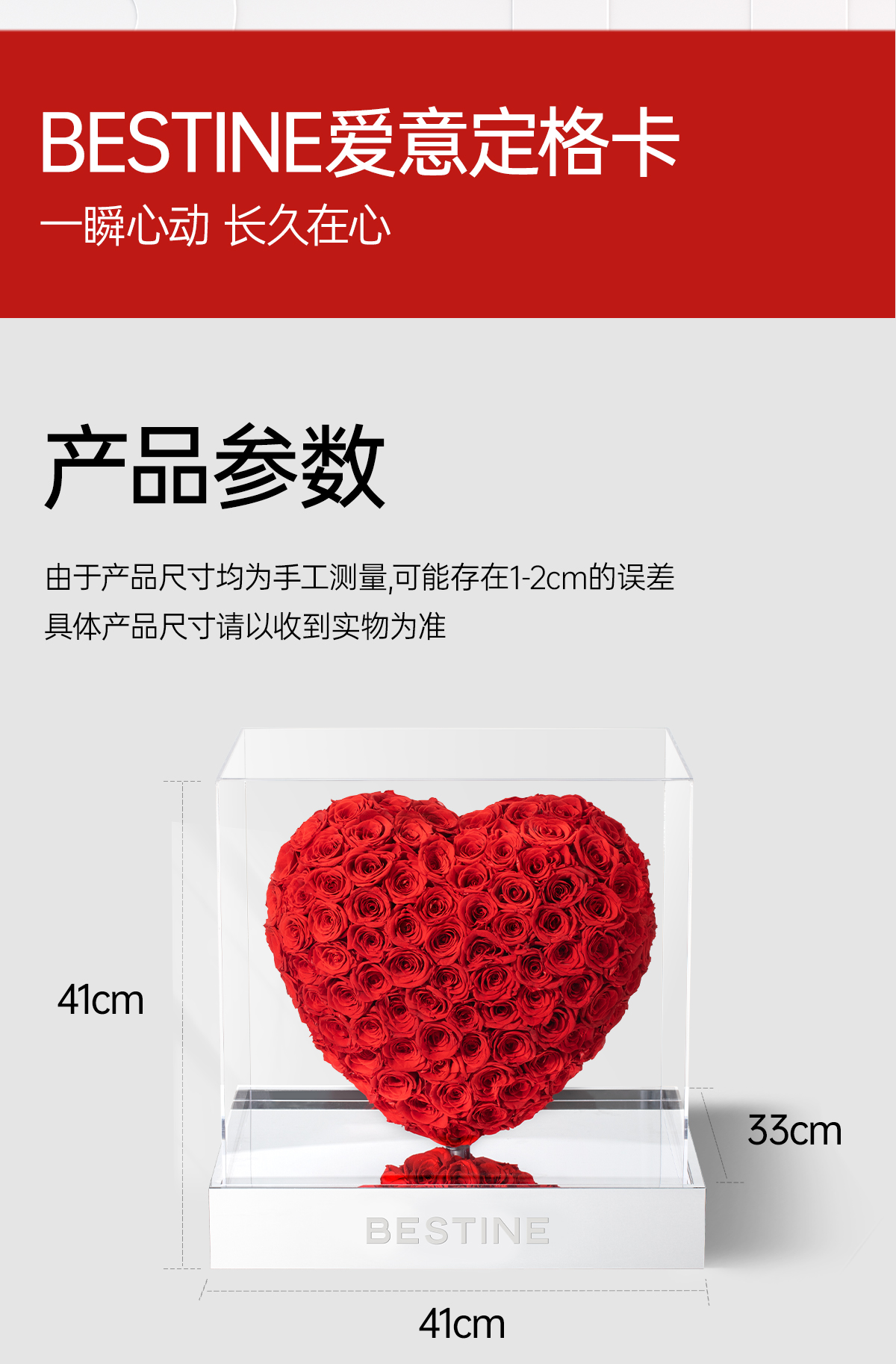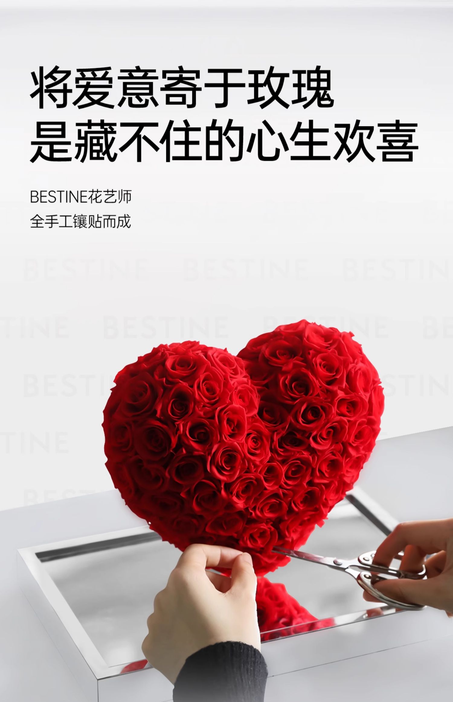 VBEINGS花语 怦然心动 大号 永生花玫瑰花爱心送女友老婆生日表白情人节礼物