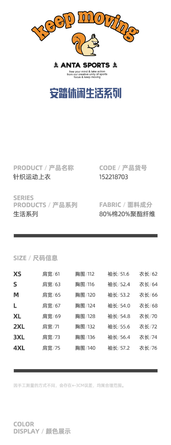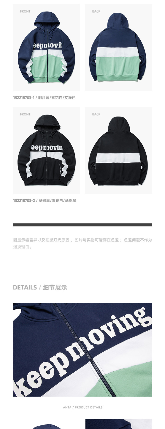 安踏2022春季新款连帽开衫卫衣潮流外套152218703-1