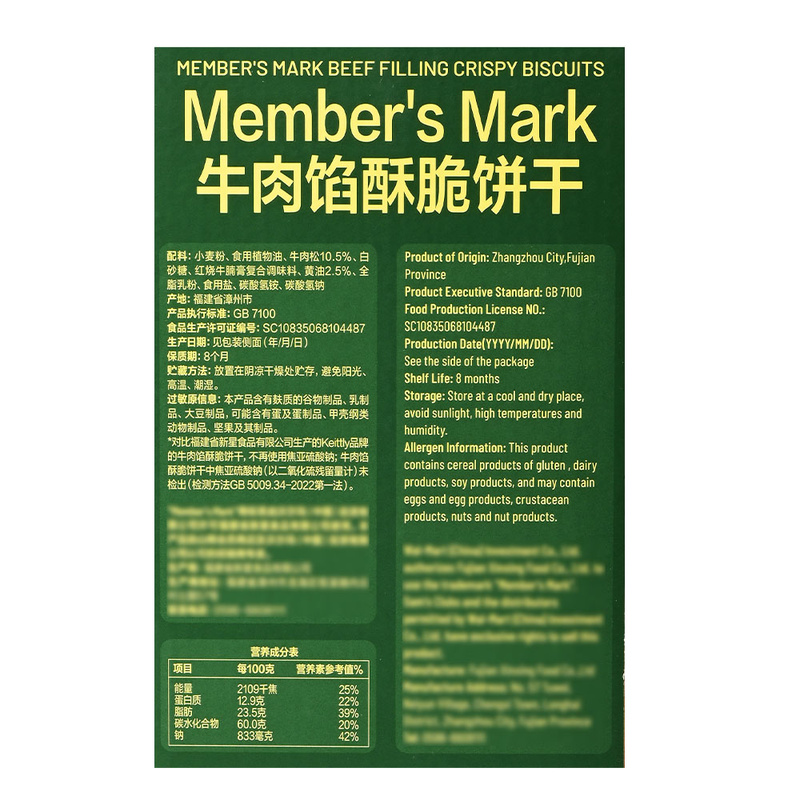 Member's Mark 牛肉馅酥脆饼干1kg 山姆会员店商品非商品原因不支持退款
