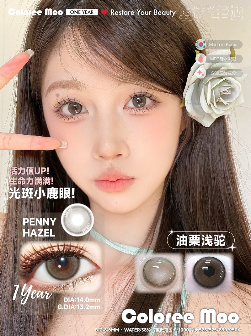 Coloreemoo 油栗浅驼 年抛 两片 14.0mm 参考着色 13.2mm 基弧 8.6 含水 38% 韩国进口