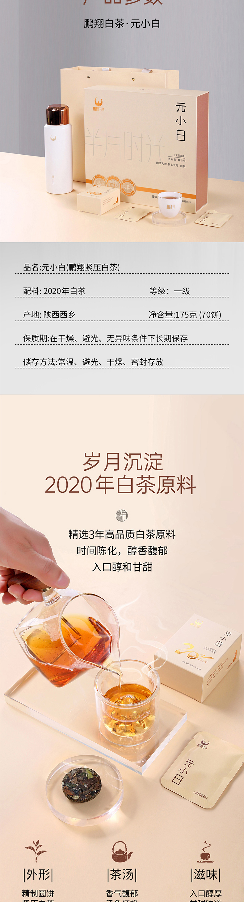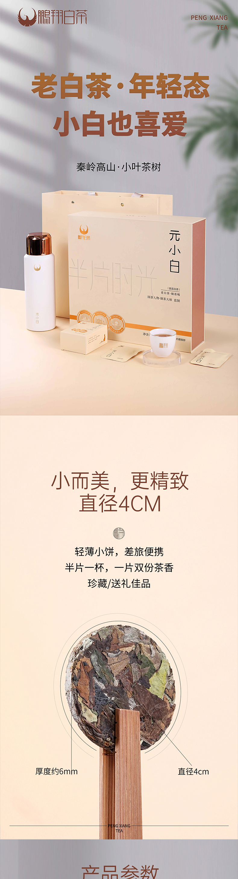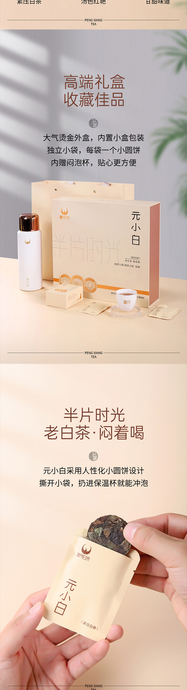 【推荐】鹏翔紧压白茶元小白175克礼盒装 轻薄小饼 差旅便携