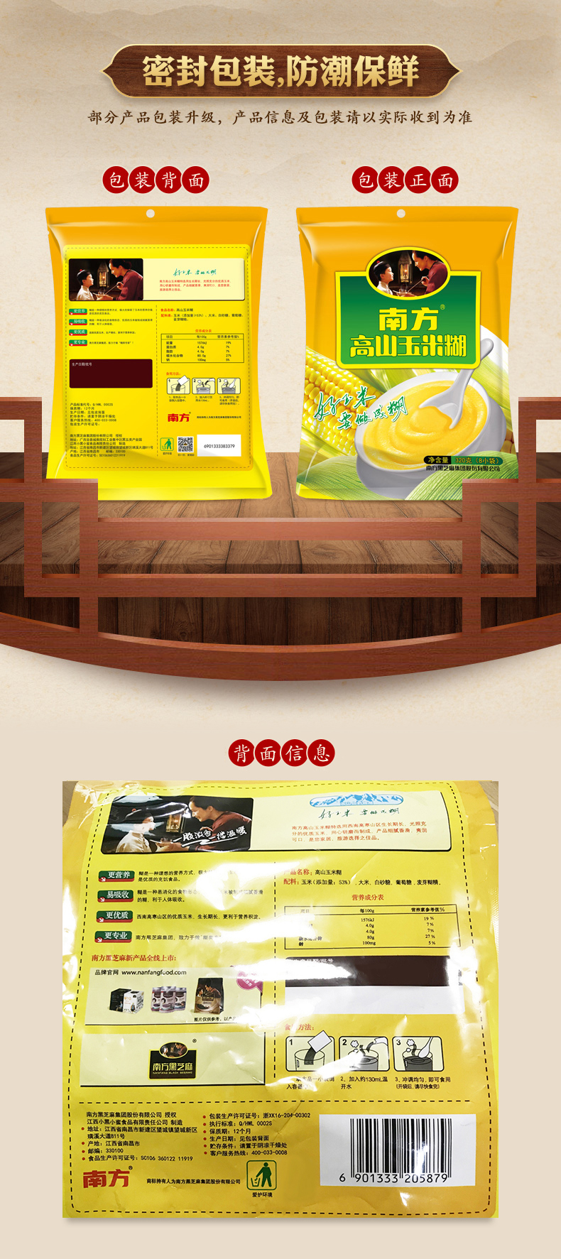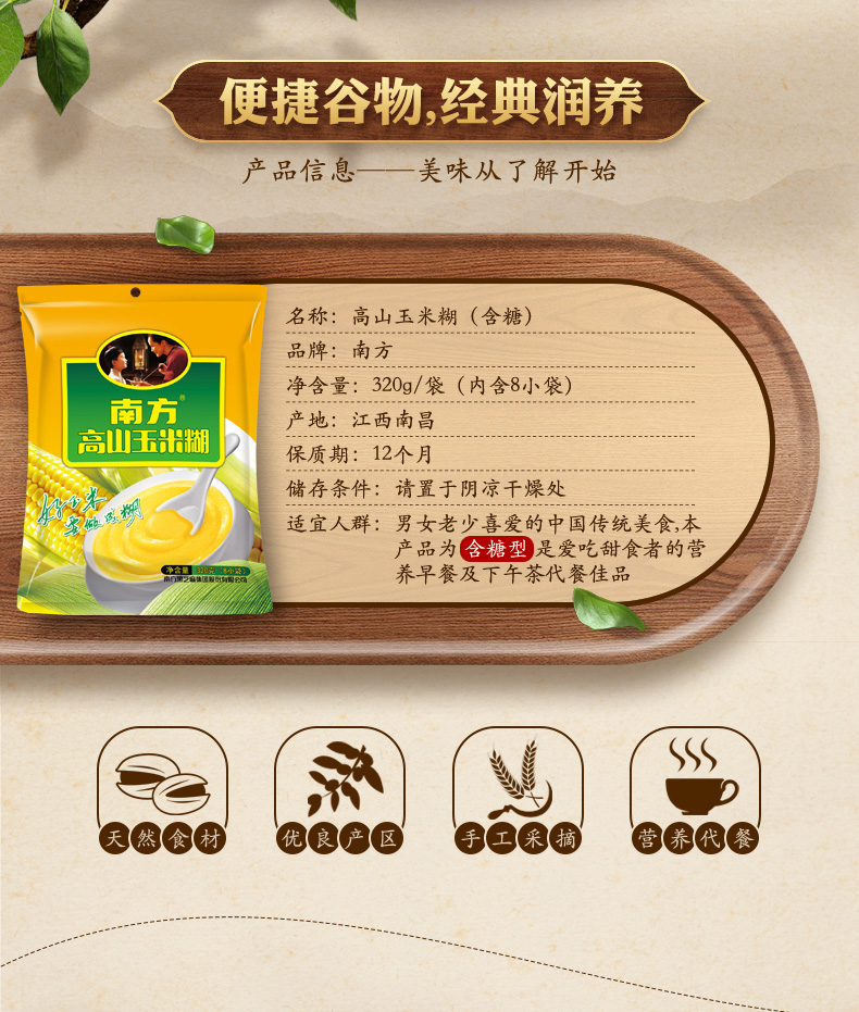 【品牌直营】南方黑芝麻 高山玉米糊320g含糖