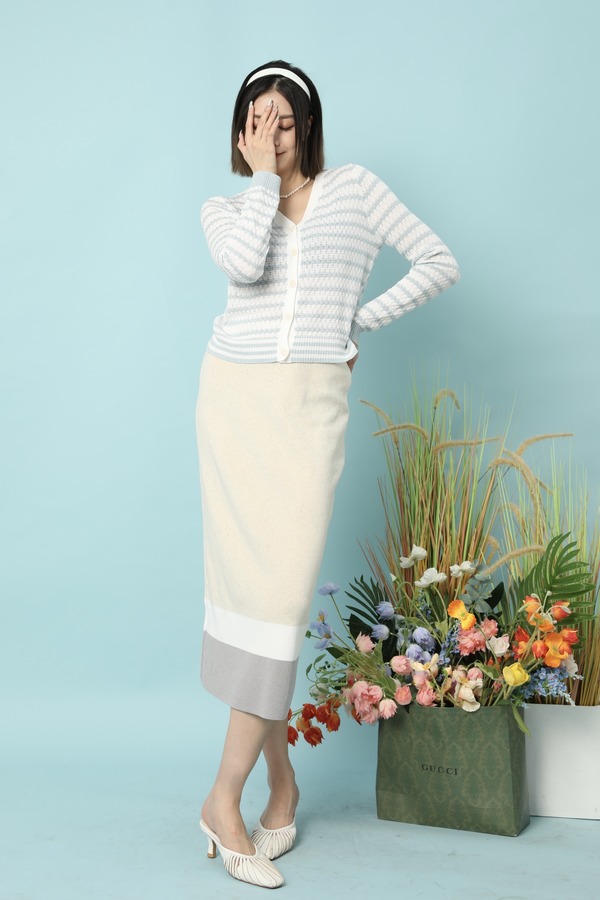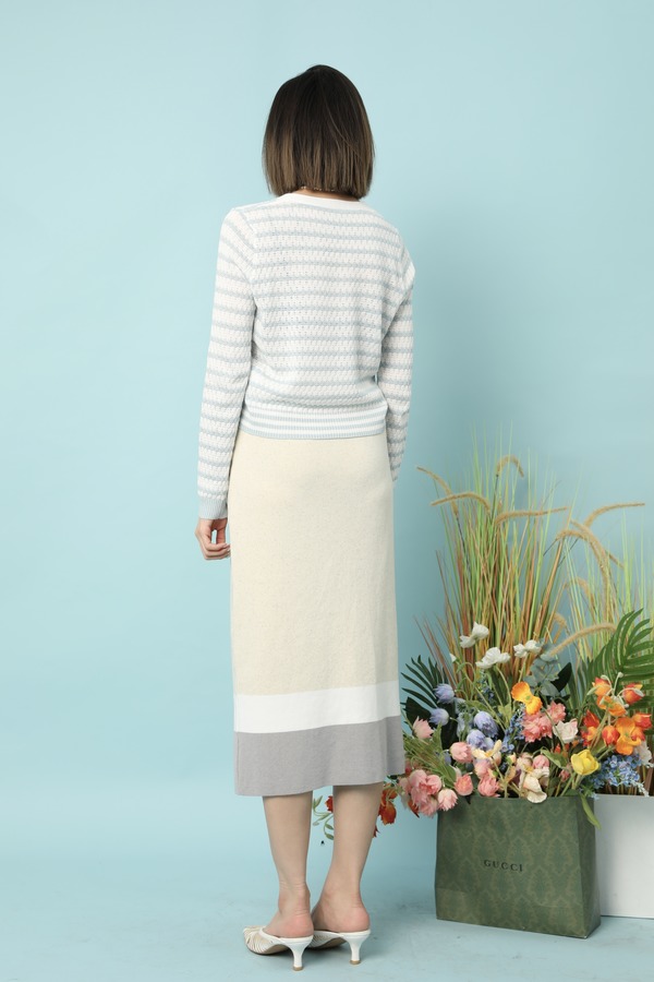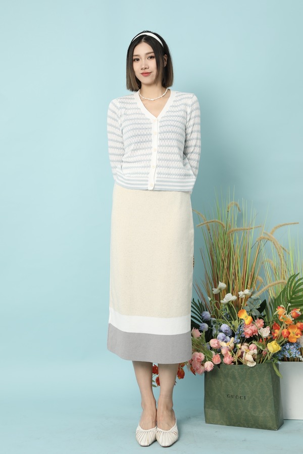 OCHIRLY欧时力 蓝色古典印花半身裙 3293