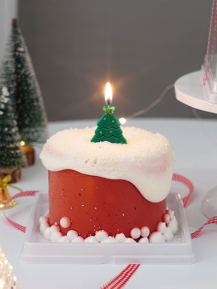 圣诞主题M款 12月圣诞树蜡烛小小蛋糕(下单请备注红色或者绿色)